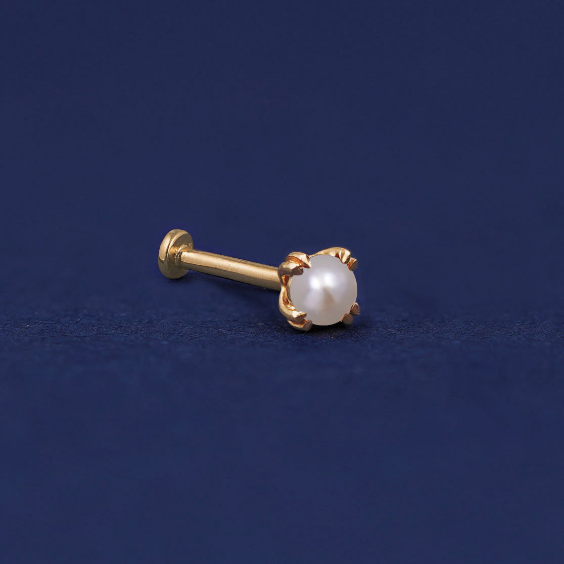 This pretty pearl stud is the perfect minimalist jewelry piece. This dainty 14k gold threadless push in stud is a timeless gemstone earring that exudes elegance. Our flat backs are crafted only in 14k yellow gold to avoid sensitivity.