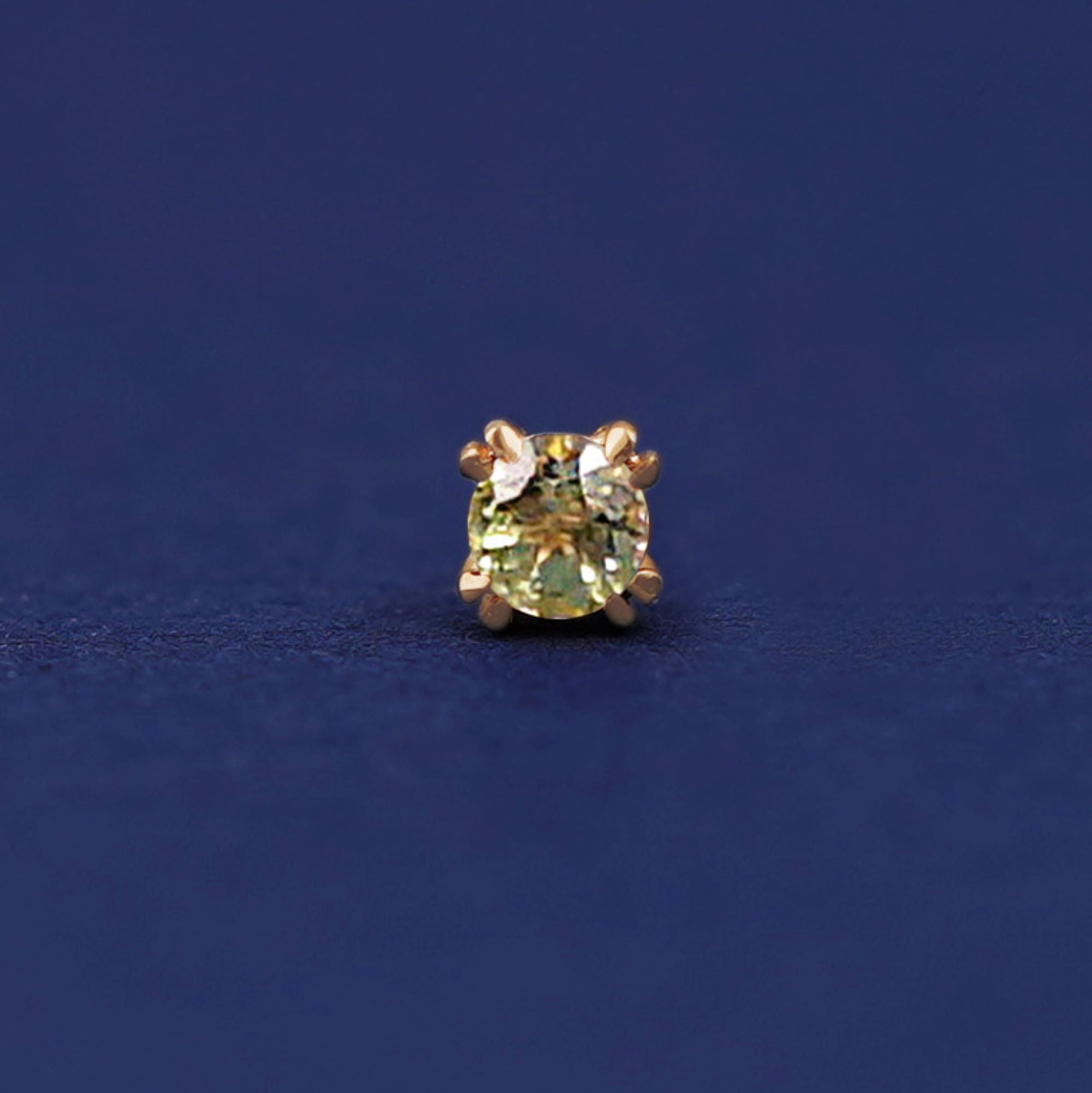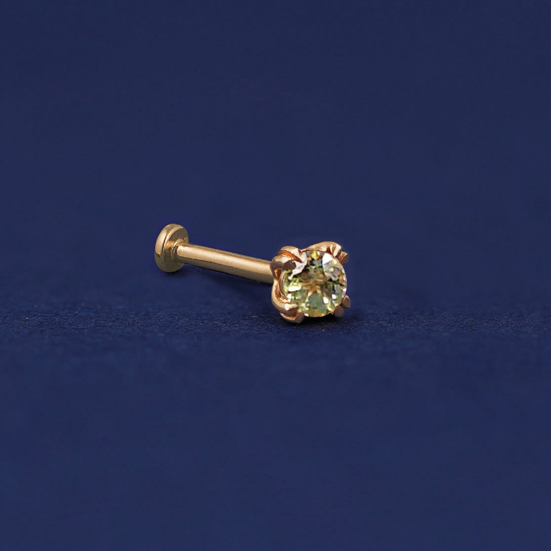 This peridot flat back has a gorgeous olive green color that will create depth and intrigue to your look. August birthstone jewelry you can wear anytime, this dainty, threadless gemstone stud is made with solid 14k gold. Our flat backs are crafted only in 14k yellow gold to avoid sensitivity.