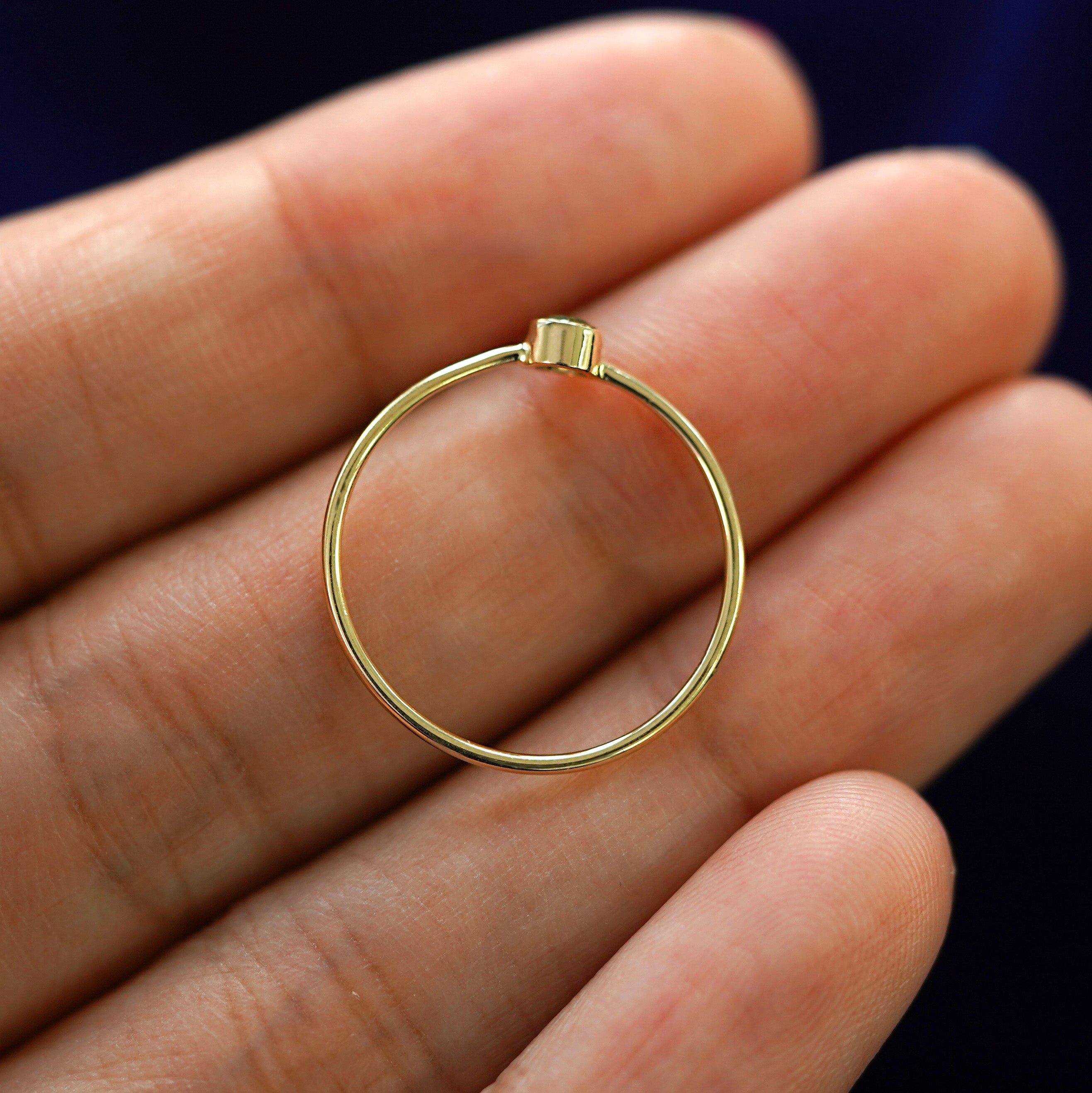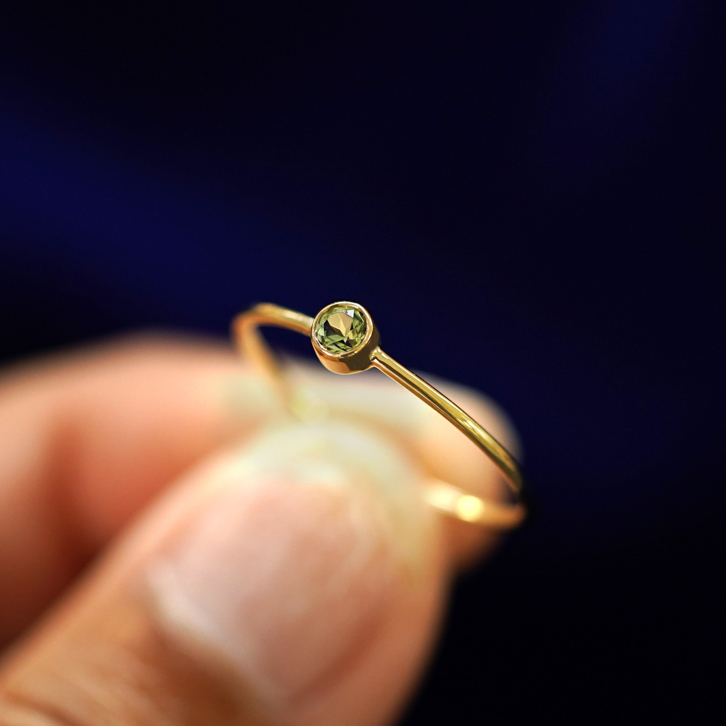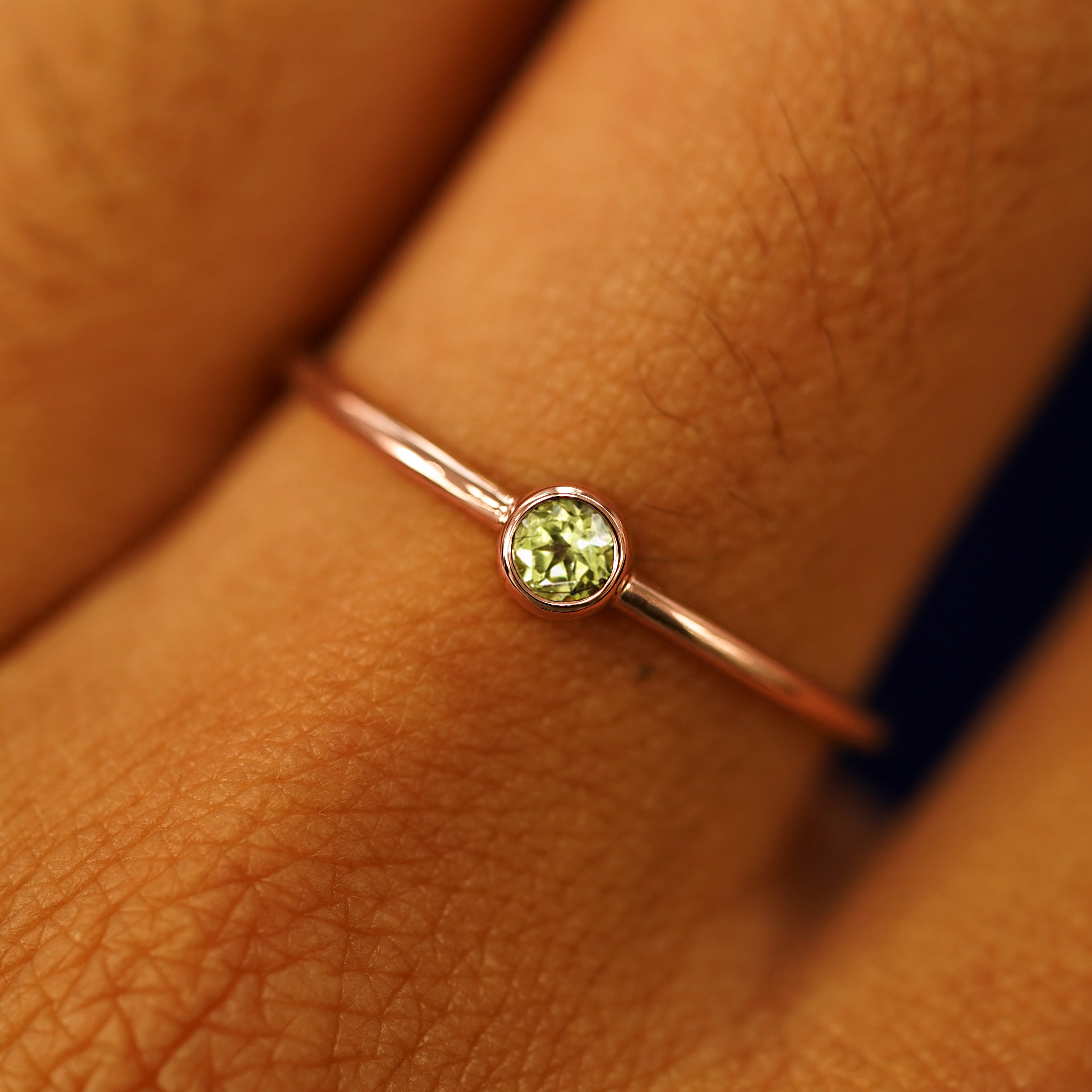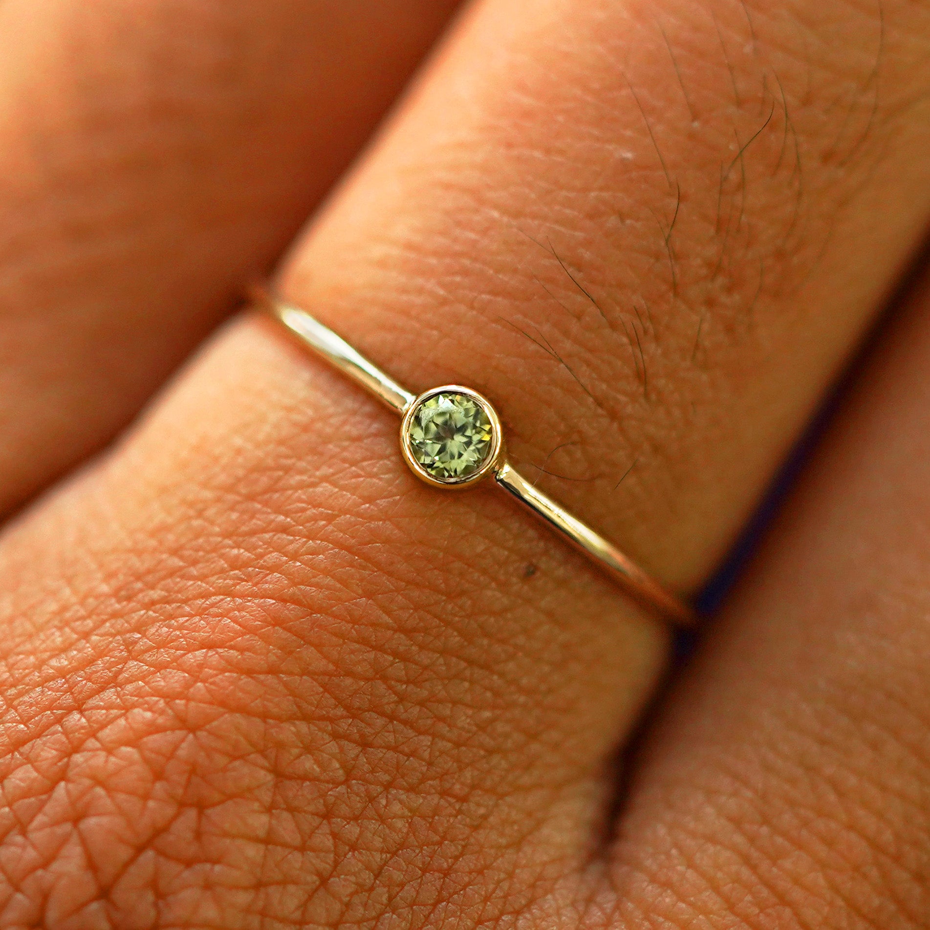 August’s birthstone is the beautiful olive gemstone Peridot. This sparkling green beauty is dainty yet strong, a perfect minimalist jewelry piece. Whether you’re declaring your love with an engagement ring or gifting yourself a little glitter just for fun, this gemstone ring is a 14k solid gold investment. Wear this August birthstone ring alone or with our other sustainable gold rings for a stacked look.