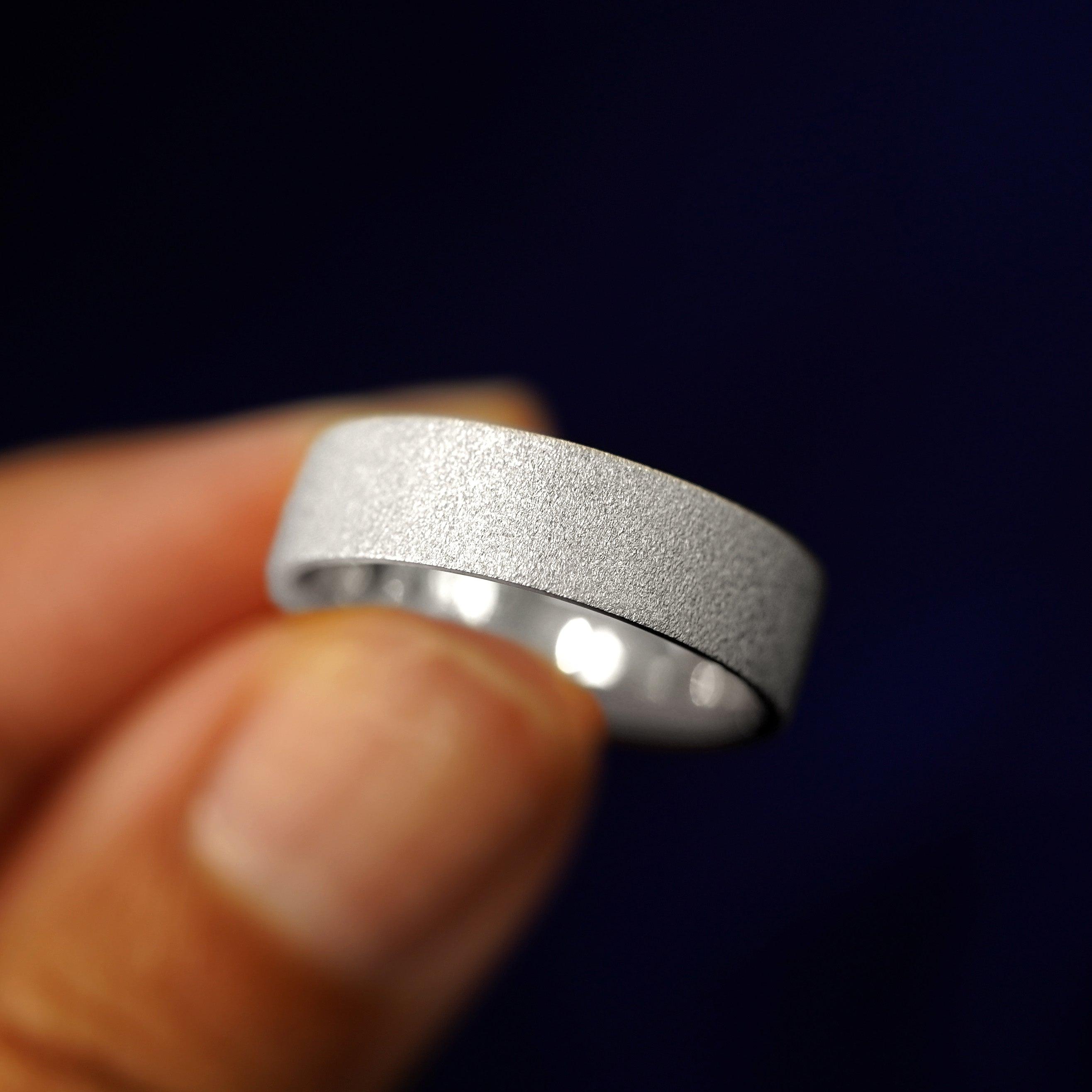 Platinum perfection! The flat yet comfortable design of our industrial band is enhanced by the glittering stardust finish to give this lux piece a magical look. This sparkling platinum ring has a comfort fit band so it's the ideal wedding band to wear all day every day!