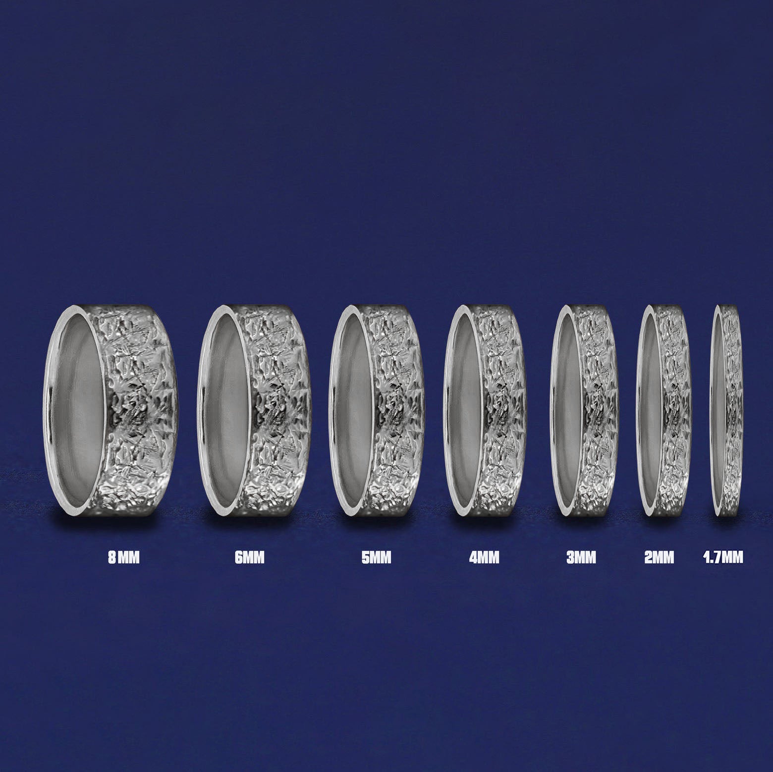 An homage to precious metal in its raw form, this wedding band has a hand-drilled finish so each ring is unique. Crafted from recycled 950 platinum, this durable, stackable, comfort-fit band can be worn all day, every day!