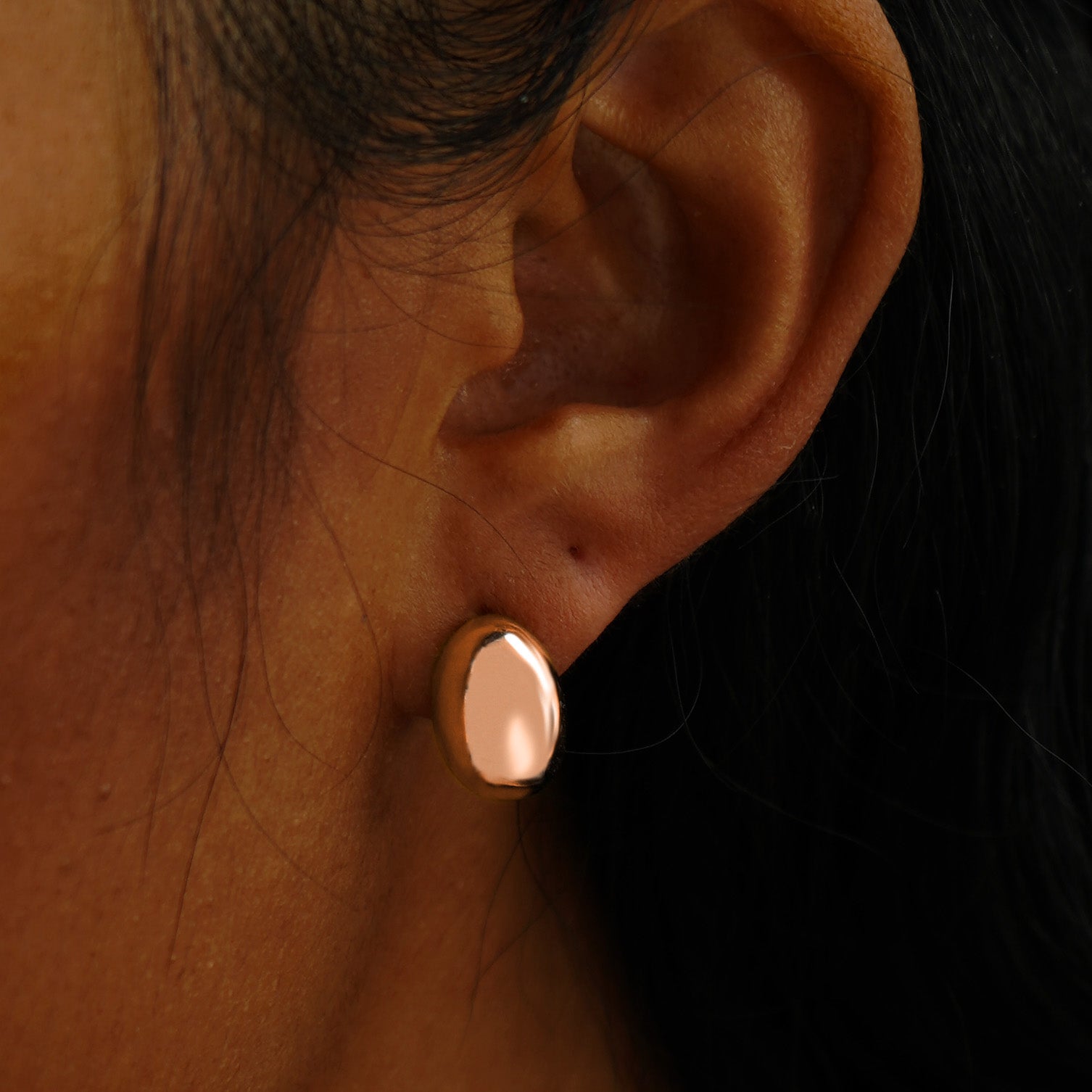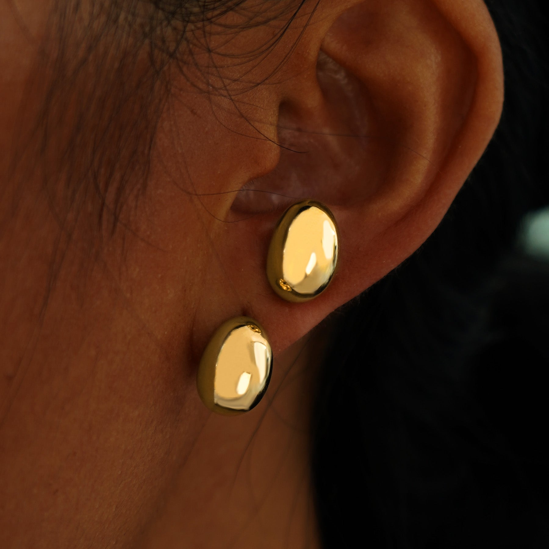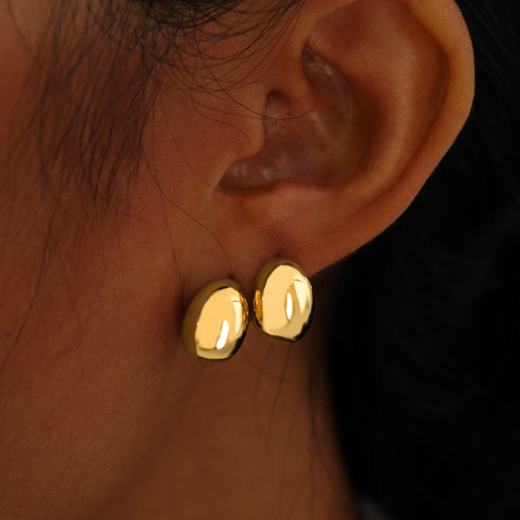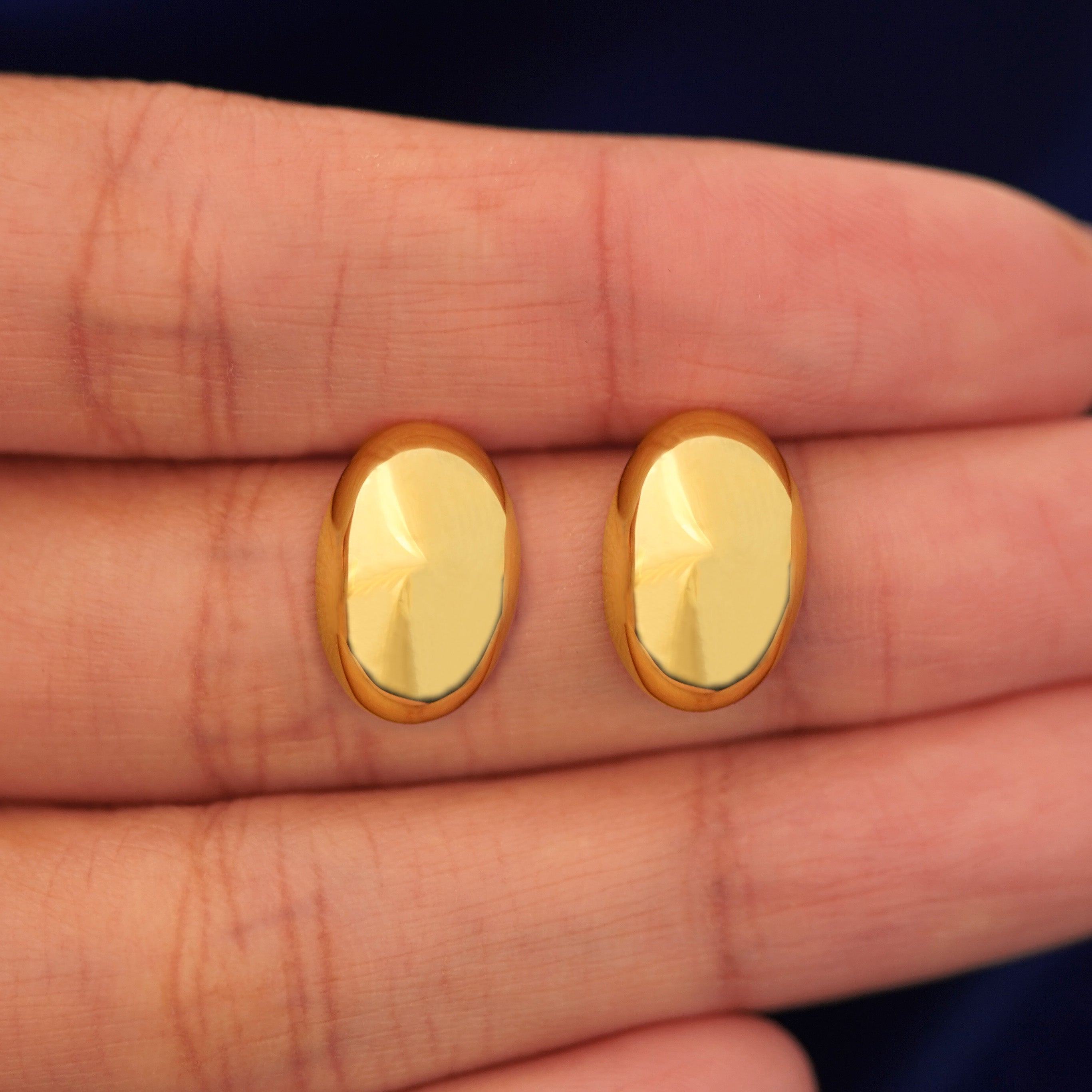These gorgeous oversized stud earrings are the pinnacle of elegant style. The chic curve makes these large studs puff out and the oval shape gives them a unique look. While the open back makes these 14k gold earrings lightweight they are also thick so they won’t dent or lose their shape.