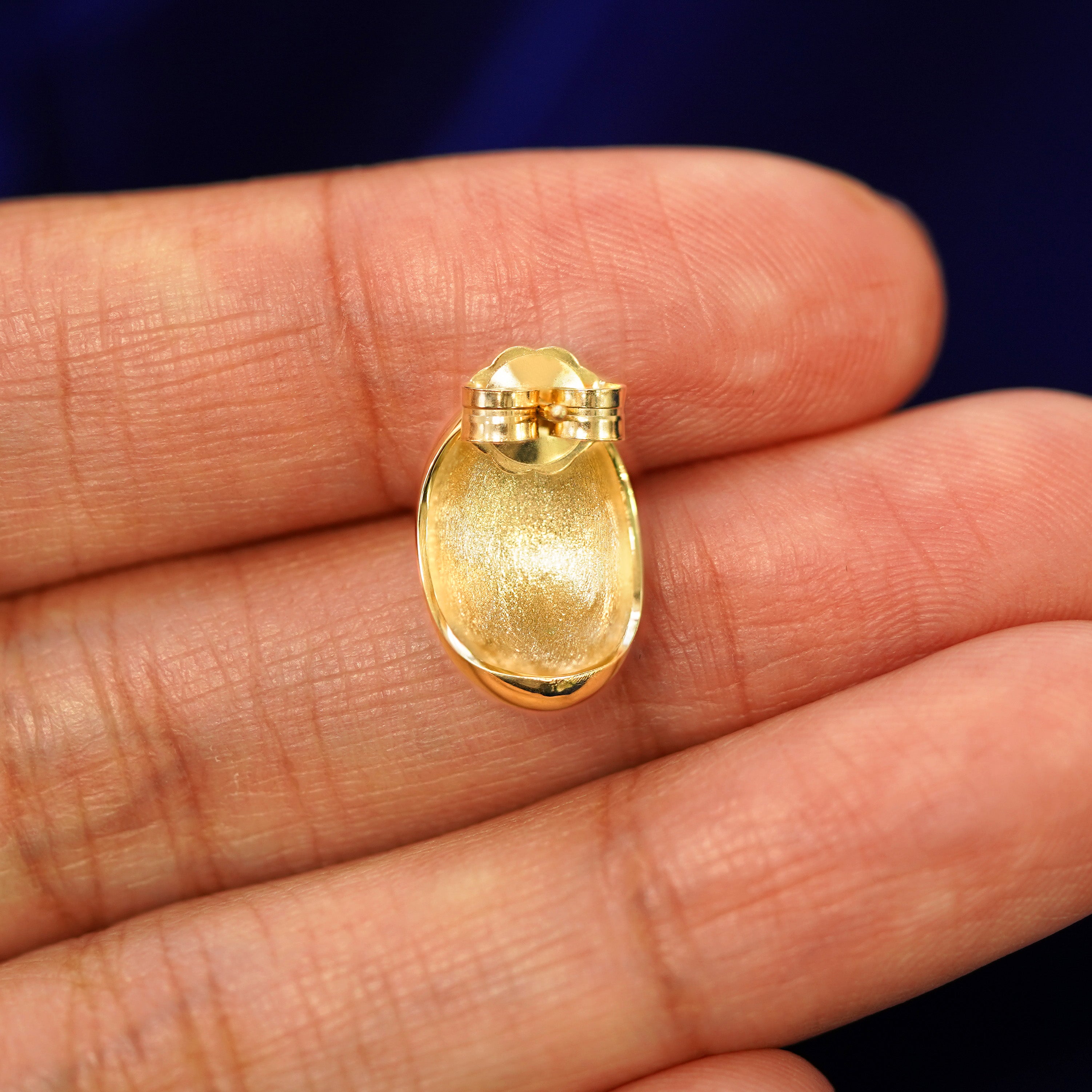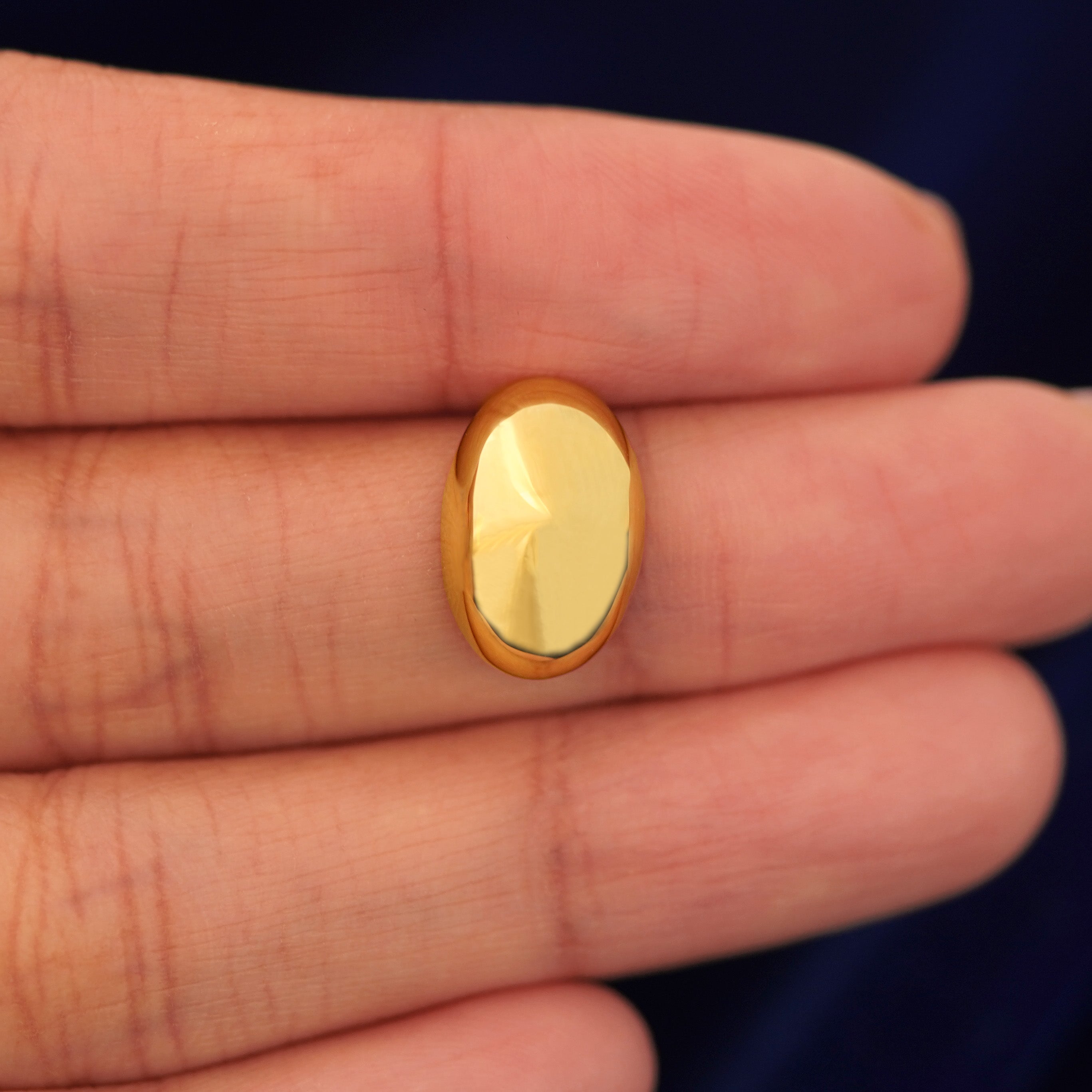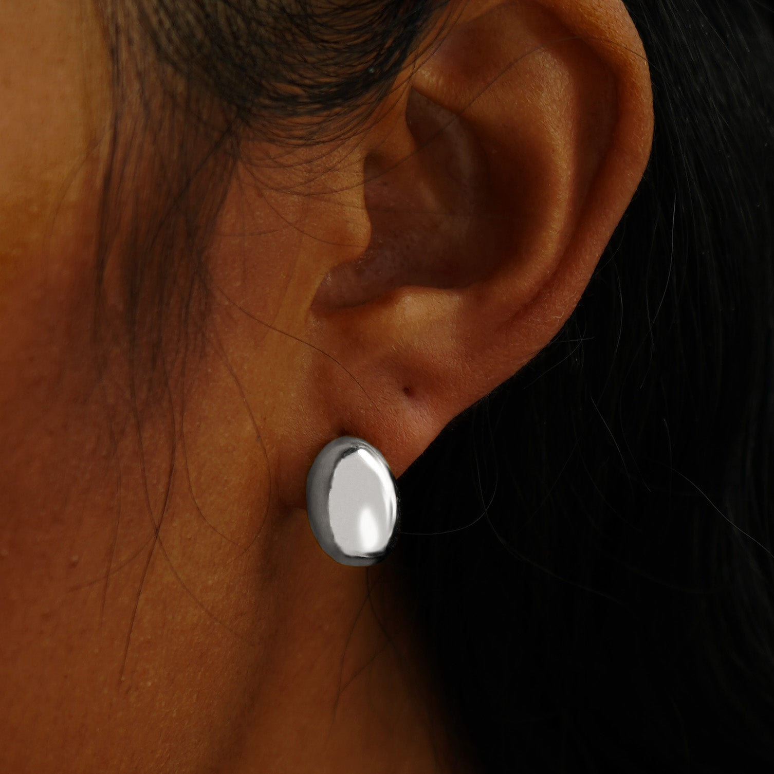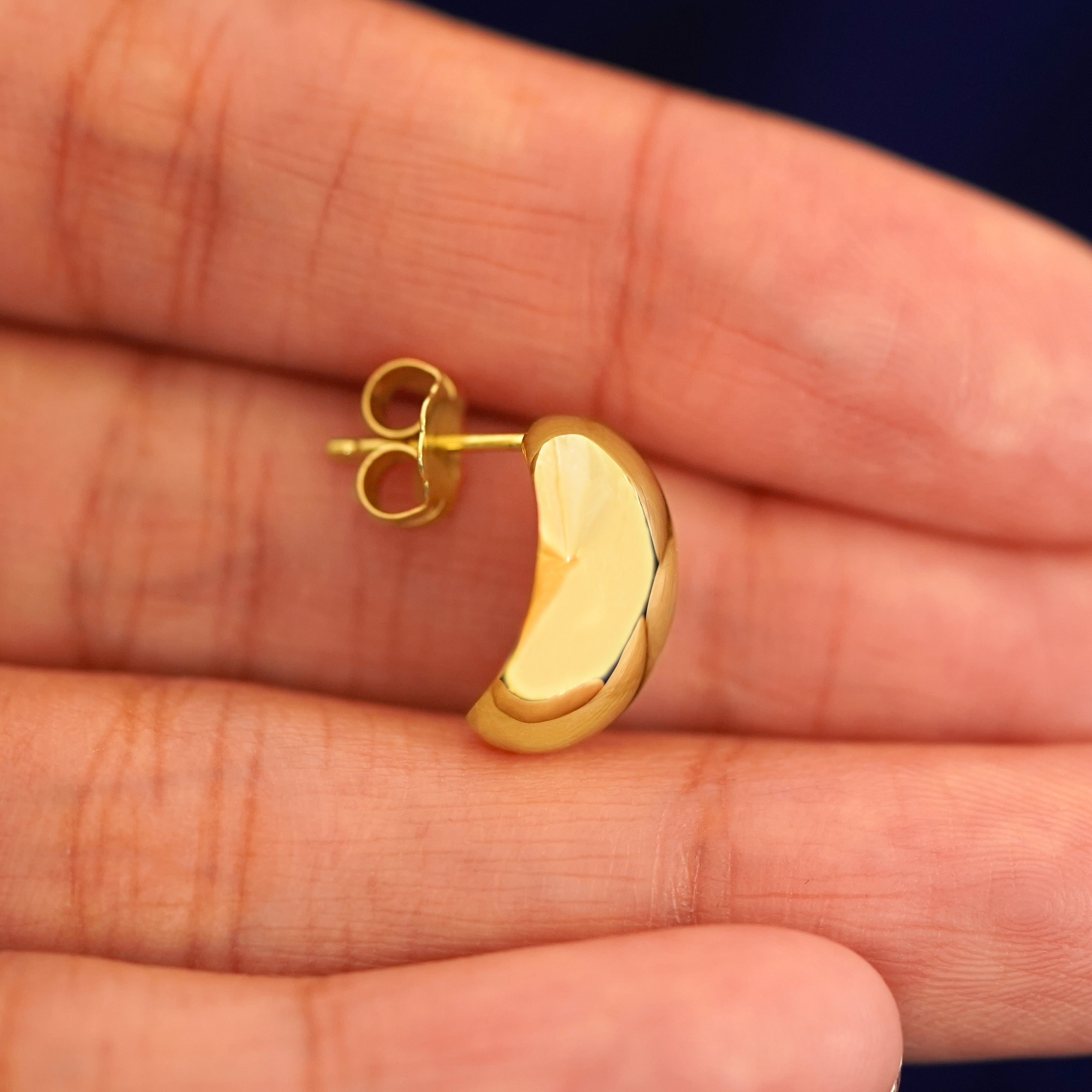 These gorgeous oversized stud earrings are the pinnacle of elegant style. The chic curve makes these large studs puff out and the oval shape gives them a unique look. While the open back makes these 14k gold earrings lightweight they are also thick so they won’t dent or lose their shape.