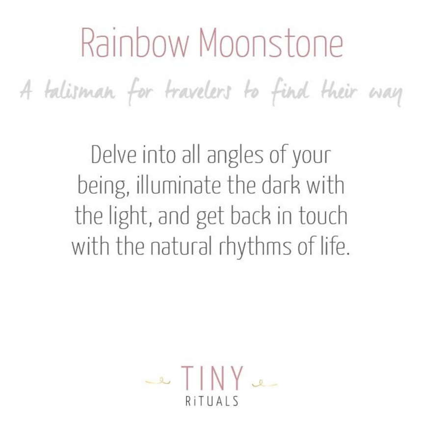 A stone that communicates the ebb and flow of our cycles, the Rainbow Moonstone puts us back in touch with the natural rhythms of life. Rather than soaking everything in a positive glow, the Rainbow Moonstone isn’t afraid of letting you delve into your darker side but provides a path of lightness to allow you to move through your mind without getting lost.