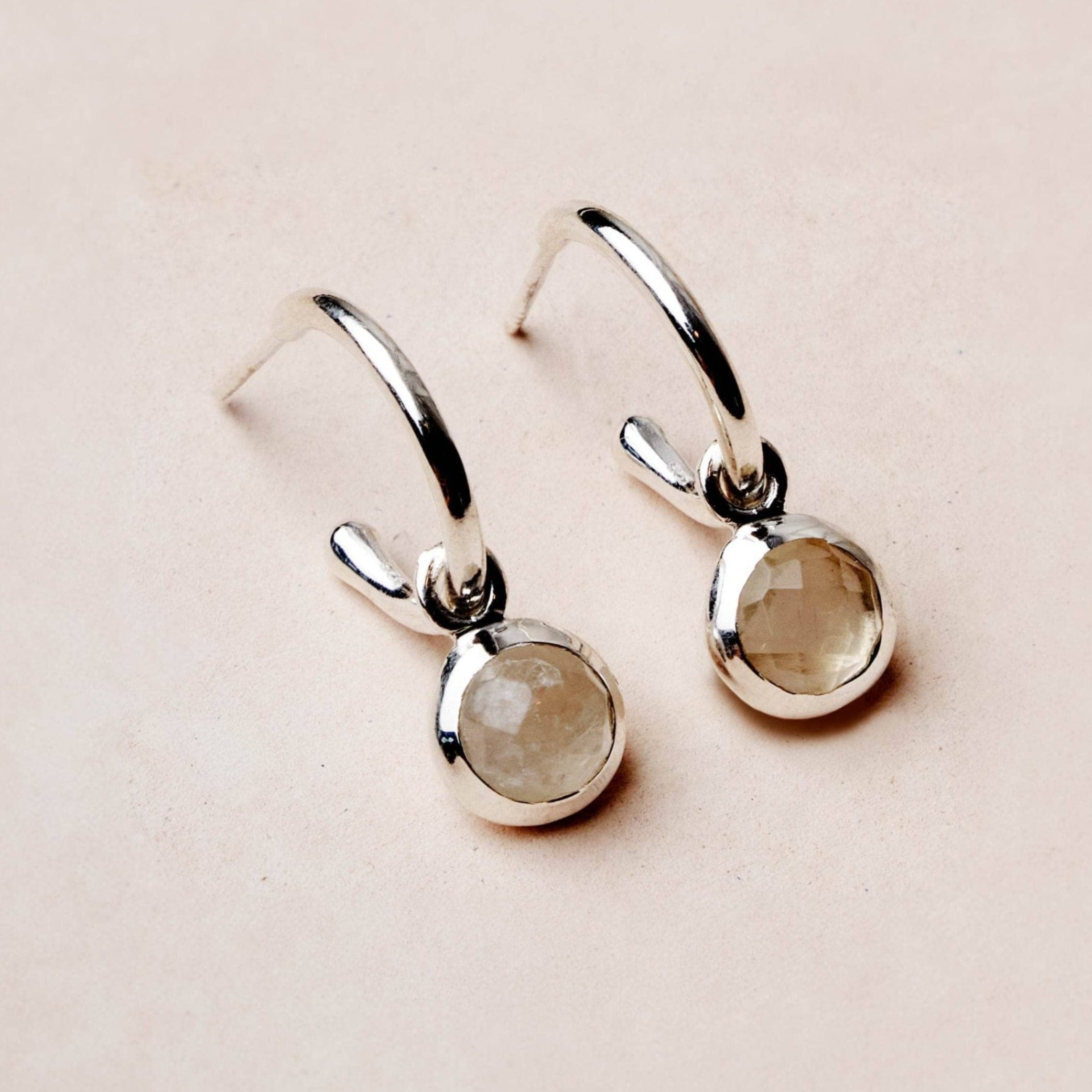 Rainbow Moonstone is a dab hand at aligning the chakras. This sweet light gem is all about the high chakras, effectively cleansing the heart, tuning into the wisdom of the third eye, and fully charging the crown chakra so you are open and ready to receive the messages from the universe. Spiritual earrings are potent in energy as they bring the high vibrational stones closer to the third eye. These Rainbow Moonstone hoops are also closer to the mind, meaning they can cleanse and bring clarity.
