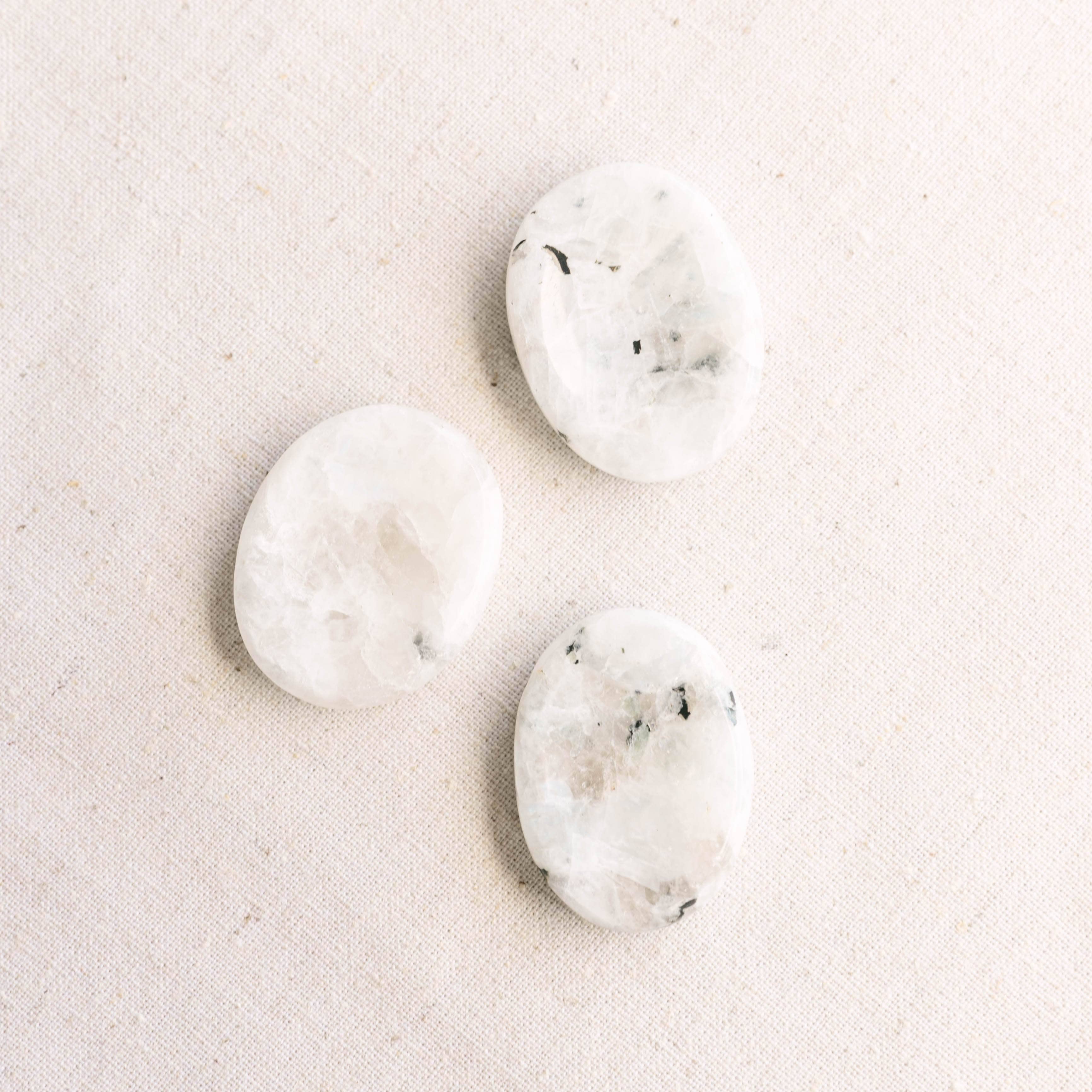 When all seems dark there is nothing like the iridescent glow of Rainbow Moonstone to light the way. The Rainbow Moonstone Worry Stone is a talisman for travelers, whether you are stepping out into the wild pathways of the world or journeying deeper into your own soul.