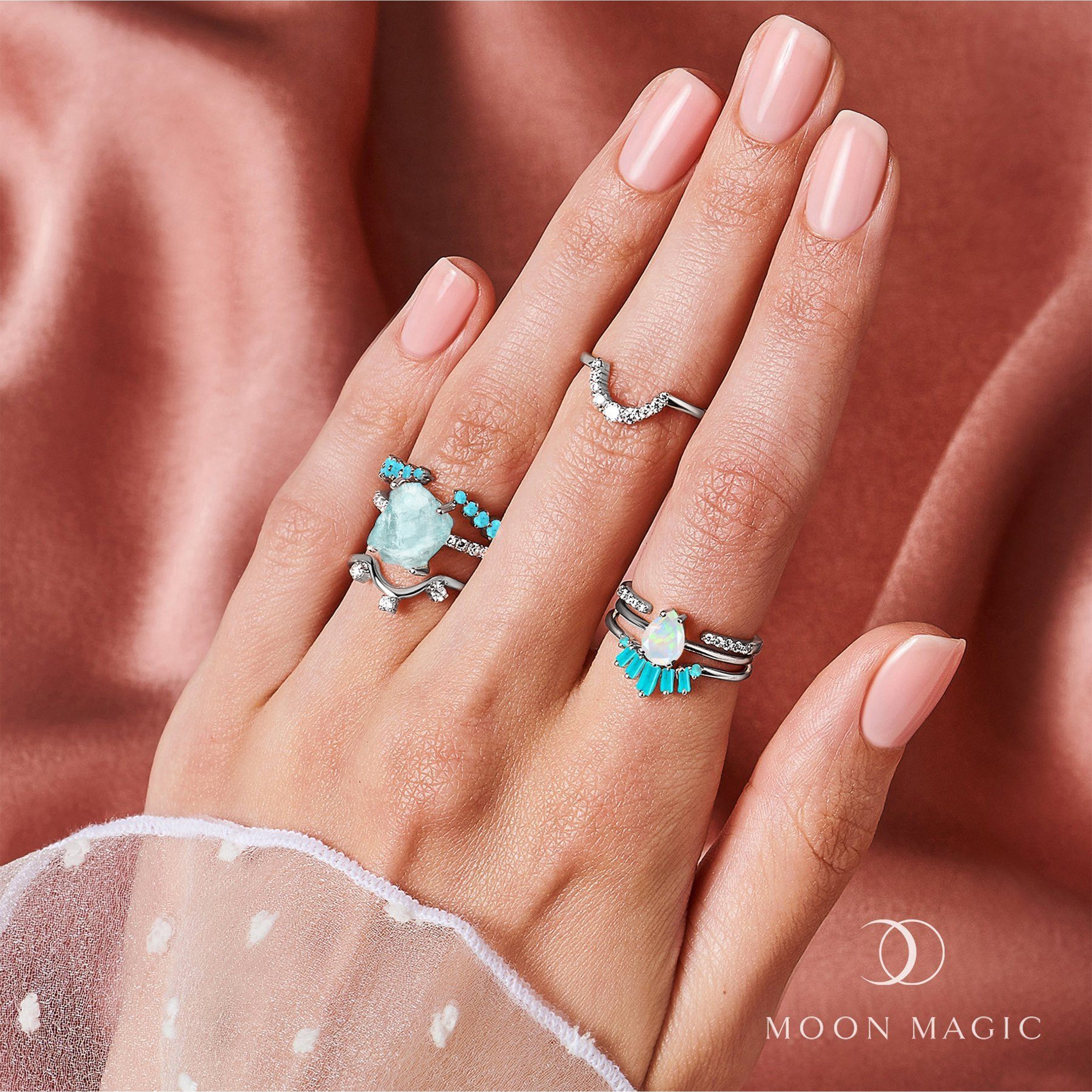 Our Raw Crystal Ring - Ritzy, infused with Aquamarine, will bring you courage like you’ve never experienced before. Whether you struggle with public speaking, you have a fear of failure, or you're scared of spiders, this gem will act as a source of bravery. By helping you go with the flow, you'll embrace life's challenges with the confidence of someone walking down a ritzy red carpet.