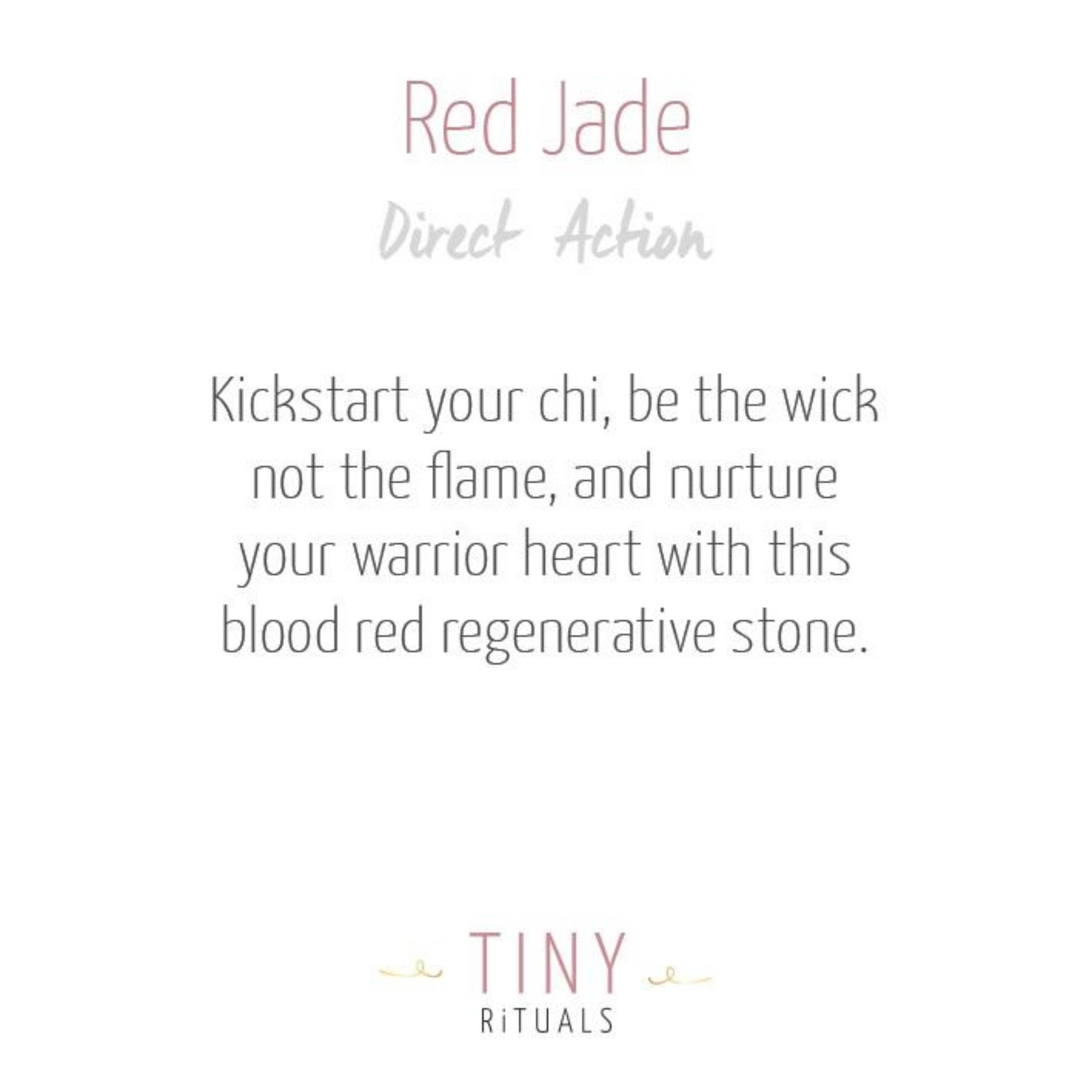 Fueled by the life force, Red Jade has long been a warrior stone in the hearts and minds of Ancient Eastern and South American civilizations. As radiant as a rose in bloom, as rich as the flow of blood, and as alive as the beating of your heart, Red Jade is all about keeping your body kicking out the chi so you can achieve your highest potential through the course of direct action.