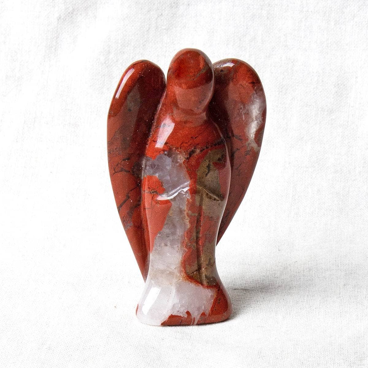 Let comforting warmth nurture your soul with the Red Jasper Angel. This crystal angel carved from Red Jasper stone dances in shades of vibrant red. Laced with courage, offering a glorious grounding force, and helping you commit to focusing and inner strength, this crystal angel helps you grow.