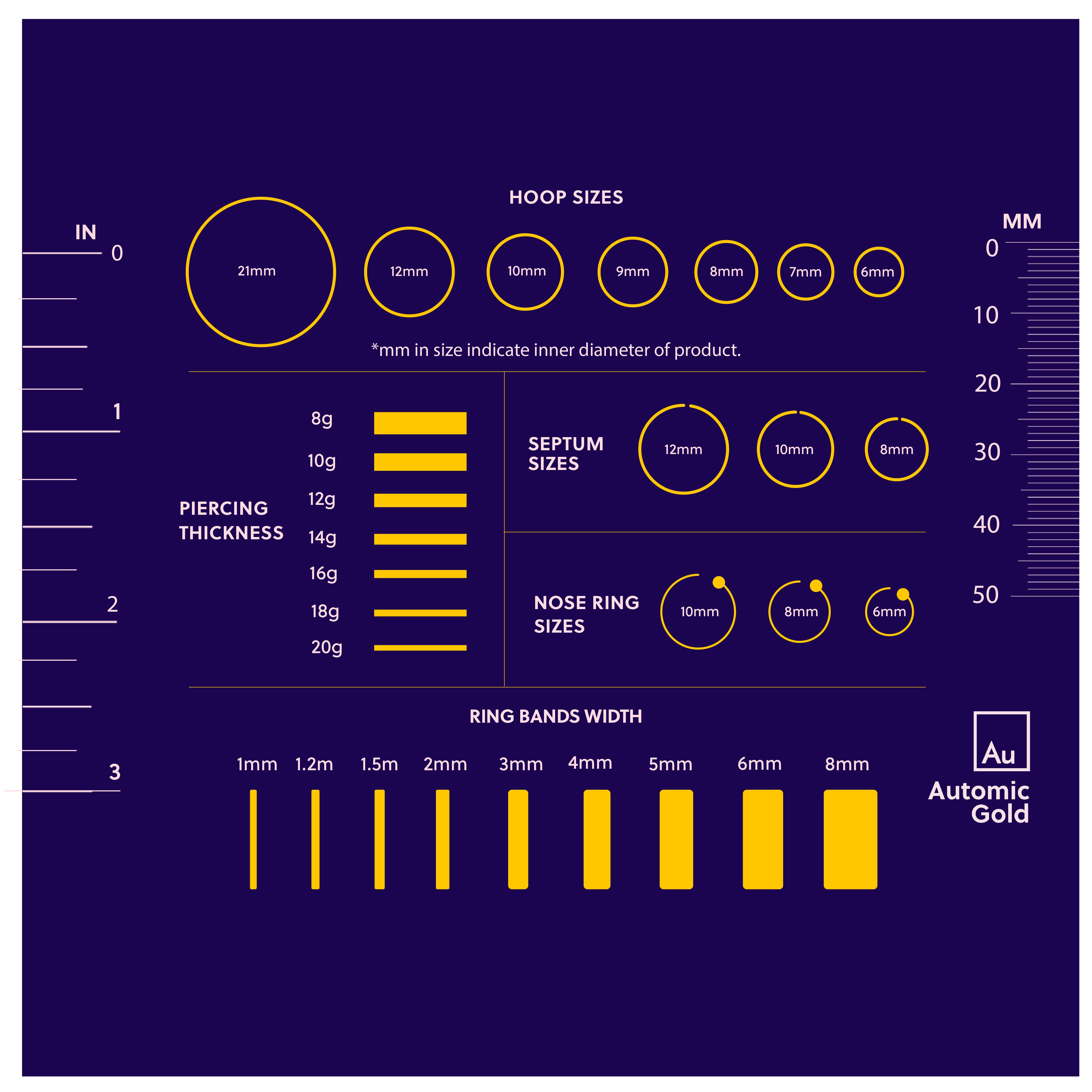 Each ring sizer also comes with a sizing card to help you determine what size you need for piercings, hoops, nose rings, septums, and ring band widths.