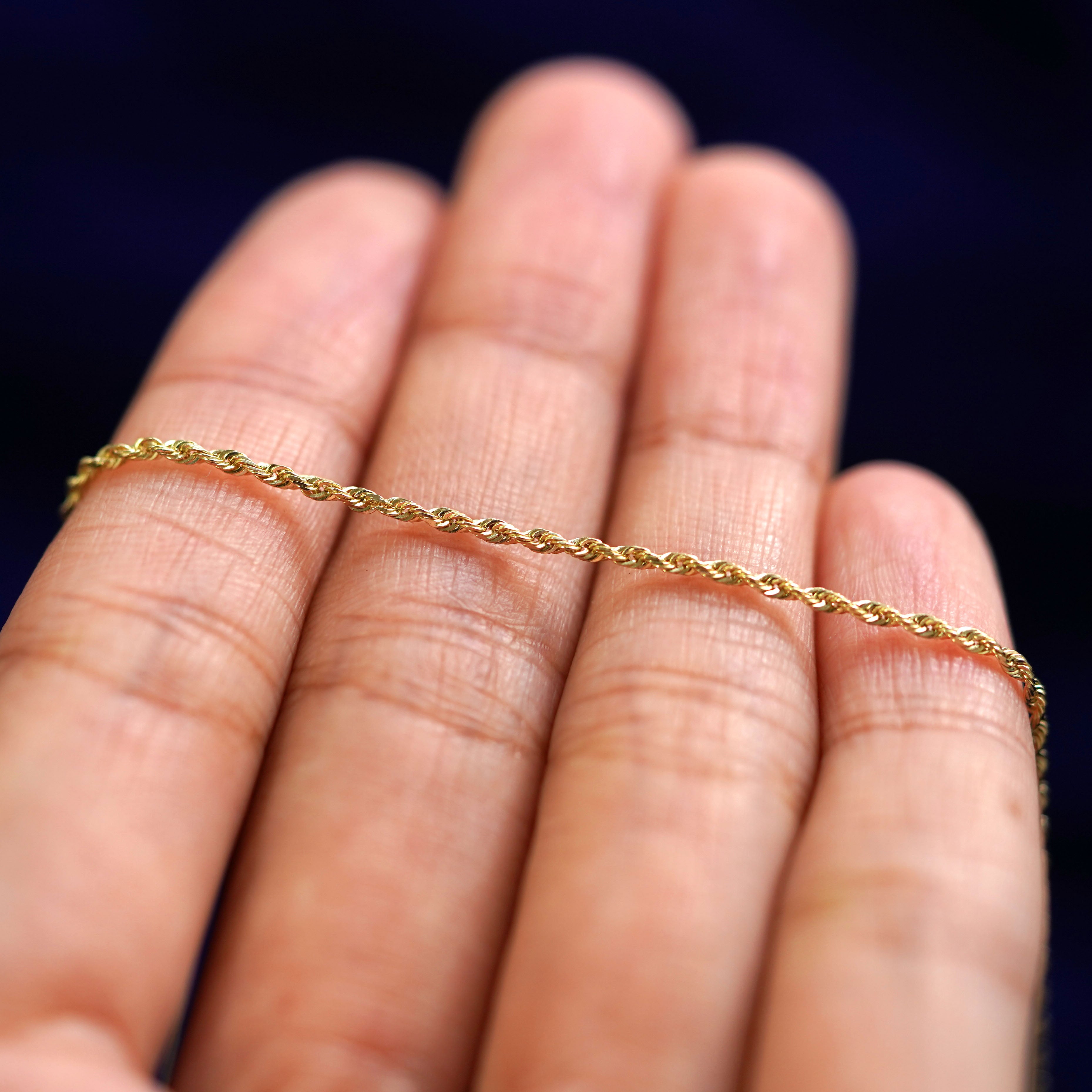 A timeless design and gorgeous shine make this rope chain anklet the perfect staple piece to add to your jewelry collection. This solid gold ankle bracelet is perfect for every event and every outfit.