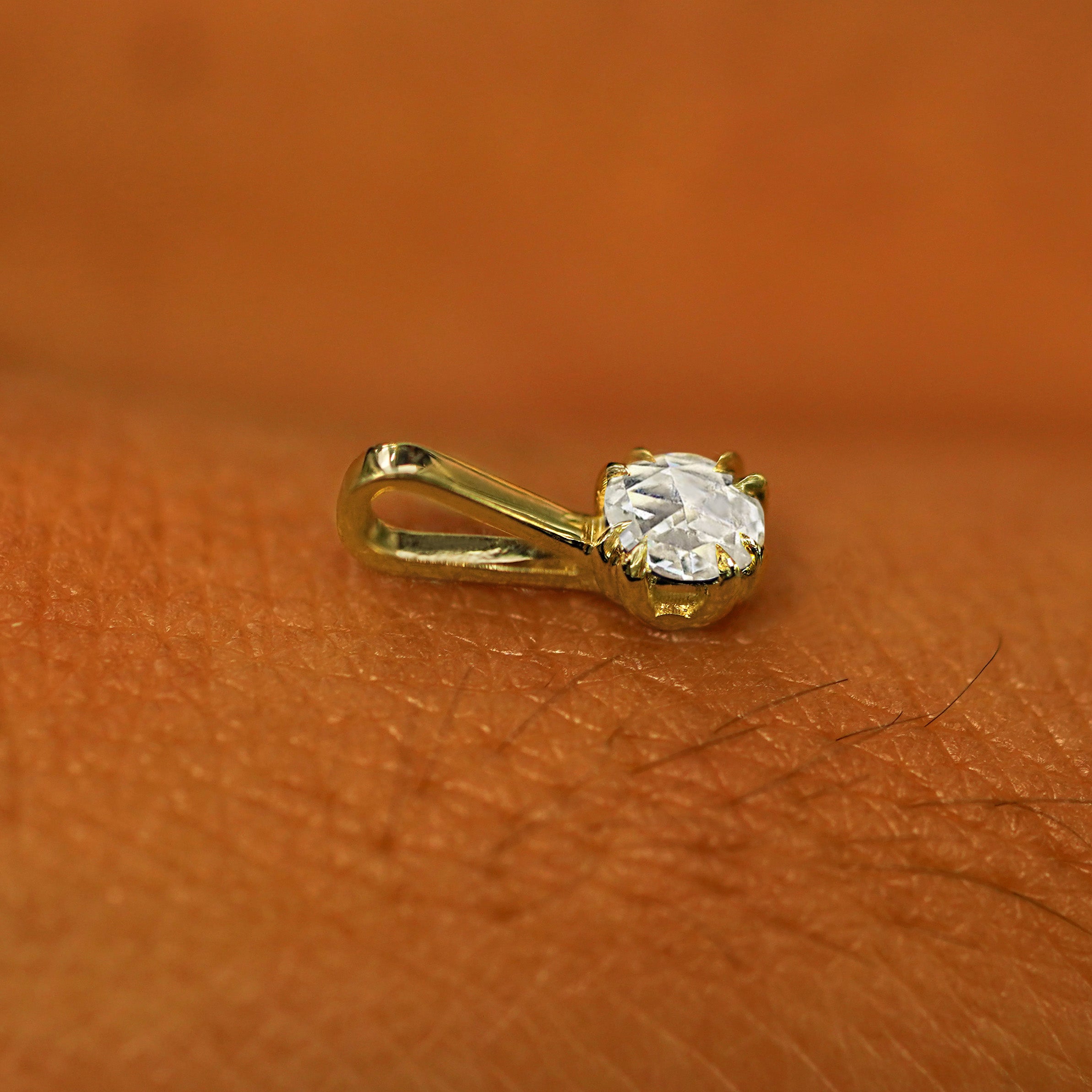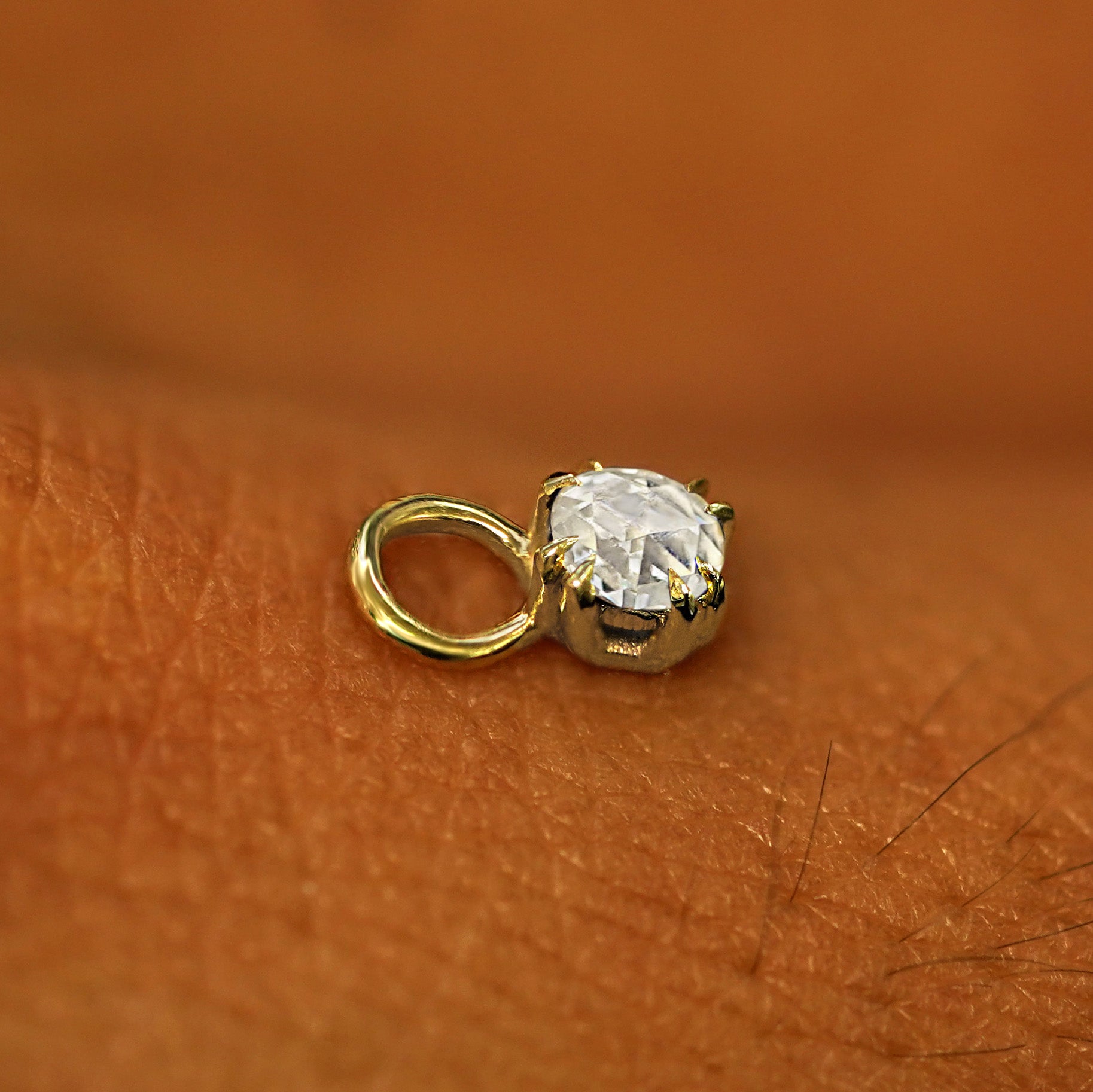 Stunning, sparkling, and oh so charming, this little rose-cut diamond charm has it all. A solid gold charm with so many possibilities, wear this as a diamond pendant or dress up your favorite earring or bracelet for a look that’s unique and stylish.