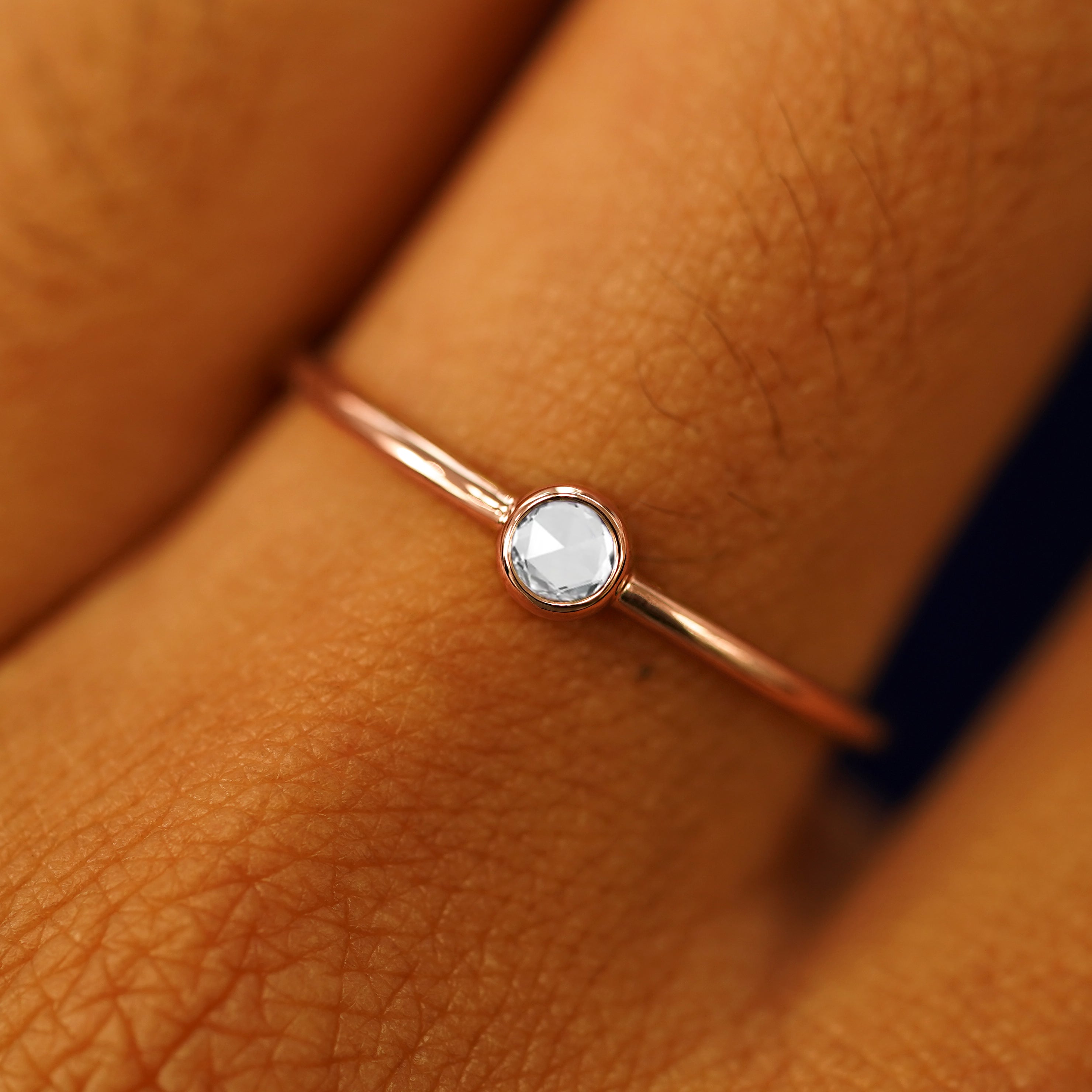 Who wouldn’t love to carry a bouquet of these roses? This gorgeous rose-cut diamond ring is a sparkling beauty anyone would be proud to wear. Crafted from solid 14k gold or 950 platinum, this beautiful solitaire ring is perfect to dress up your favorite outfit. Whether you’re declaring your love with an engagement ring or celebrating yourself with some stunning April birthstone jewelry, this diamond ring is a solid gold investment.