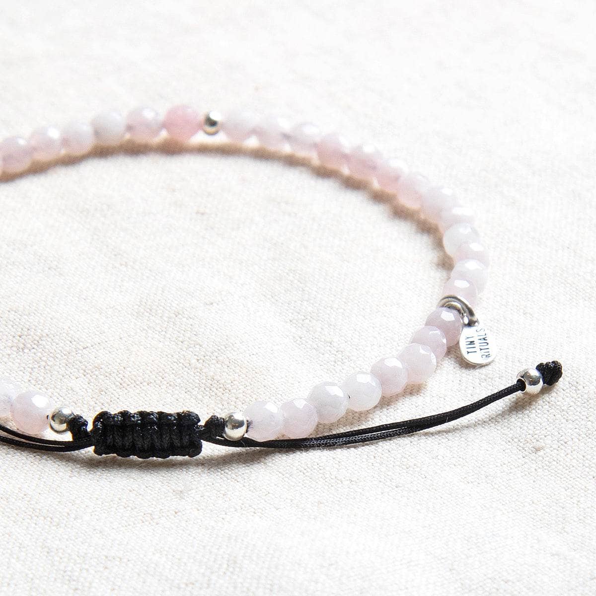- Faceted Genuine 4mm Rose Quartz Gemstone Beads with silvery beads & Tiny Rituals Tag