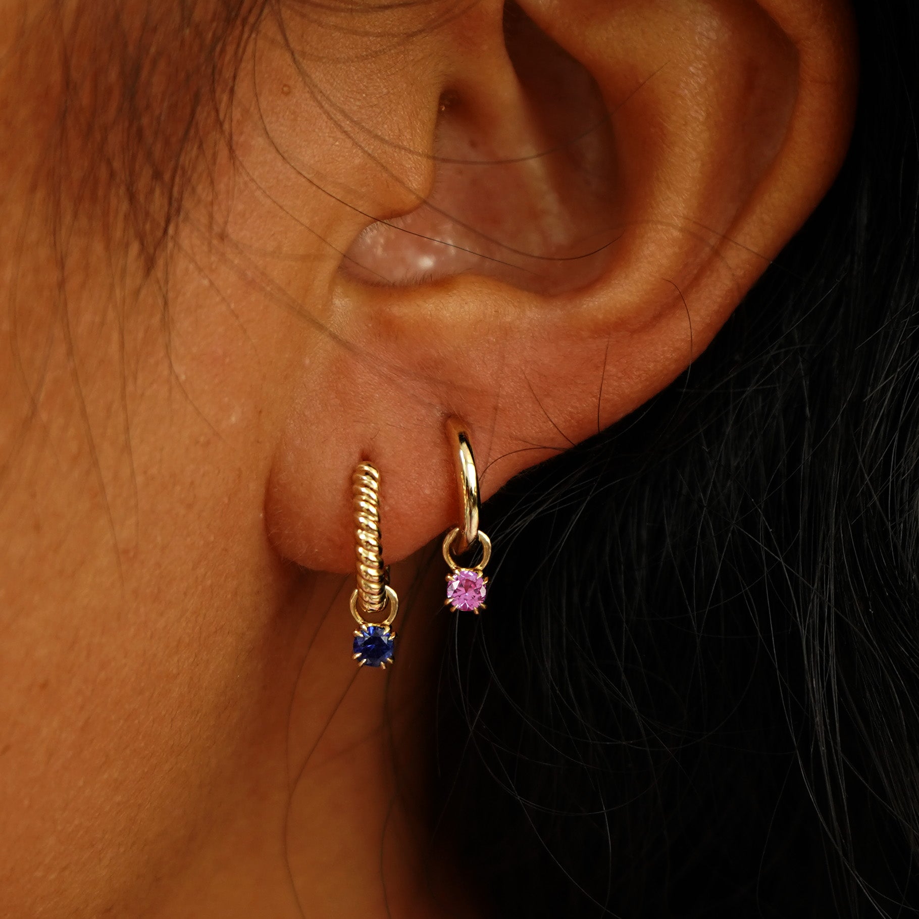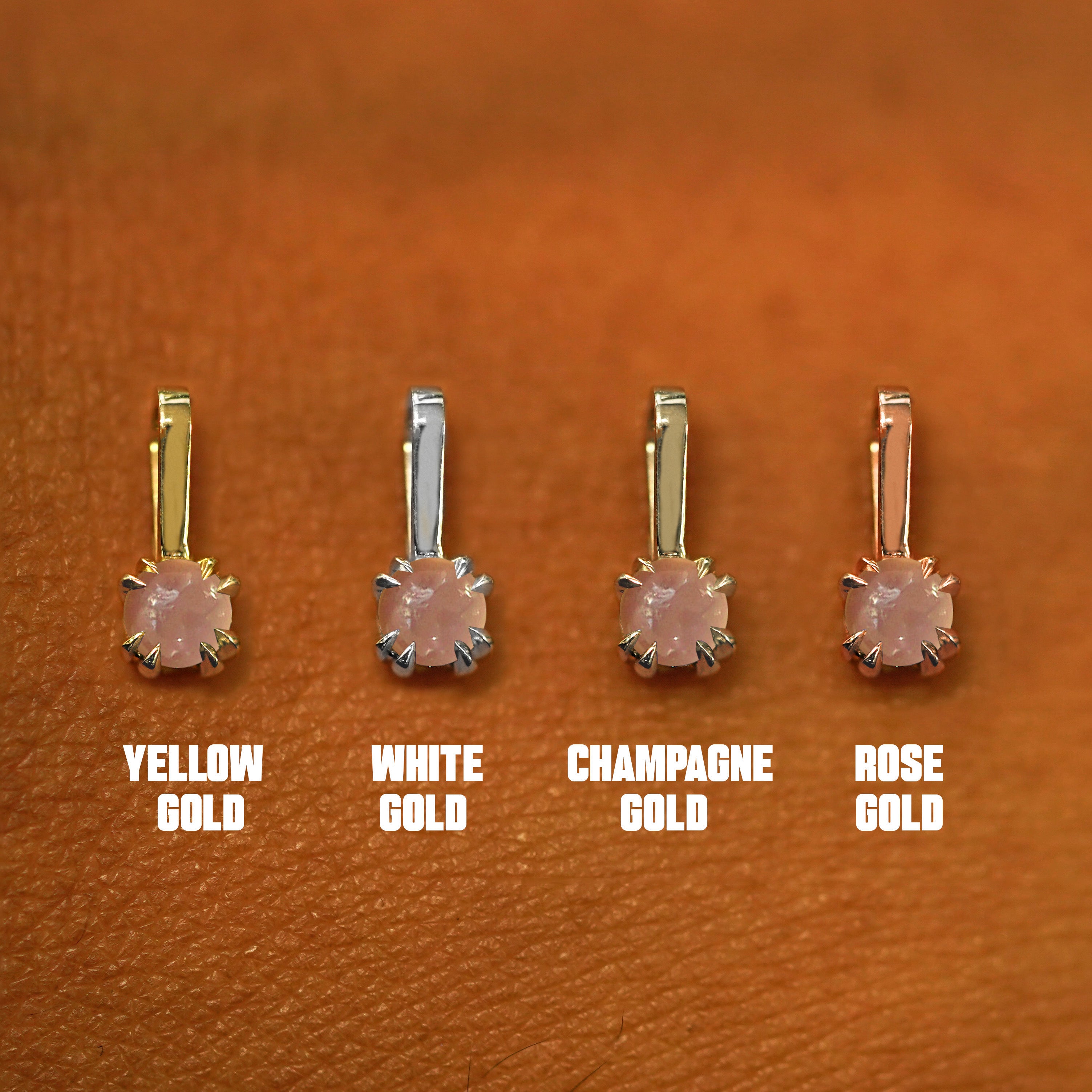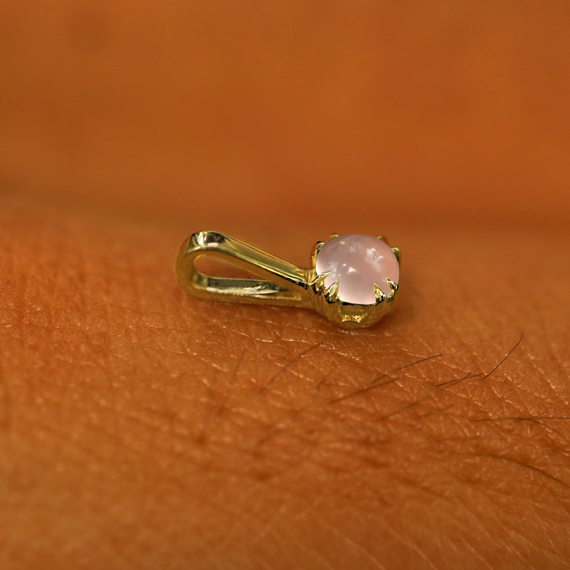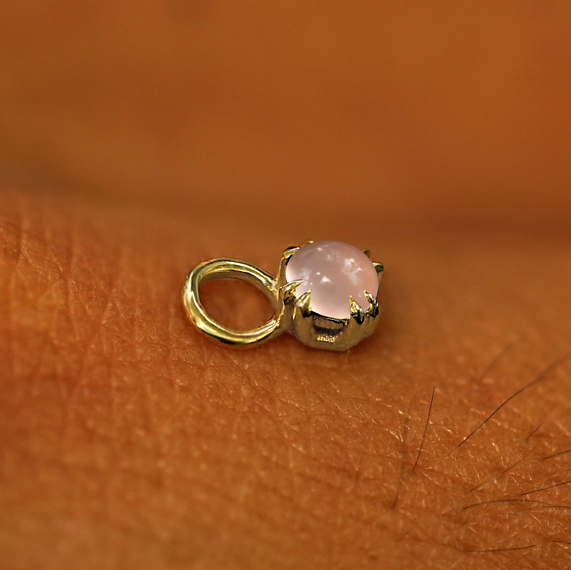 This dainty gemstone charm is a versatile babe. Wear this rose quartz charm as a little gold pendant necklace or add it to our solid gold hoops to switch up your style.
