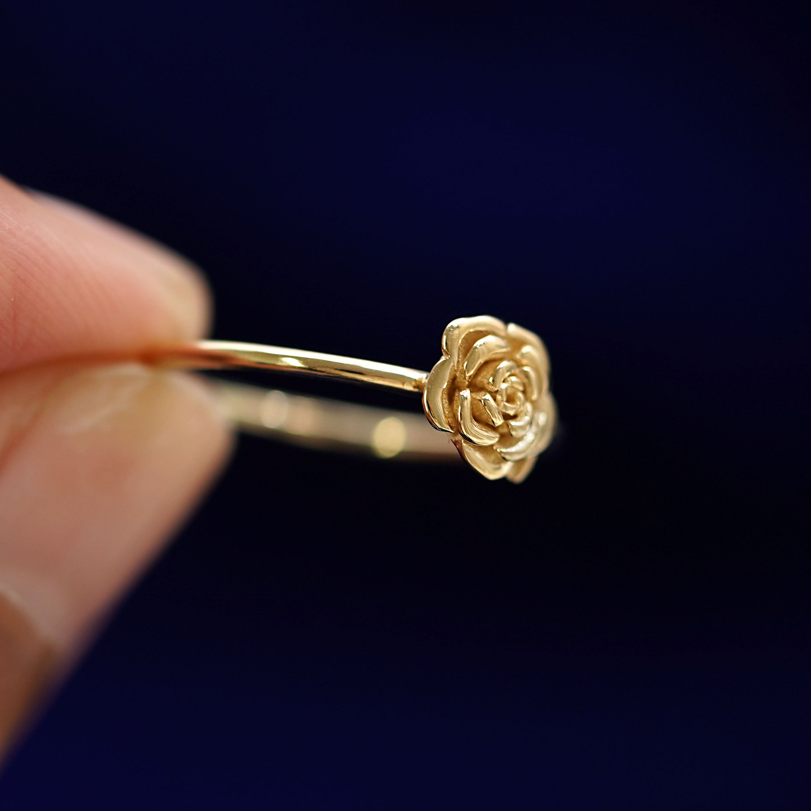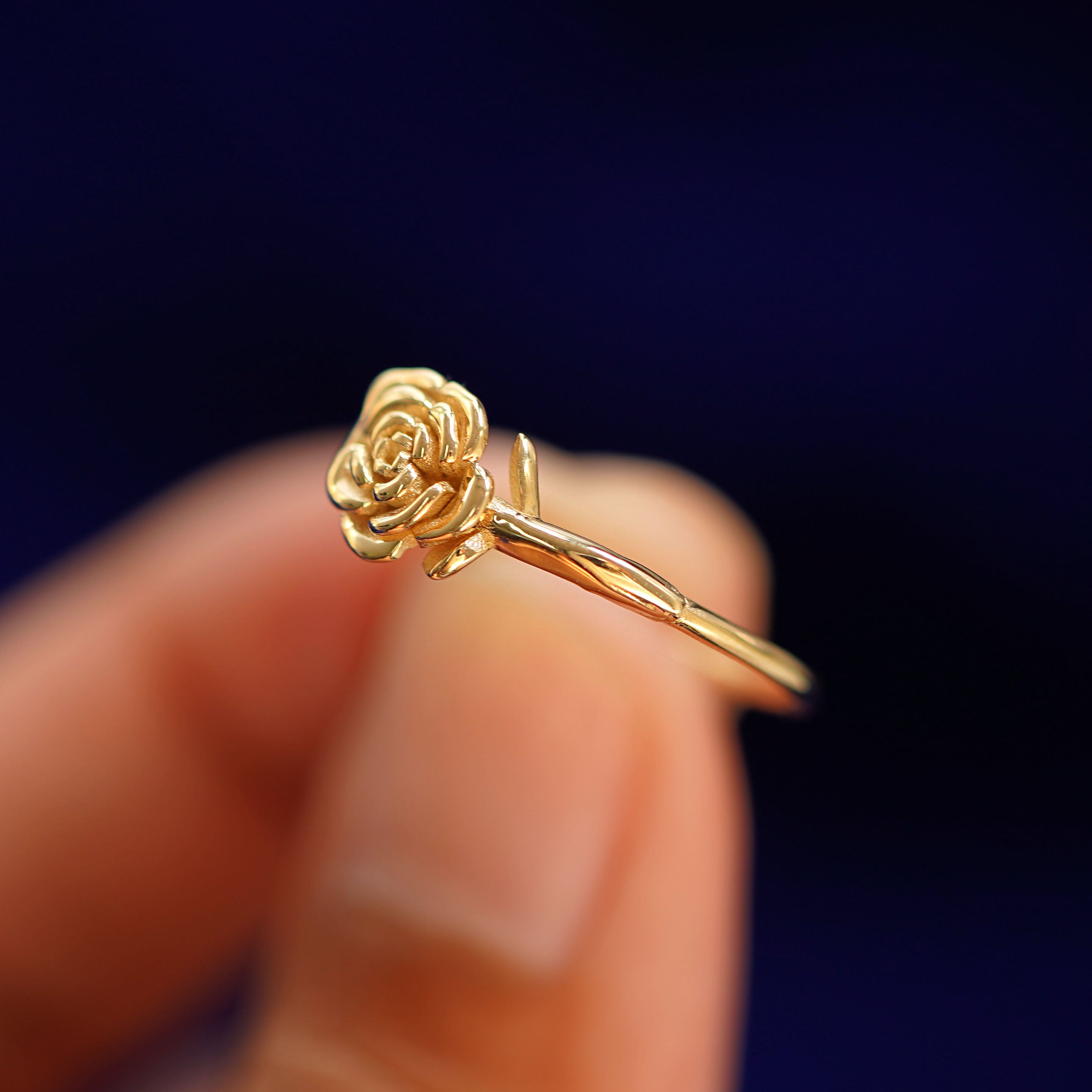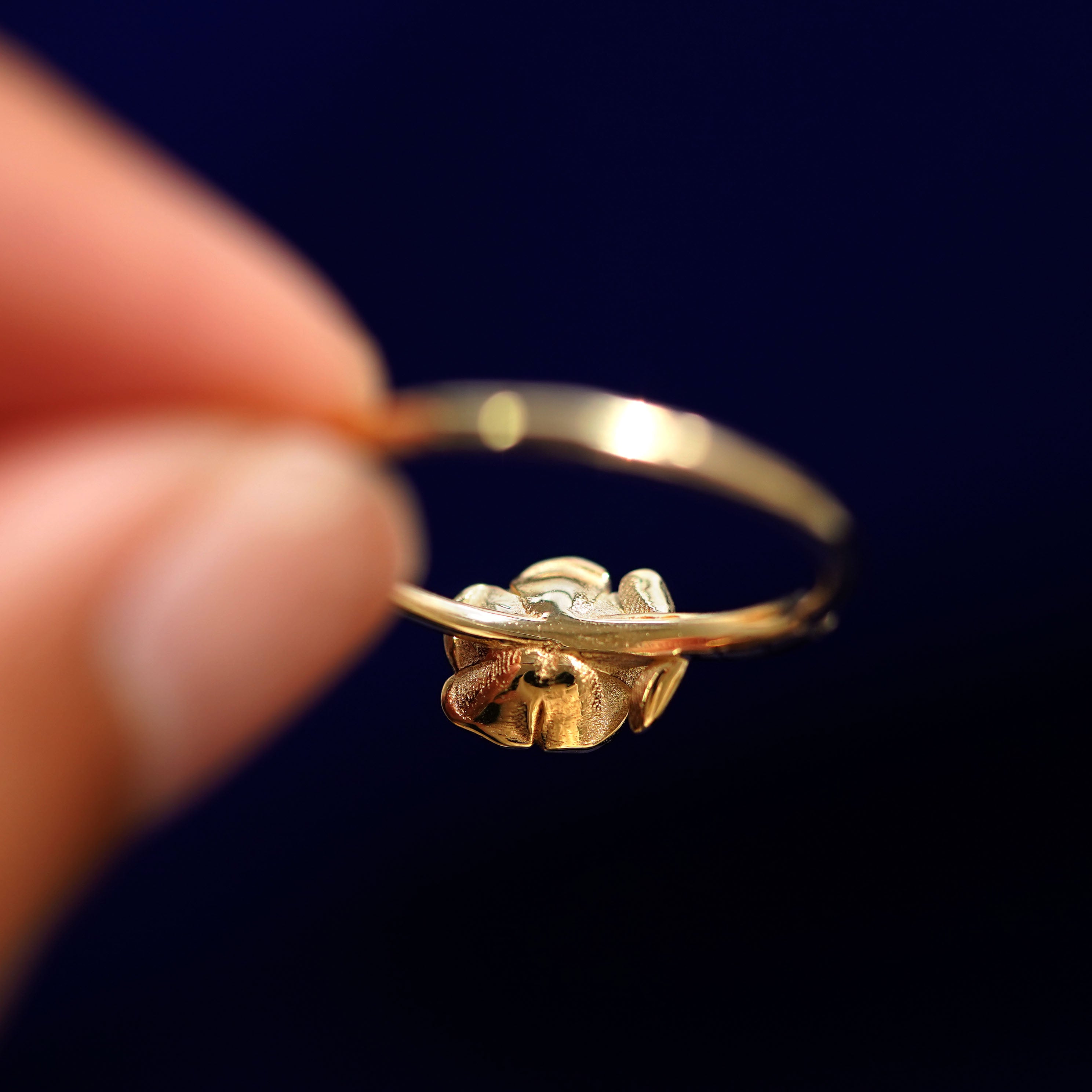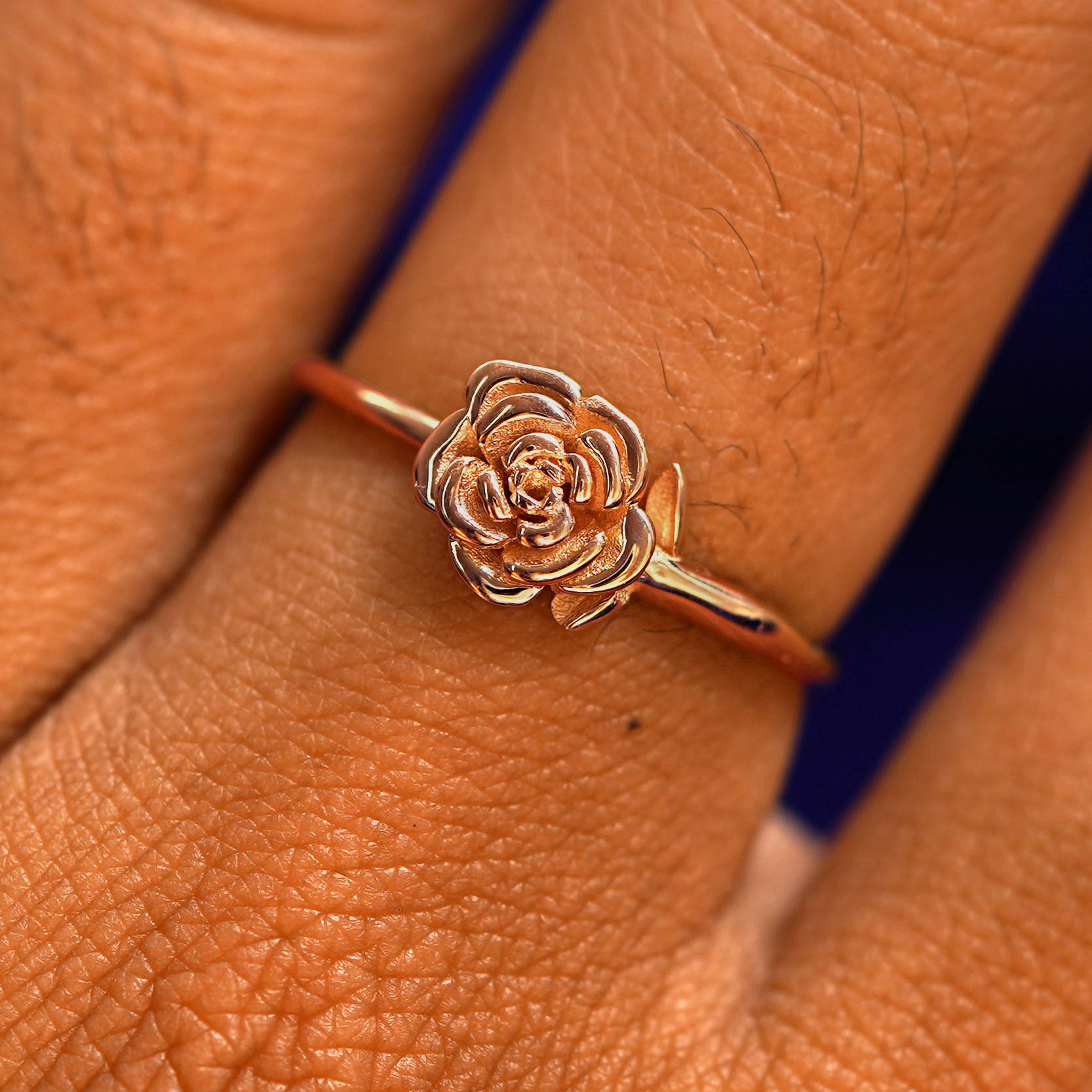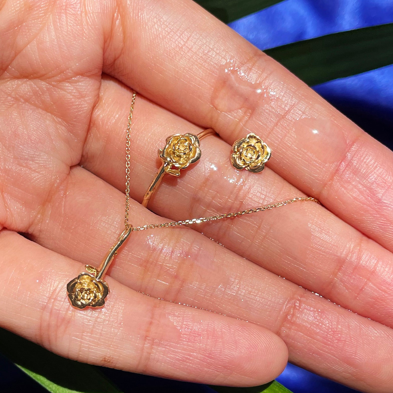 The beauty of nature captured in a stunning flower ring. This rose is suspended on a detailed stem and is a breathtaking gift—each petal of this Rose has a unique shape and curve and is cast from recycled 14 karat gold or 950 platinum. Nature jewelry made with nature in mind, this sustainable ring is the perfect piece for anyone who’s both eco-conscious and fashion-forward.