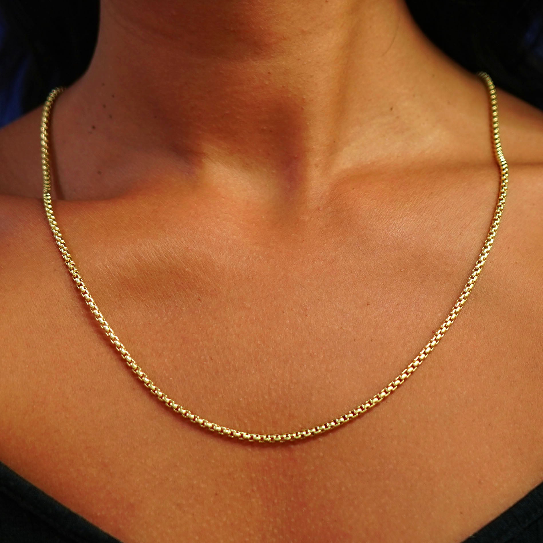 Solid gold style that really goes outside the box, this durable and substantial round box chain is the chunky necklace you need to really make a statement. Made with recycled 14k gold and a rounded design, this necklace is both comfy and sustainable.