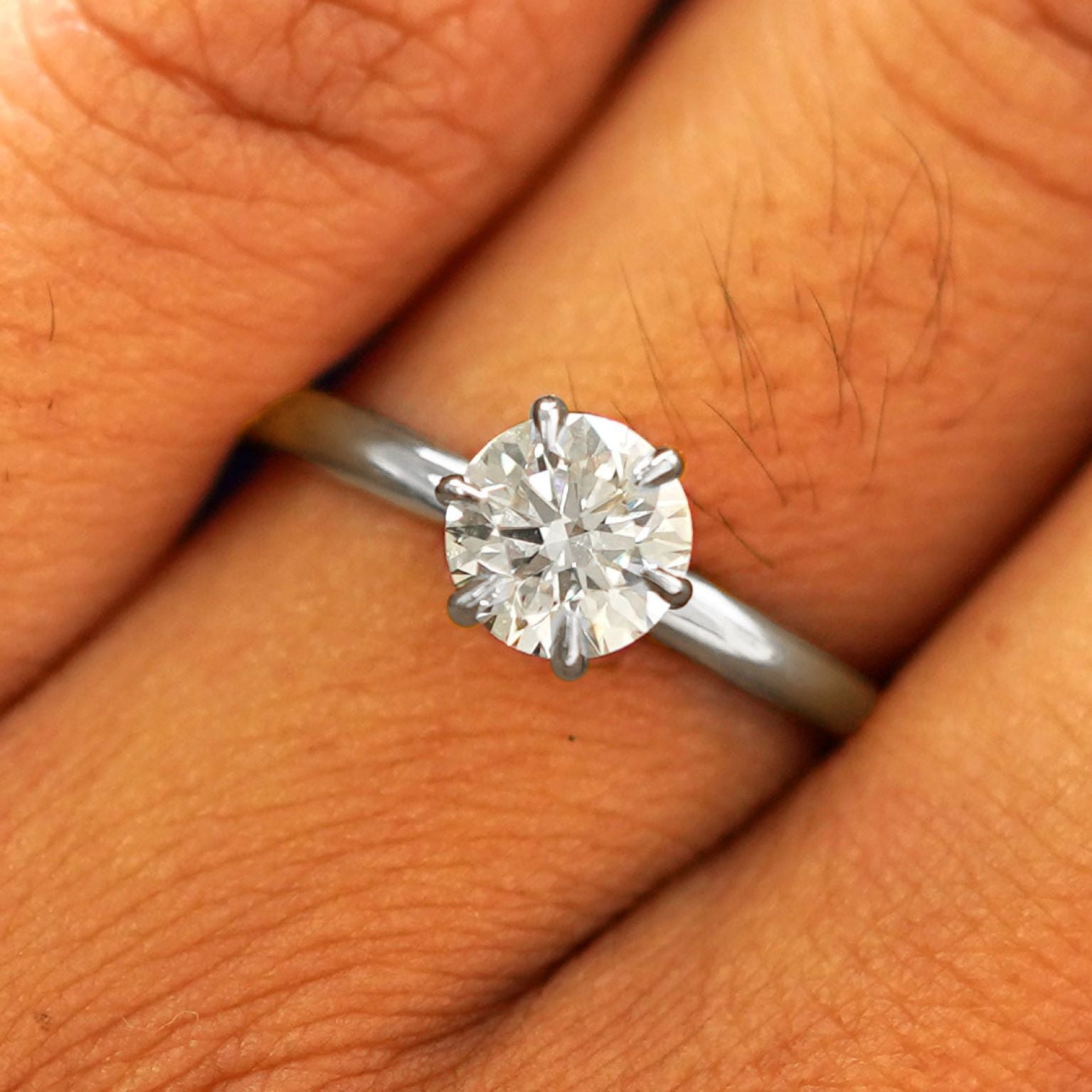 Who doesn’t love a classic? This incredible 1 carat diamond ring features a glittering round lab-created diamond in a 6 claw prong setting on a shining solid 14k gold or 950 platinum band. The setting of this solitaire ring keeps the stone in place and the band is designed to be thin enough to make the size of the stone stand out while also maintaining its shape. Simple, elegant, affordable—you just can’t go wrong!
