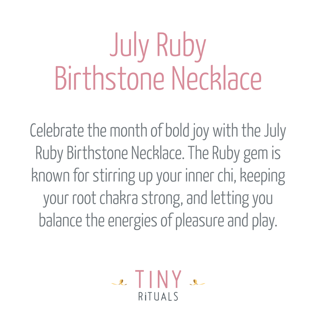 Like the fiery glow of the sun, this July Ruby Birthstone Necklace is the perfect gift for the summer child. For those born in the month of July, in the northern hemisphere it's a vibe all about fun, joy, and being bold, whereas, in the south, it can be a time of reflective thought. The Ruby captures all of these moods and more.
