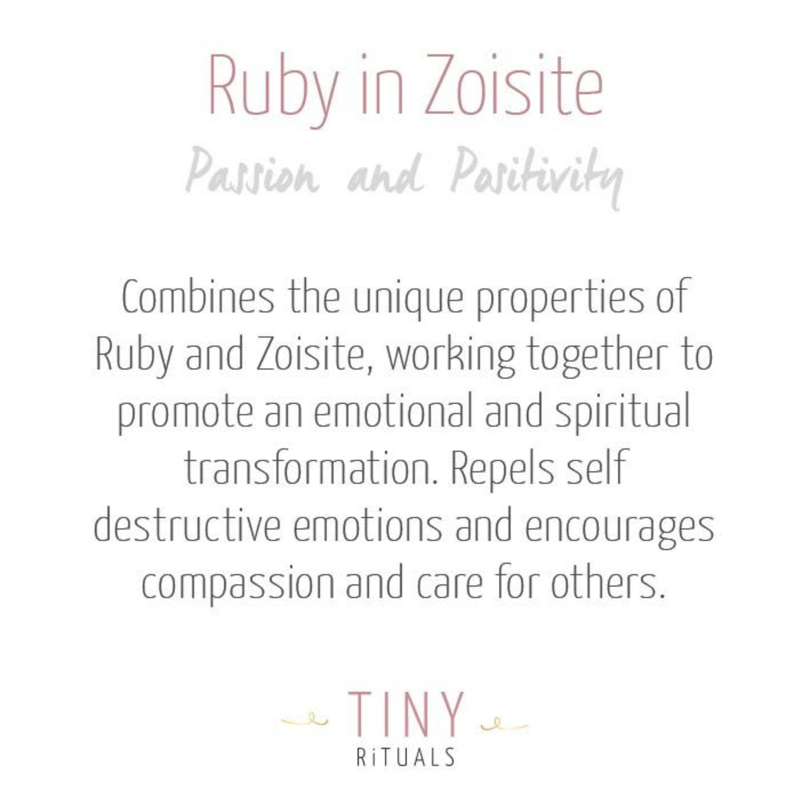 A fusion of fire and patience, the Ruby Zoisite Energy Bracelet is a beautiful reminder that we pass through plains of energy. Those wanting to balance conscious connection with the integrity of individual spirit will adore this delicate dreamy piece wrapped around their wrist.