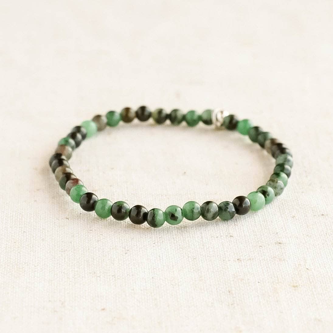 Emerald green and speckled or rippled with blood-red finery, the Ruby Zoisite is one of the most enchanting stones on earth. Awash with a regal rarity, the Ruby Zoisite Energy Bracelet instills laughter, light-hearted joy, strength of character, and a deeper appreciation of life that doesn’t weigh heavy on the heart.