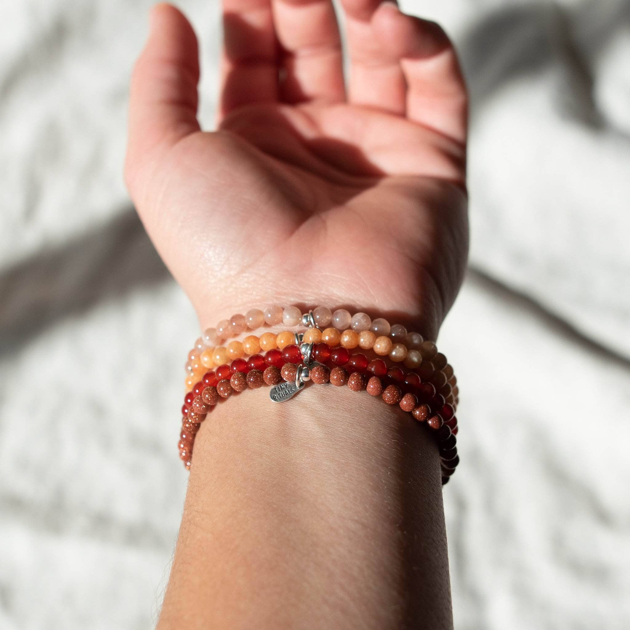 Carnelian shimmers in all the sunset hues. Crimson colors and orange fire flicker to encourage you to take bold action with a bright smile. This isn’t a stone about saving face but making space and stimulating your chi. It has energy and a warm vibrancy that seeps into every single cell.