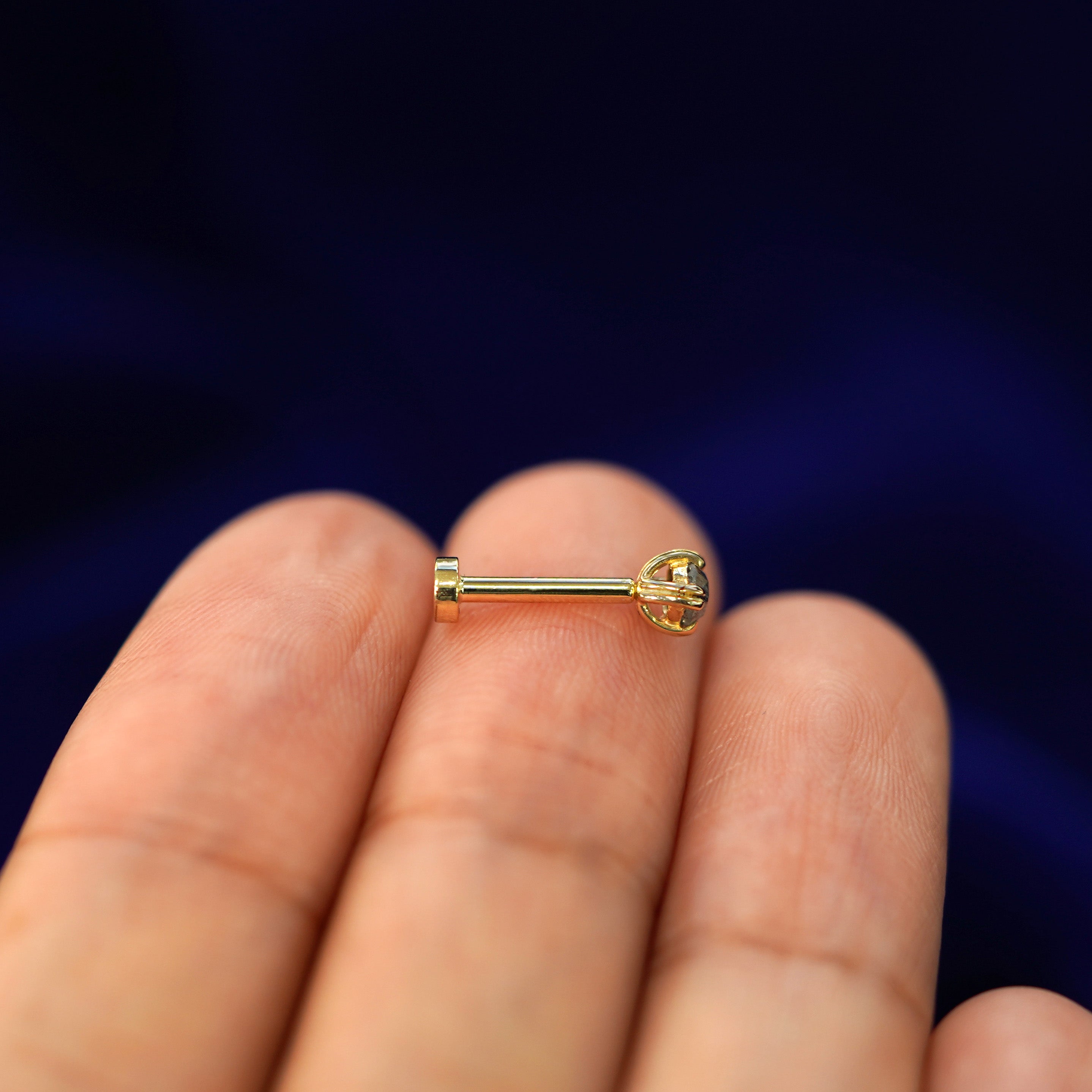 This stunning salt and pepper diamond flatback stud is the perfect sparkly piece for any of your piercings. This threadless push-in stud is made with solid 14k gold so you can wear it comfortably. Our flat back backings are crafted only in 14k yellow gold to avoid sensitivity.
