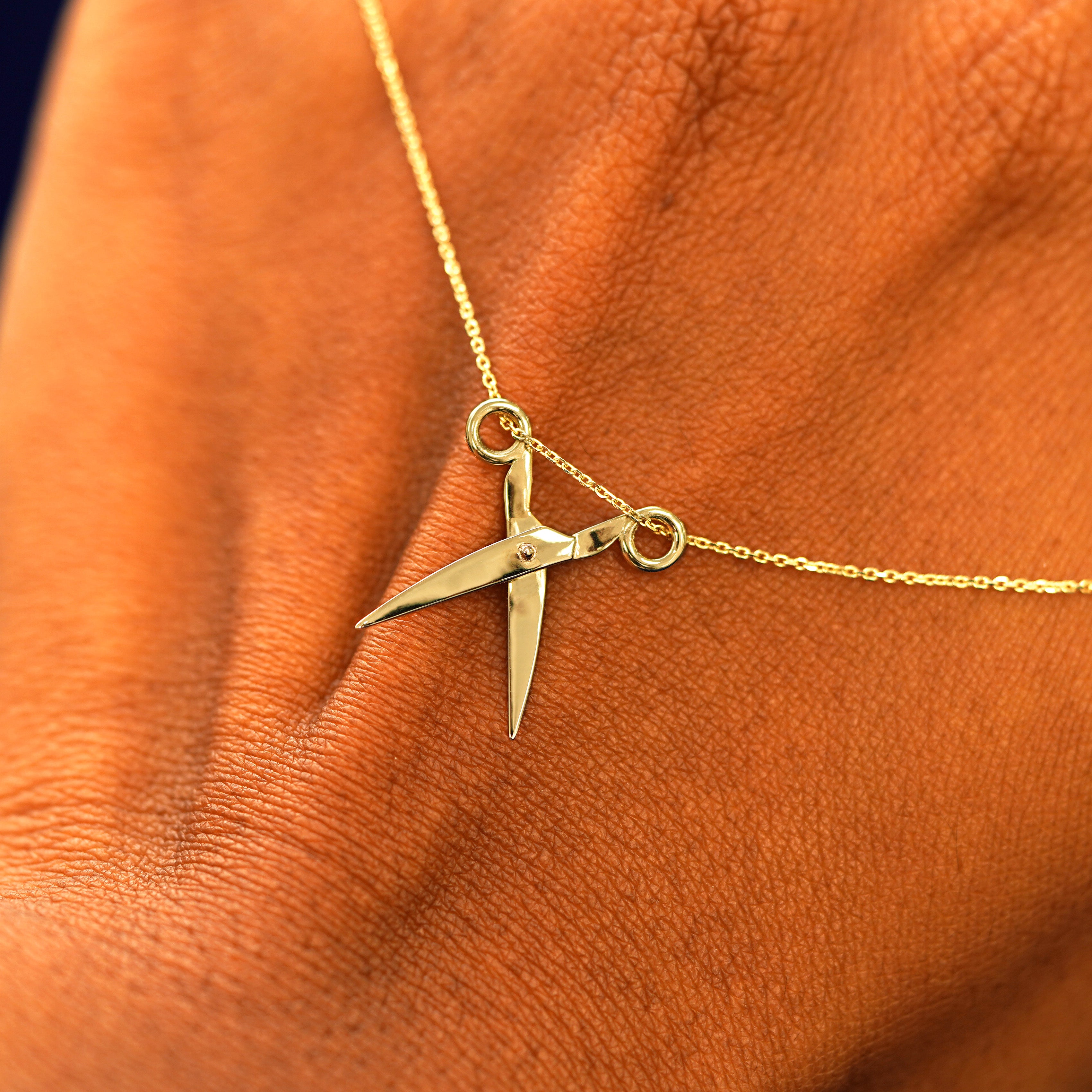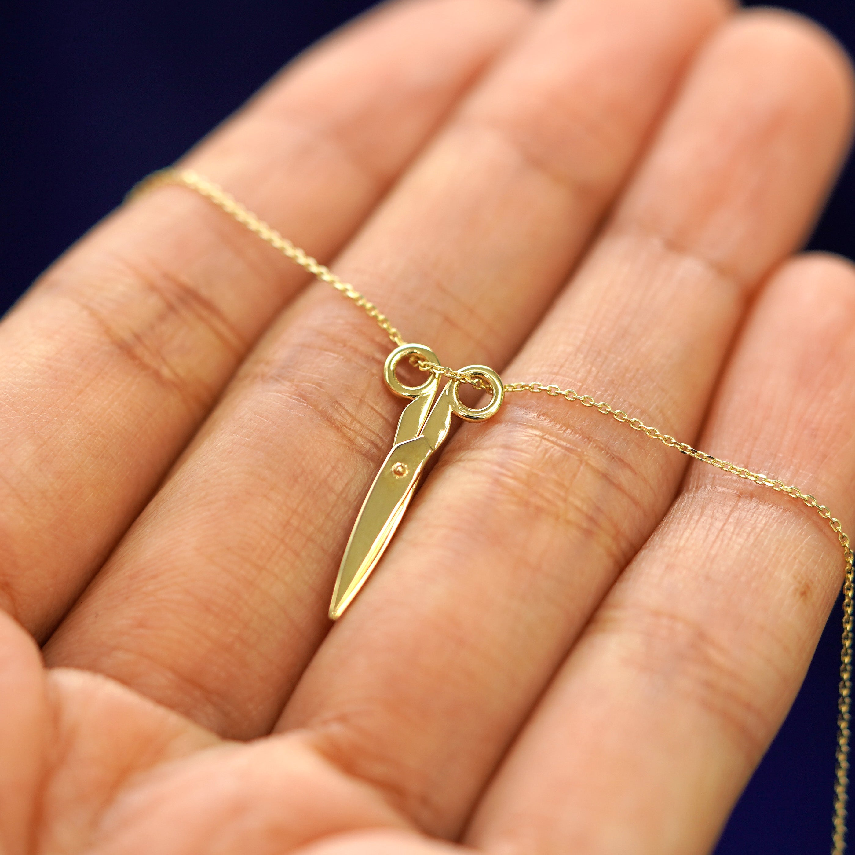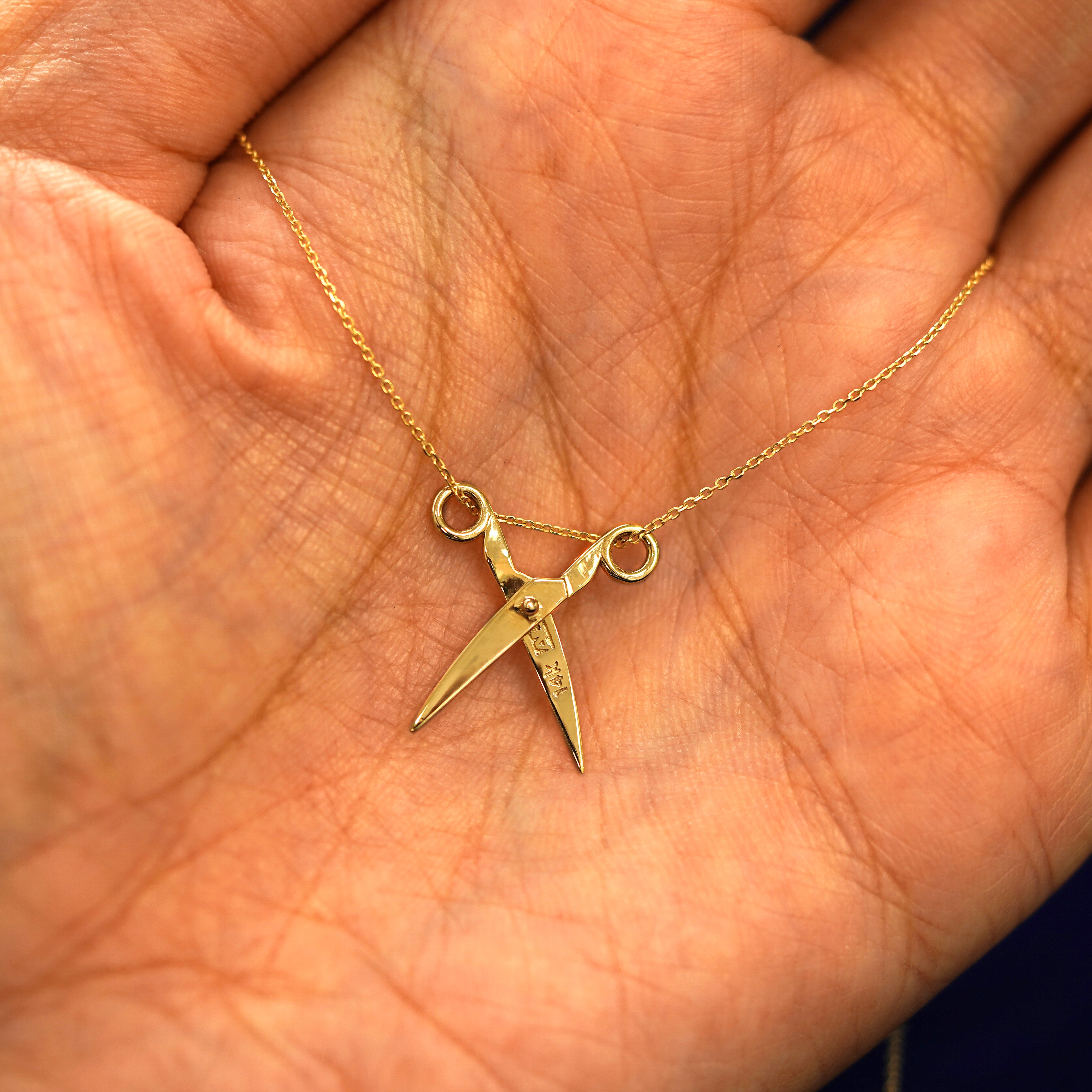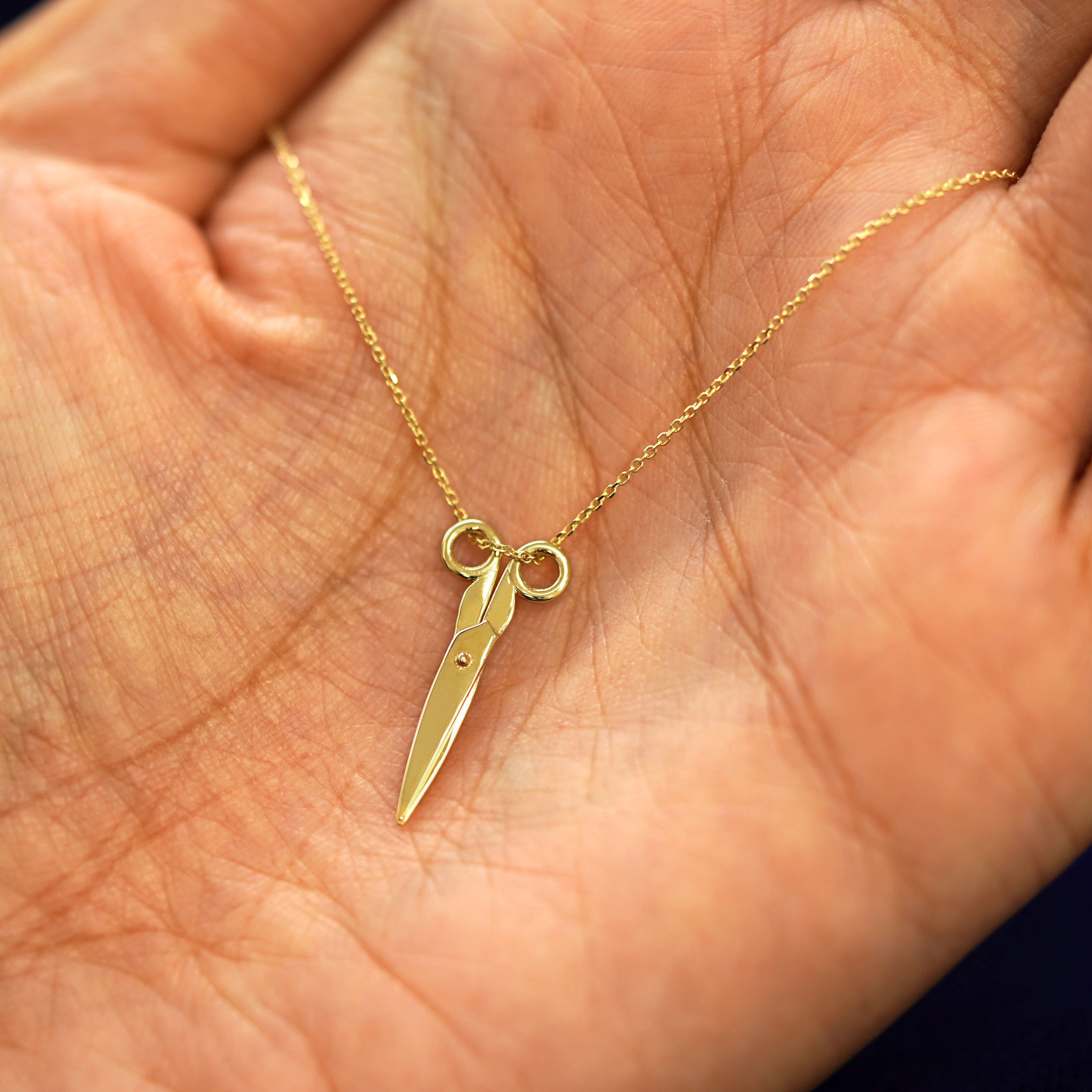 A spin on our Scissors Charm, a solid gold cable chain is draped through a golden pair of scissors that actually open and close. This 14 karat gold scissors necklace is the perfect unique gift for any crafter, hairstylist, or subtle sapphic. The Cable Chain secures with a lobster lock and easy-to-grip Automic Gold AU plate.