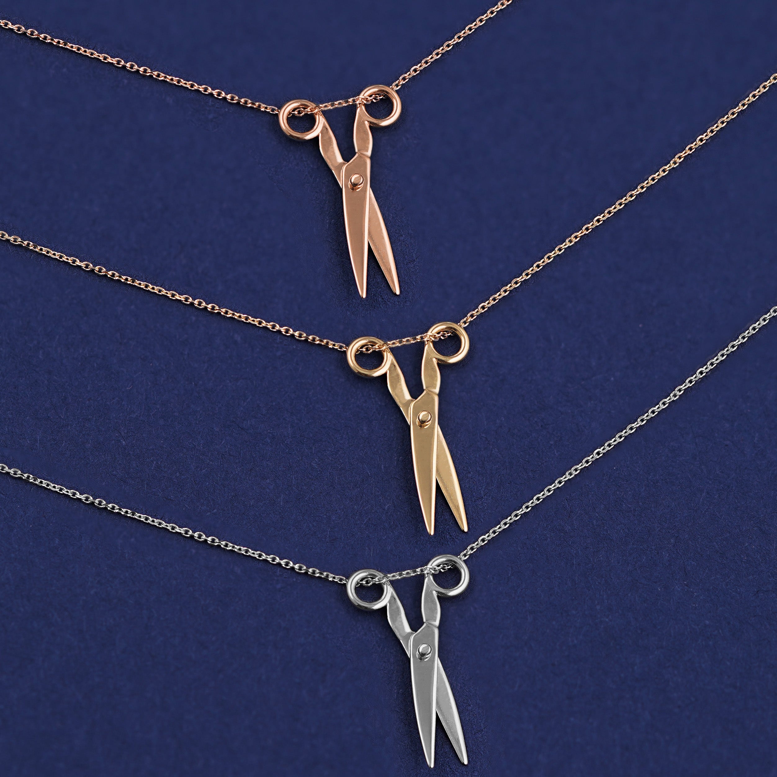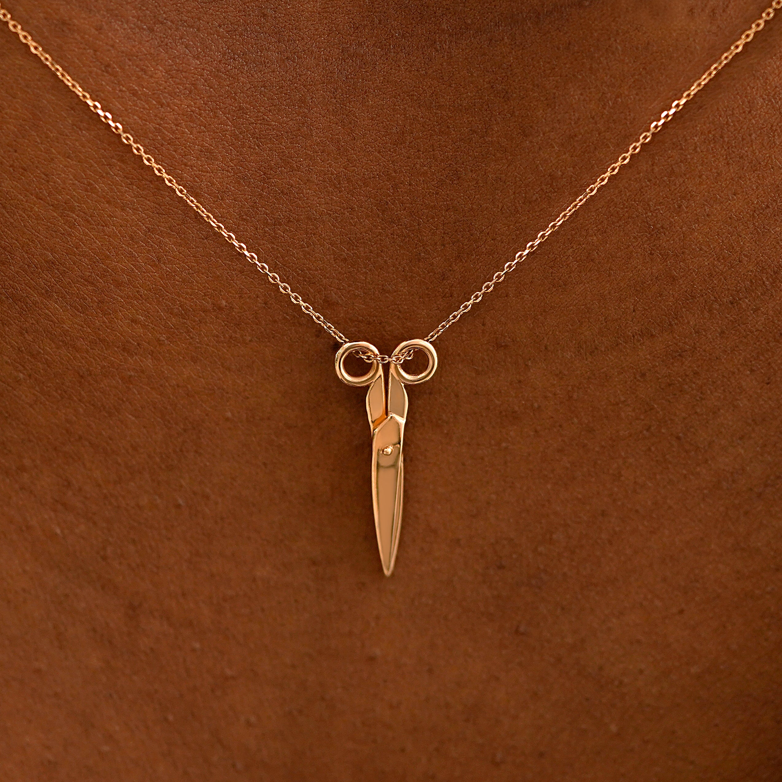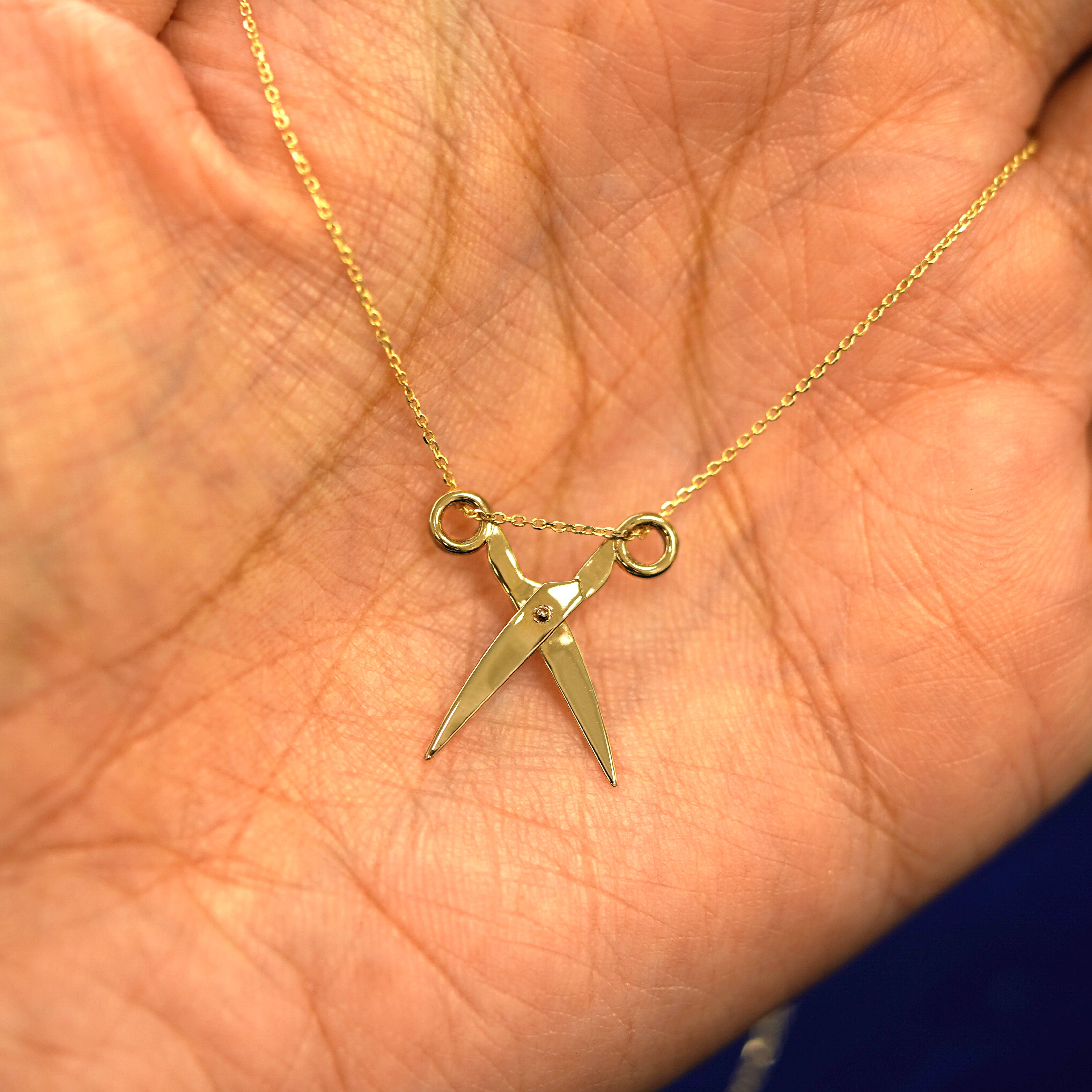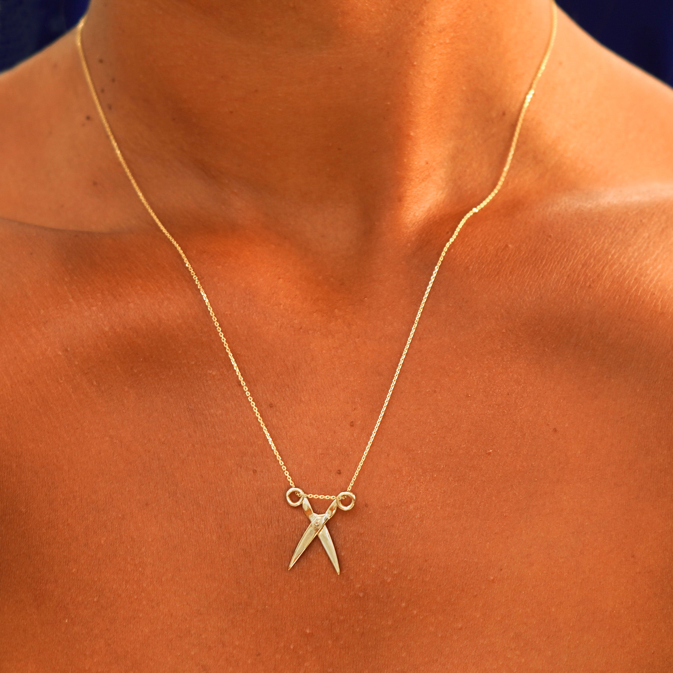 A spin on our Scissors Charm, a solid gold cable chain is draped through a golden pair of scissors that actually open and close. This 14 karat gold scissors necklace is the perfect unique gift for any crafter, hairstylist, or subtle sapphic. The Cable Chain secures with a lobster lock and easy-to-grip Automic Gold AU plate.