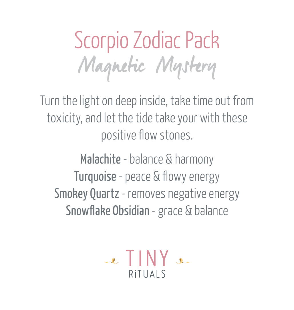 Deeply determined, brimming with everlasting loyalty and highly adept at making close connections, Scorpios are ambitious and amazingly adept at putting forth their authentic selves. Due to their pinch of stubbornness, they are often mistaken for a fire sign, but rather these emotional creatures come from the water element. Malachite, Turquoise, Smokey Quartz and Snowflake Obsidian are a Scorpios soul medicine.