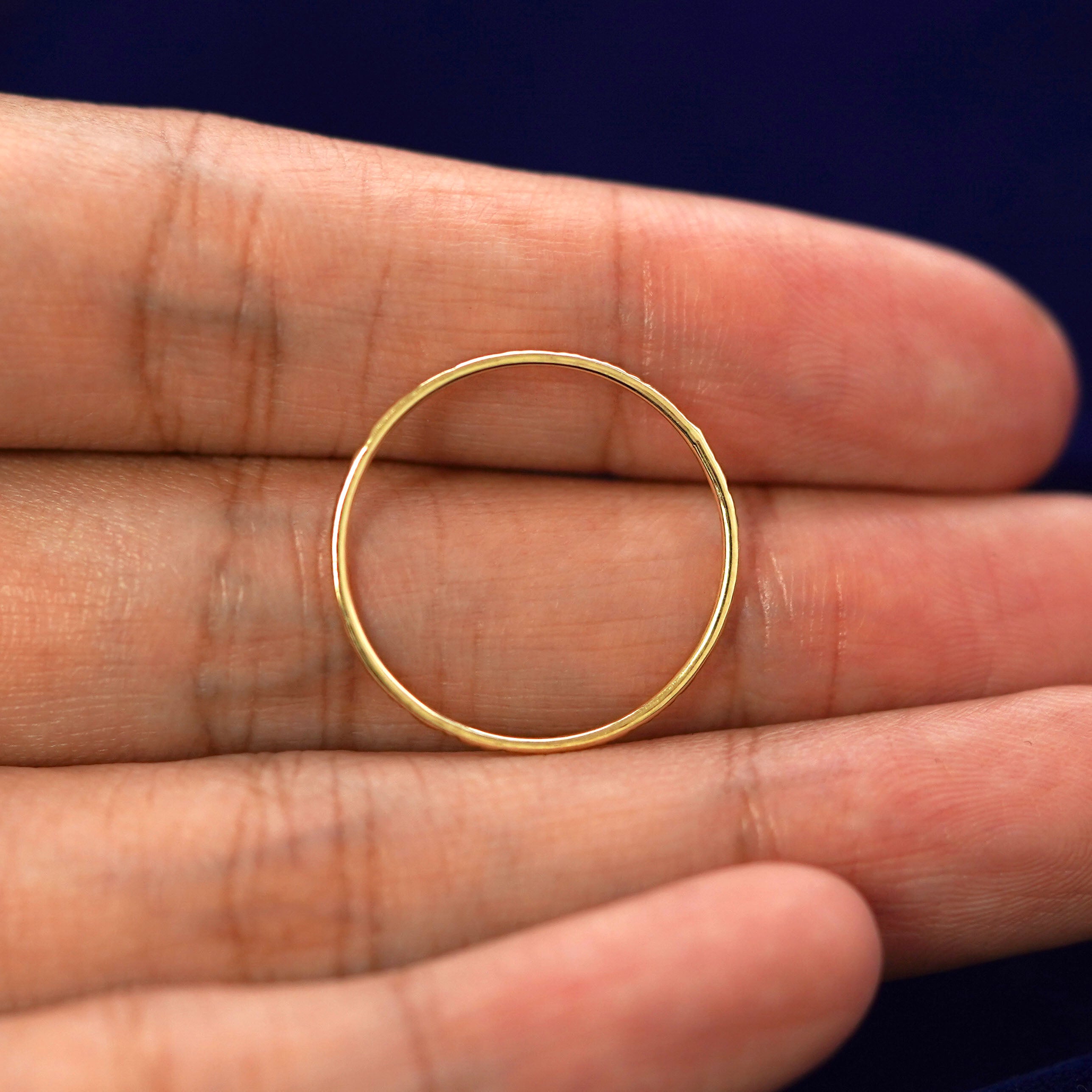 Our shimmery take on our Line Ring, this delicate gold band has just the right amount of shine to elevate your look. Detailed, but still minimal, wear this 14k solid gold ring everywhere. A perfect stackable ring, wear a few at once or pair it with our other 14 karat gold rings.