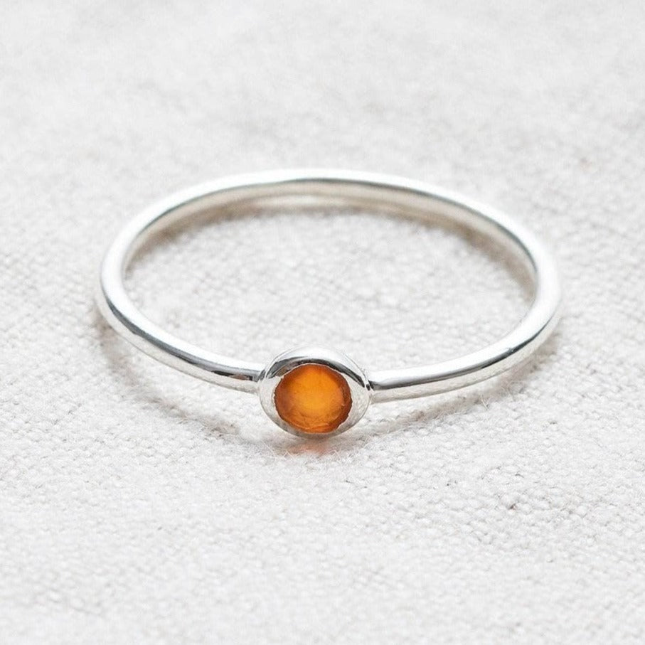 Slip the sunset stone on your finger and carry the flickering flame of light with you thanks to this natural Carnelian silver ring. Bright hues of orange and red mesh together to make this earthy warm lower chakra stone set in 925 sterling silver. With these handmade rings, you also get the illuminating benefits of sacred silver and its detoxing richness to balance, heal, and keep you calm.