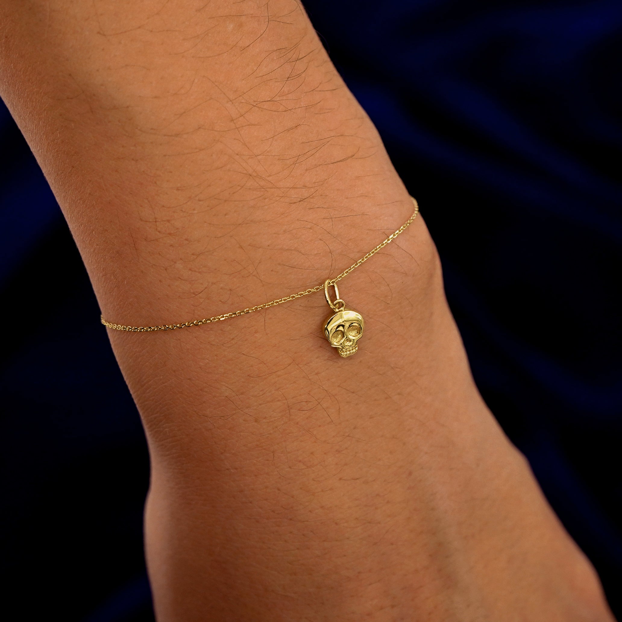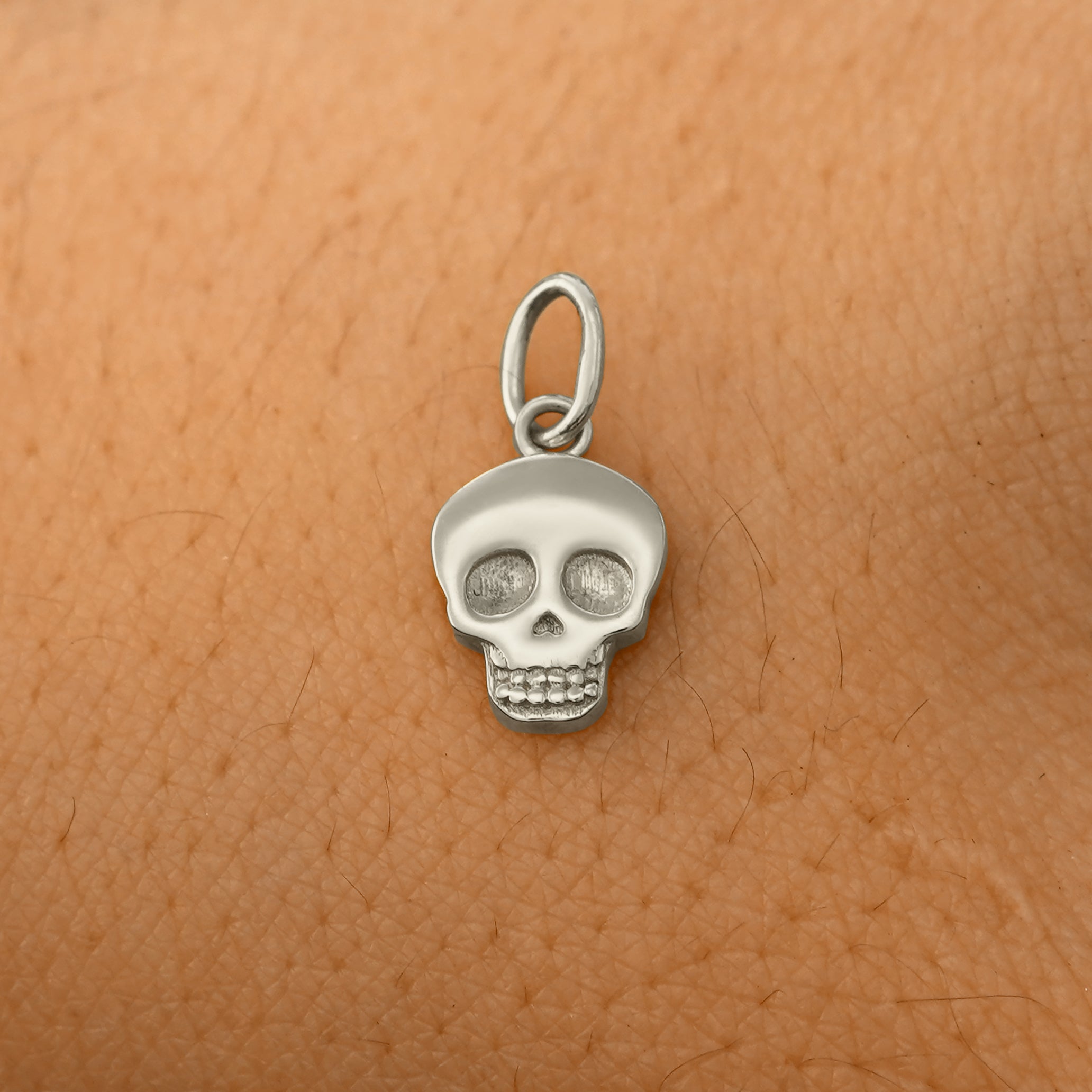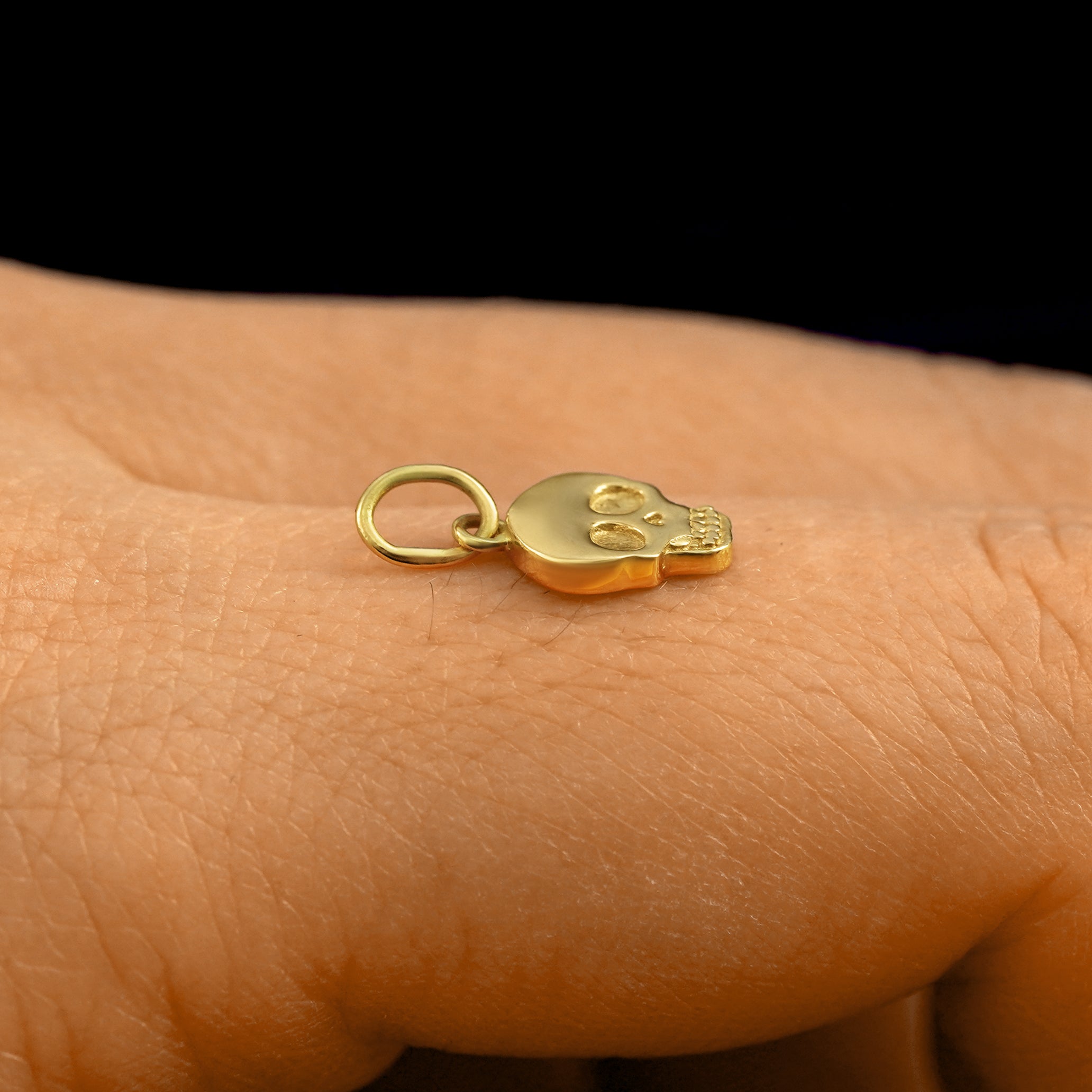 Edgy and chic, this skull charm is the perfect piece to add to your collection. This 14k solid gold charm is in the shape of a skull with cool details in the eyes and teeth that make it stand out on your hoops, chain, or bracelet.