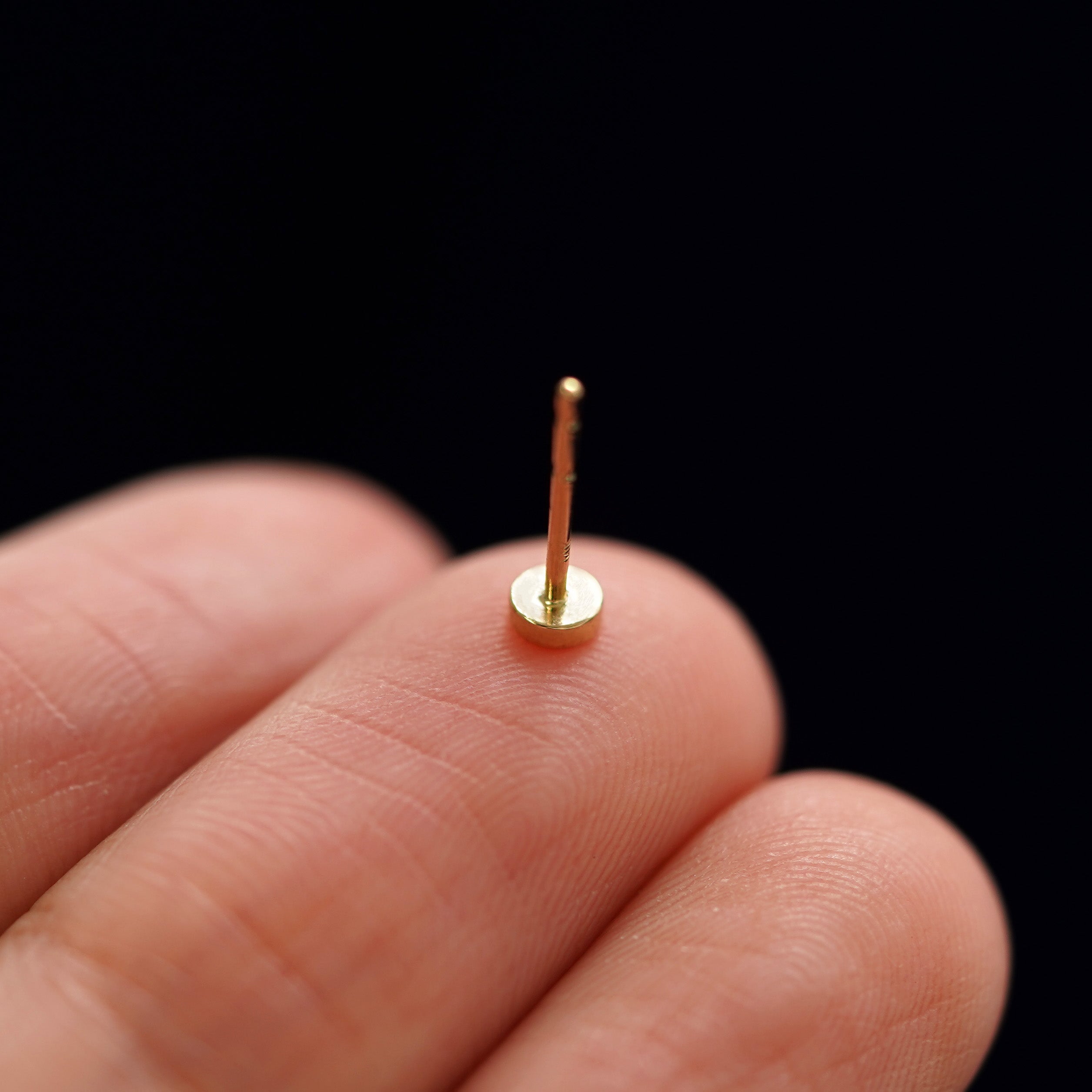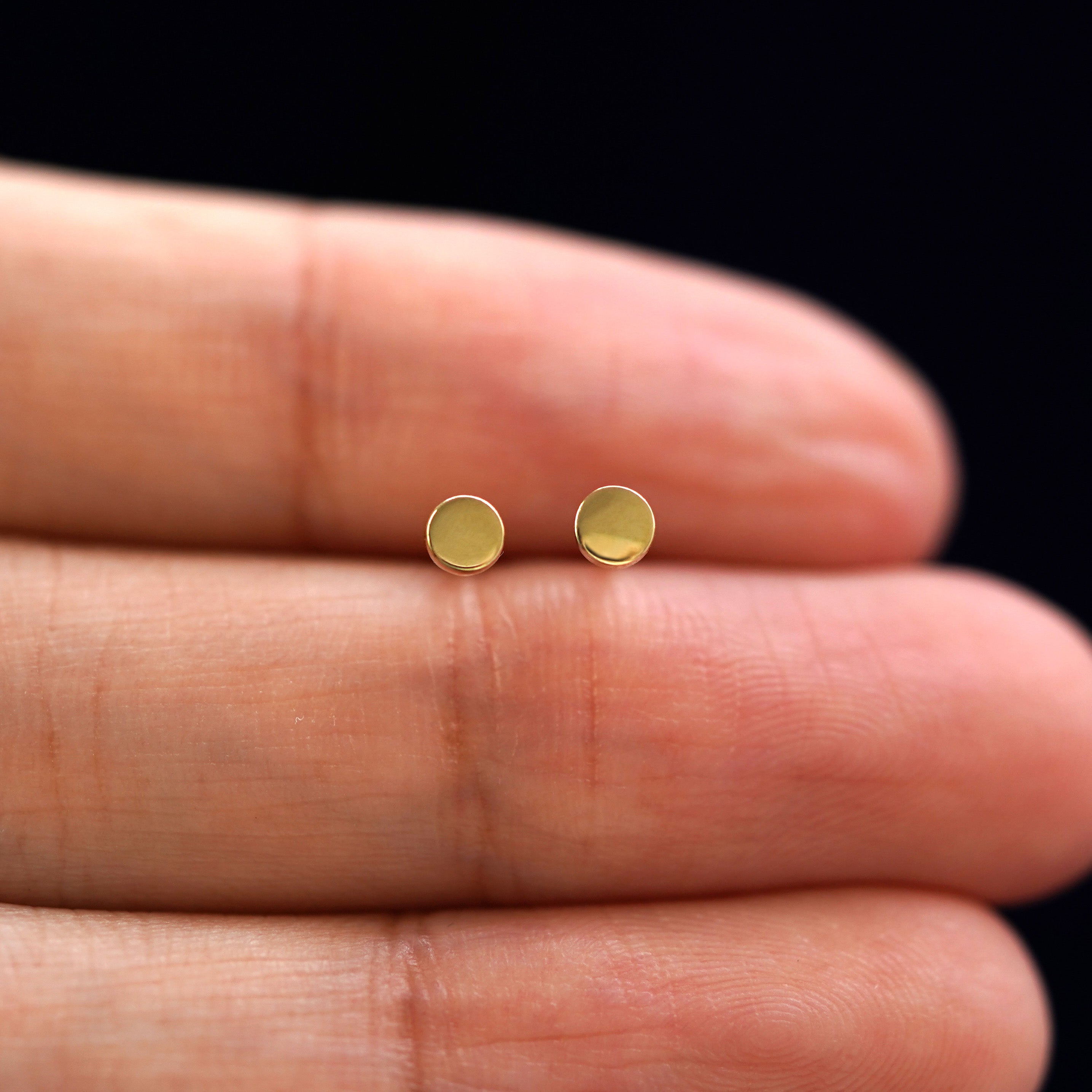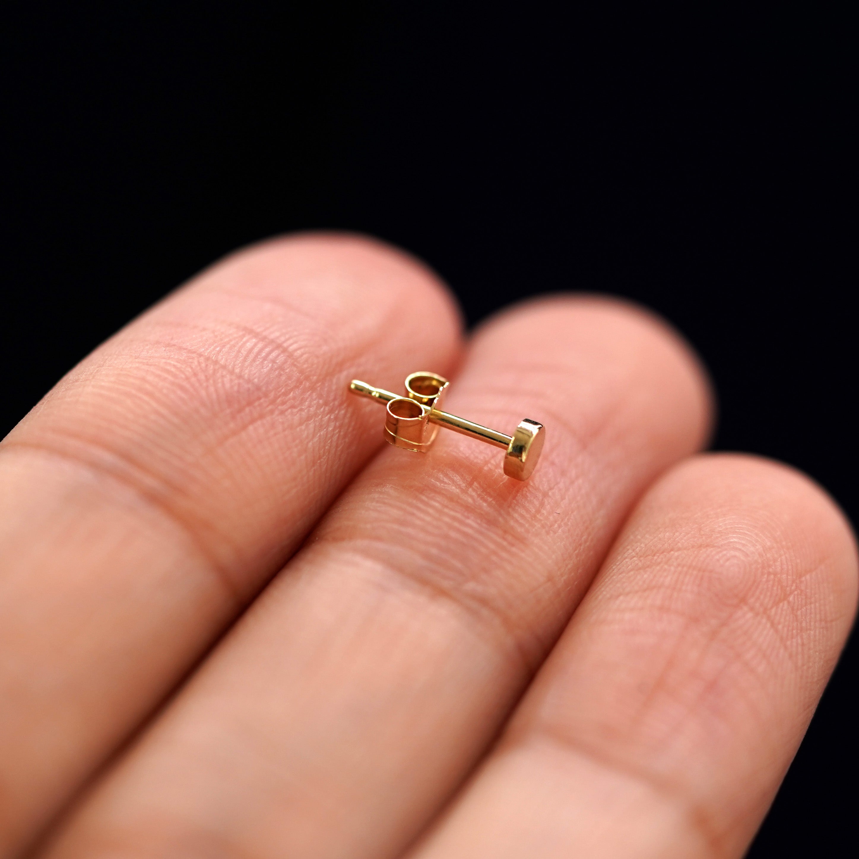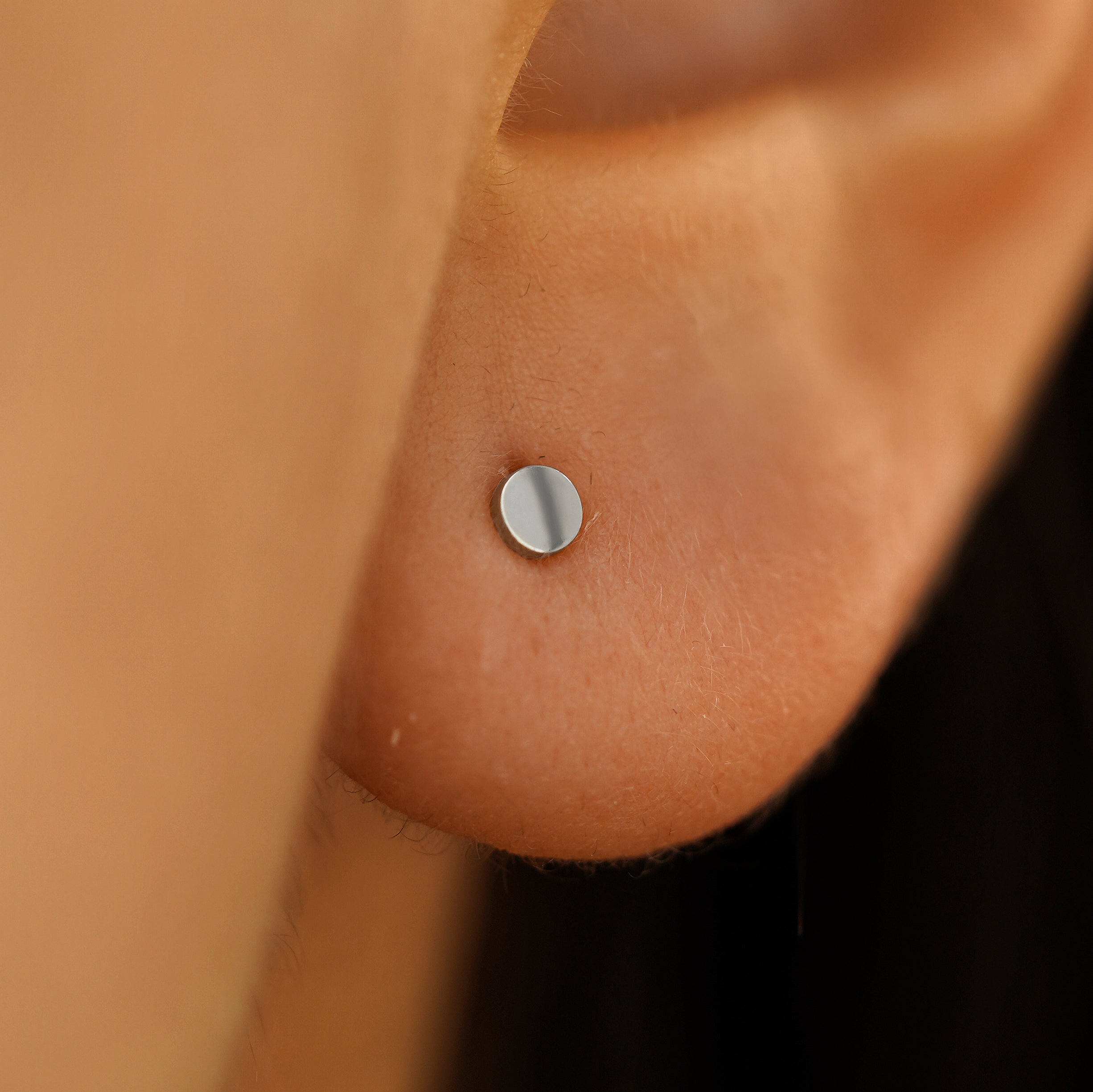 Delicate and classic, these tiny stud earrings are the perfect minimalist jewelry. Our dainty circle studs are designed to be flat and thick so they fit just right. Pair with our other sustainable gold circle earrings for that dynamic duo look. Whether you’re fighting crime or passing time, this look is solid (gold).