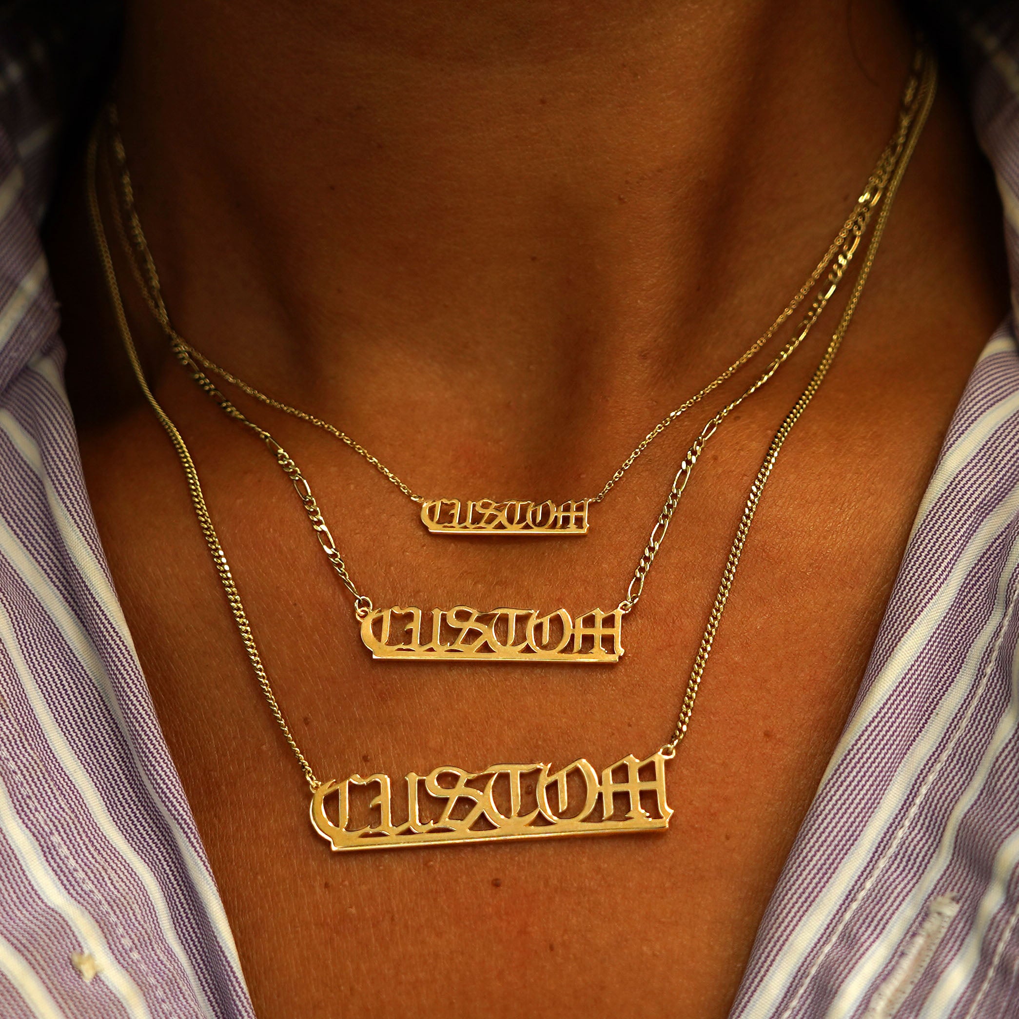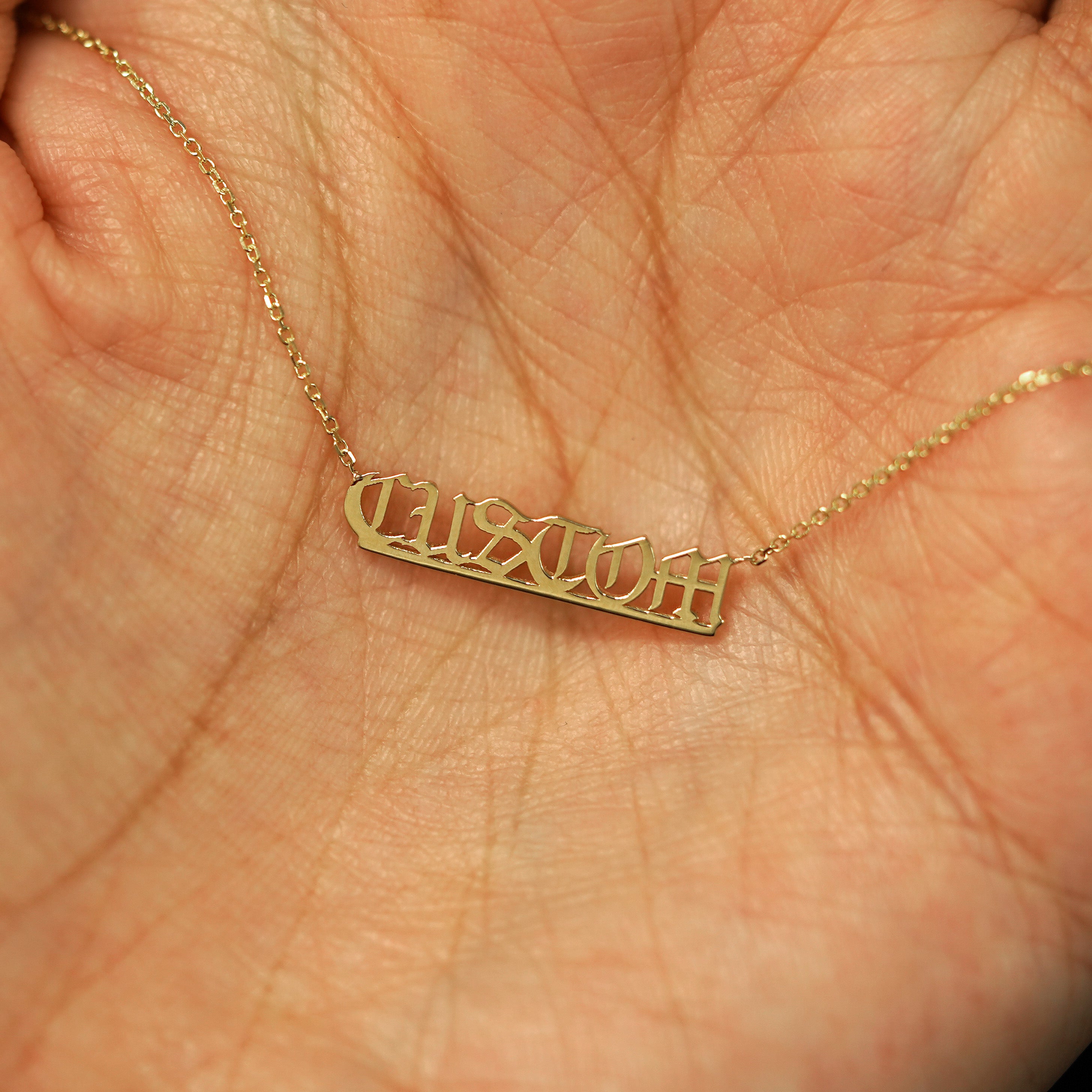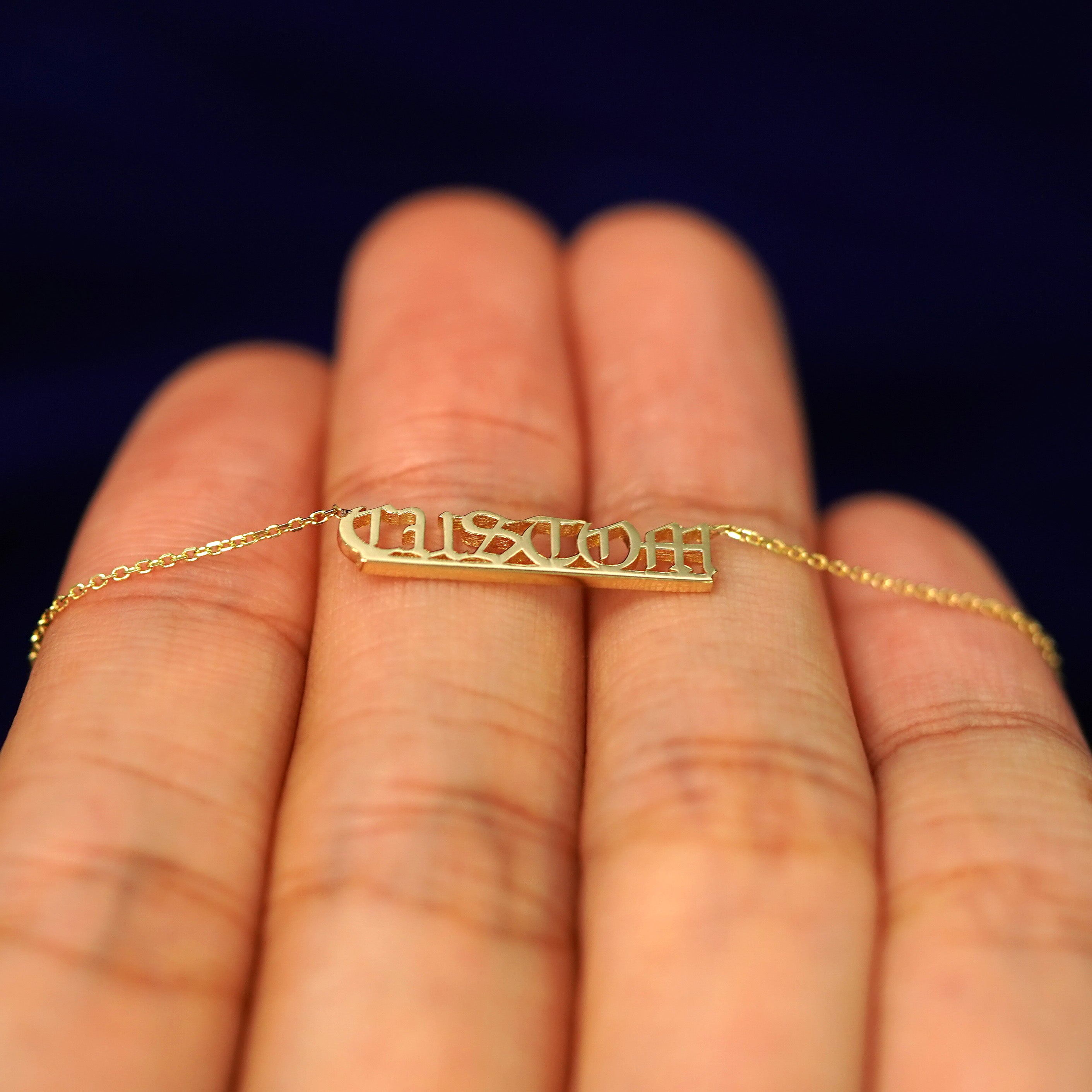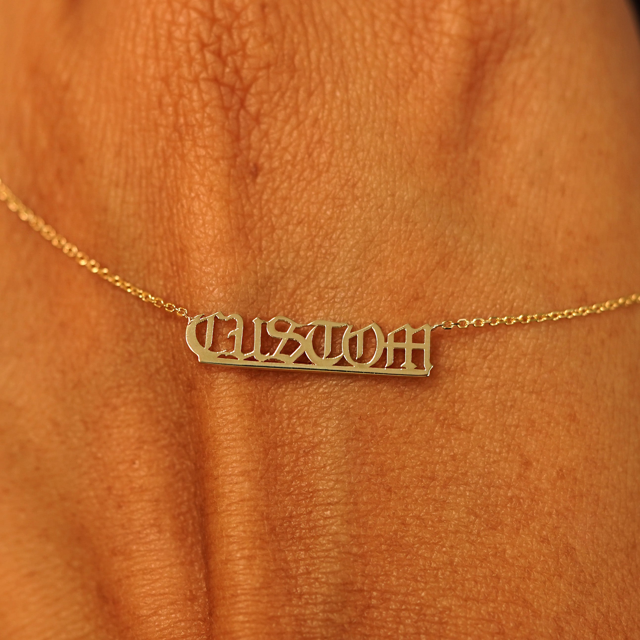 What’s in a name? Solid 14k gold of course! Create your own customized nameplate necklace crafted from recycled gold for a piece that’s both stunning and sustainable. Inspired by the classic Gothic font, we added a modern twist to make our exclusive Automic Gold font that is readable, durable, and wearable. This personalized nameplate comes on a Cable Chain and secures with a lobster lock and easy-to-grip Automic Gold AU plate.