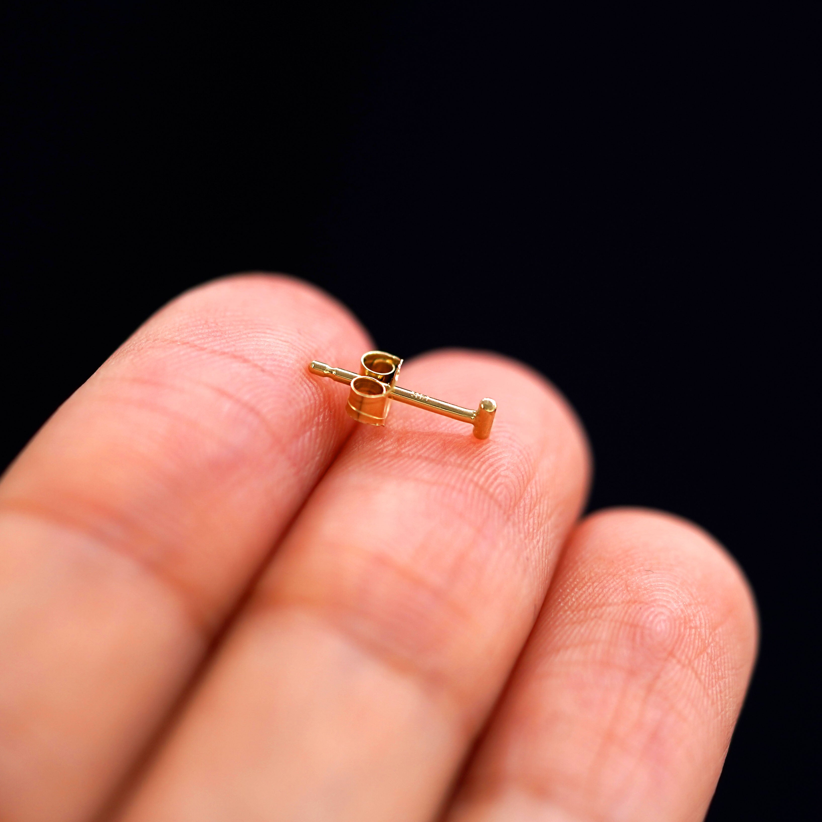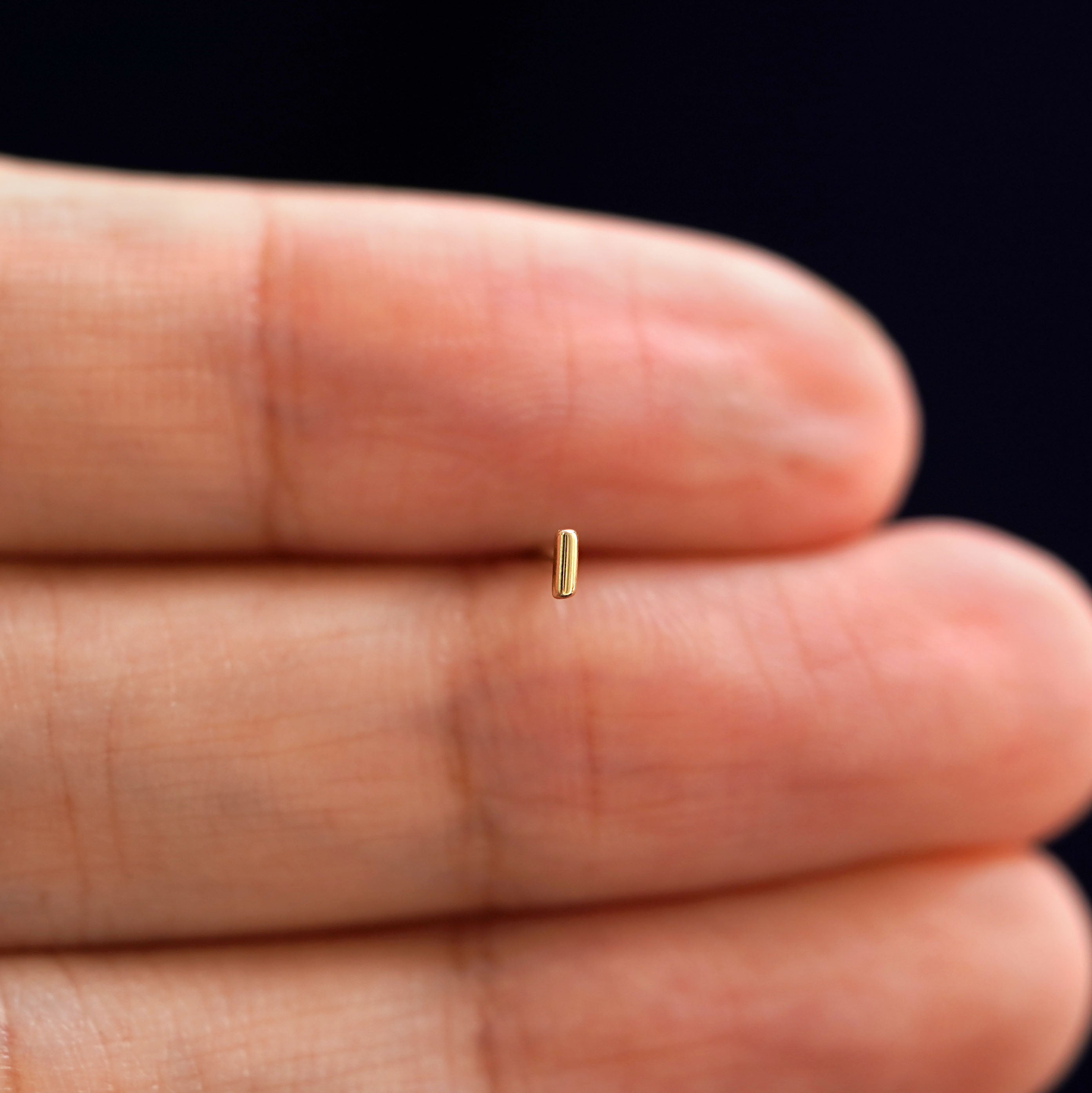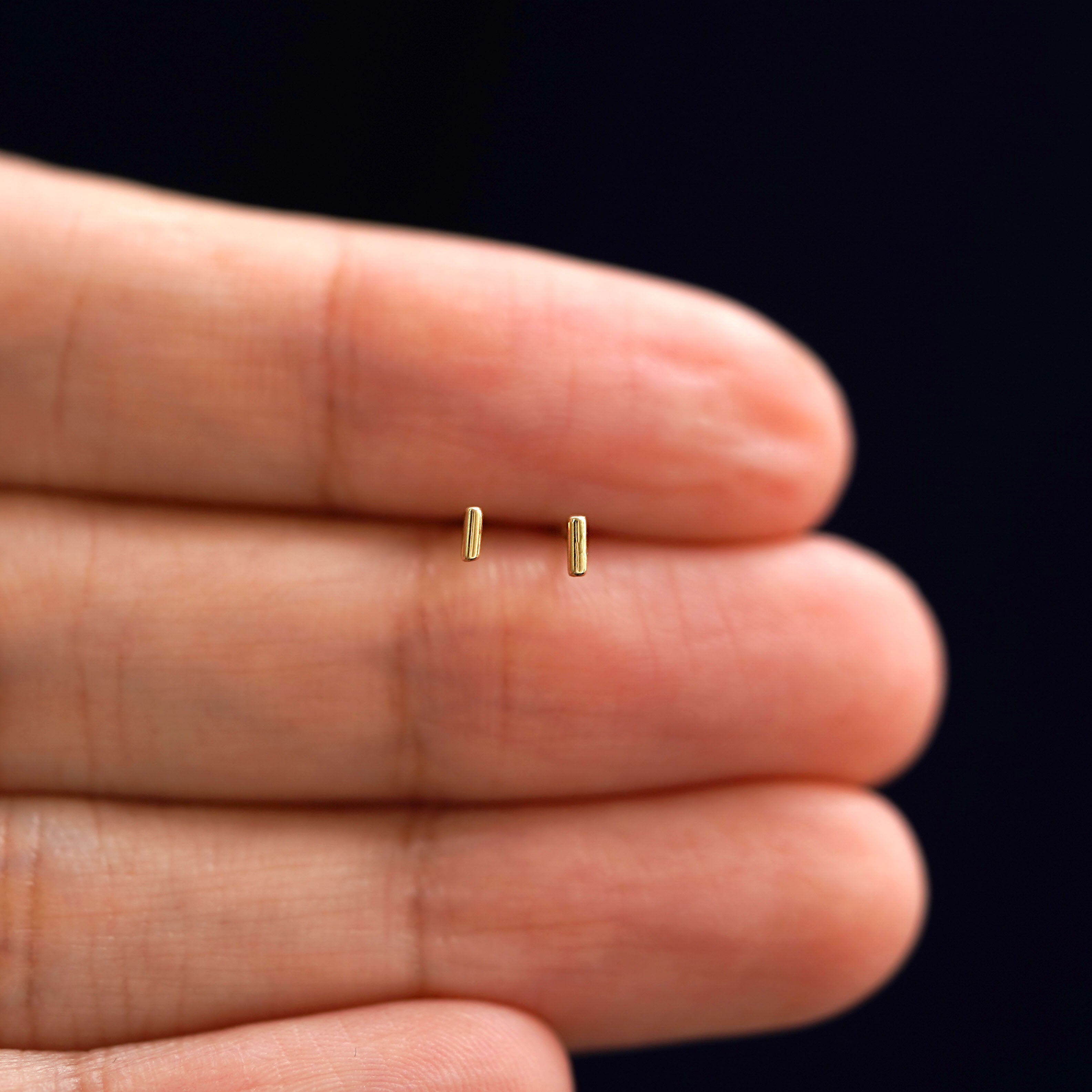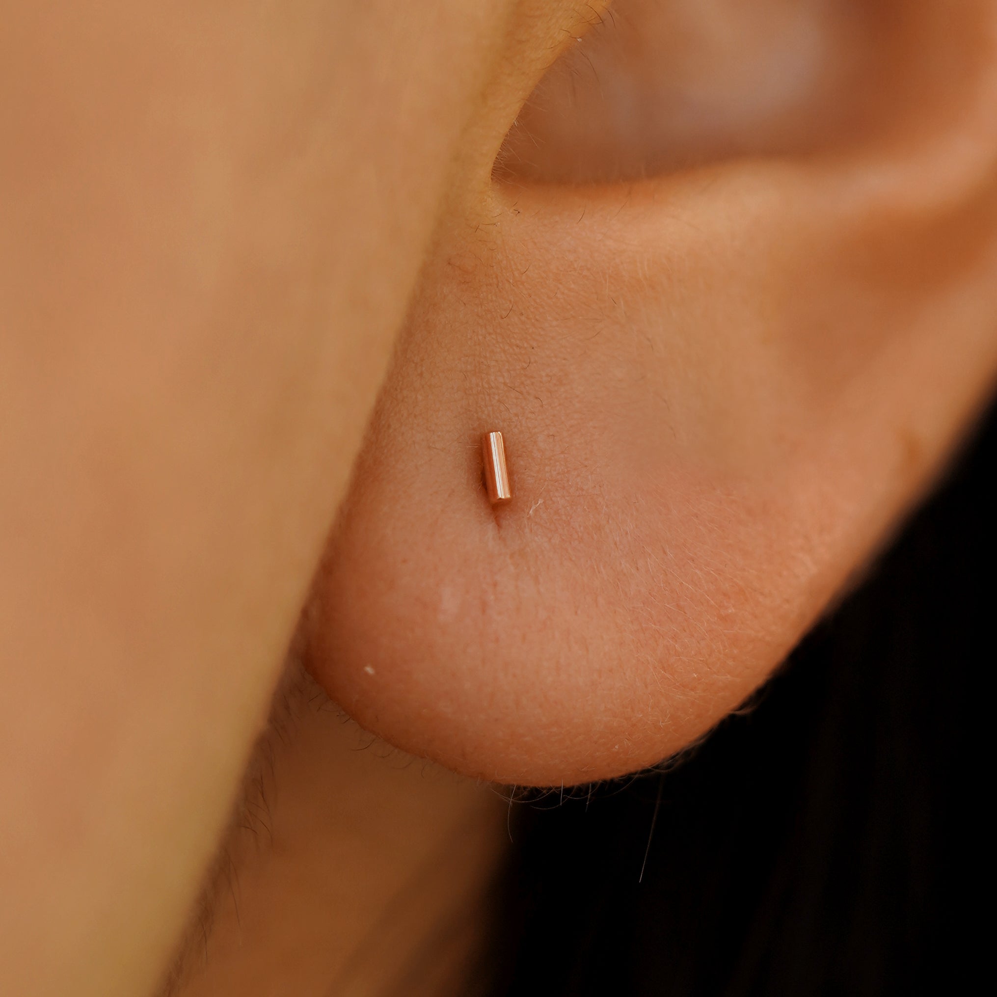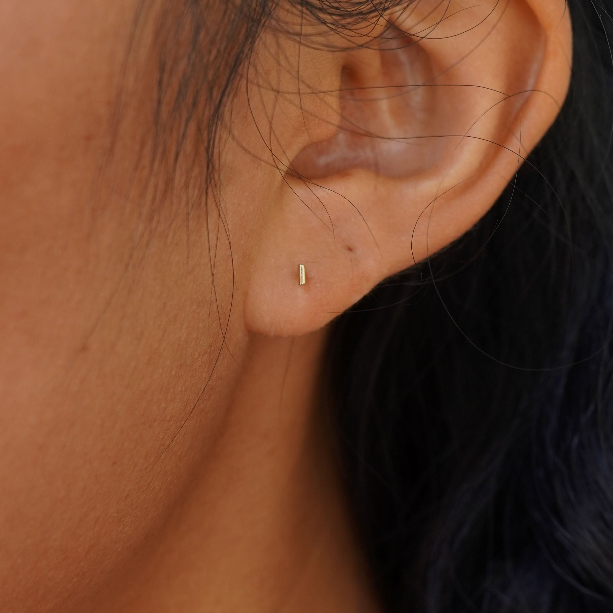If subtle’s your name, these cuties are your game. The ultimate in minimalist jewelry, these dainty studs add just a hint of style. Our small line stud earrings. the smallest of the Line Earrings, are subtle and sleek on their own but look great when styled with our other 14k solid gold earrings. From formal affairs to casual Fridays, these tiny tots work with any look.