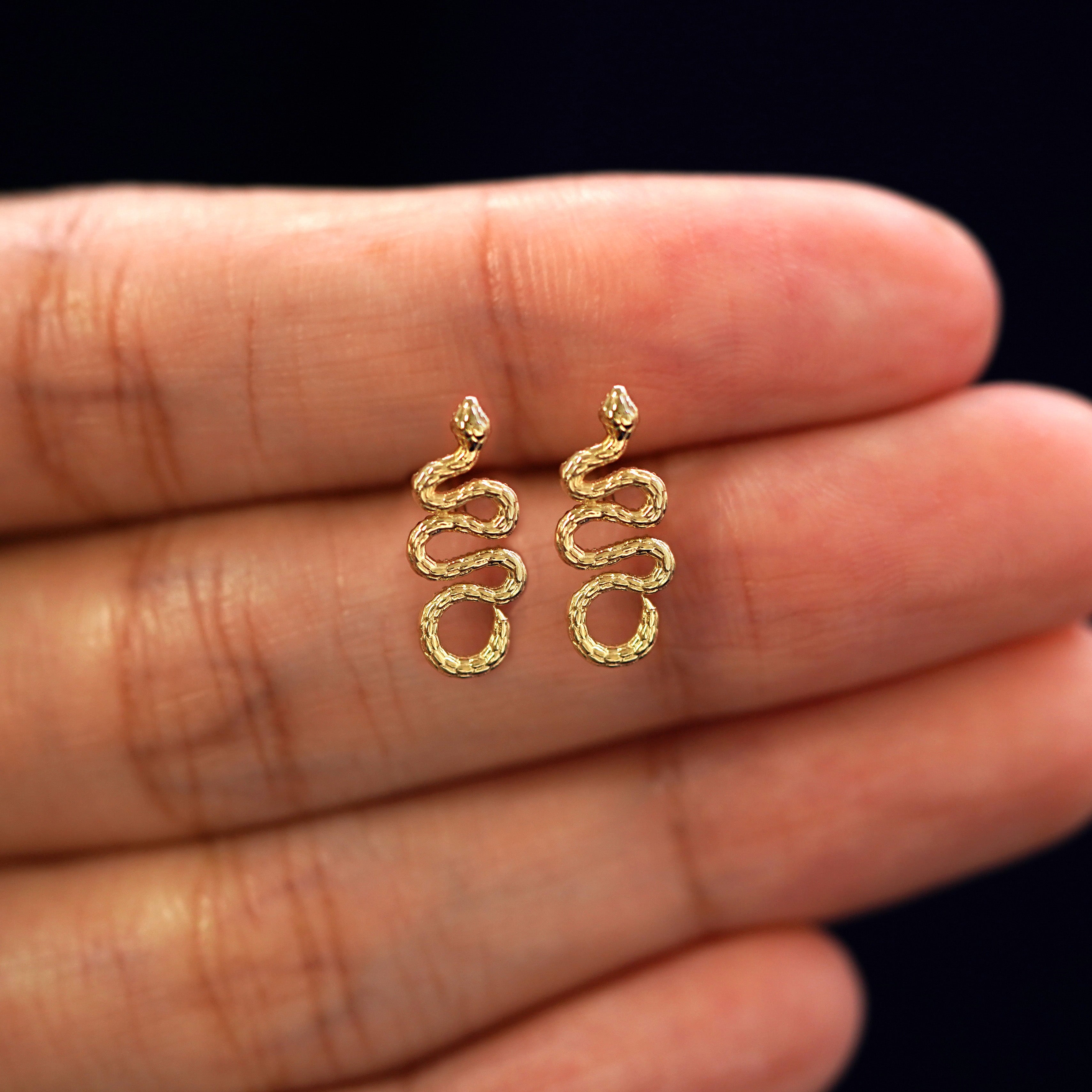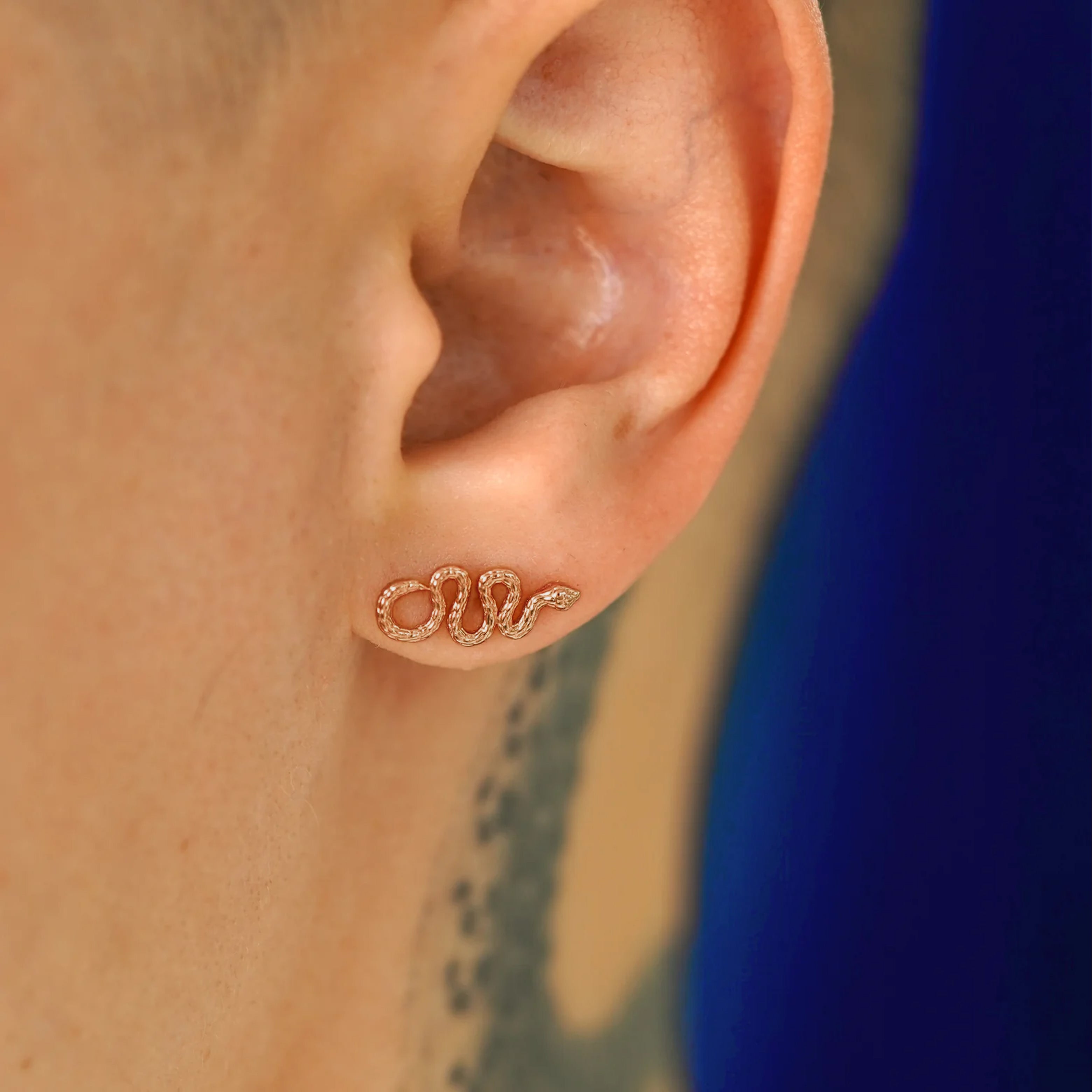 Sssstylish stud earrings made from sustainable gold, these snake earrings have it all. These dainty serpent studs are crafted from recycled 14k solid gold and are incredibly detailed. Wear these snake studs with our Extender to add to your serpentine style.