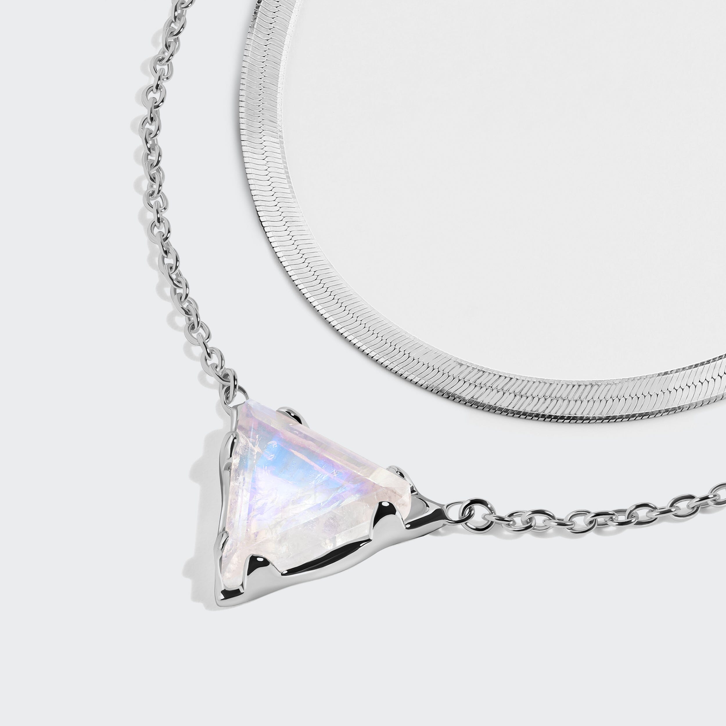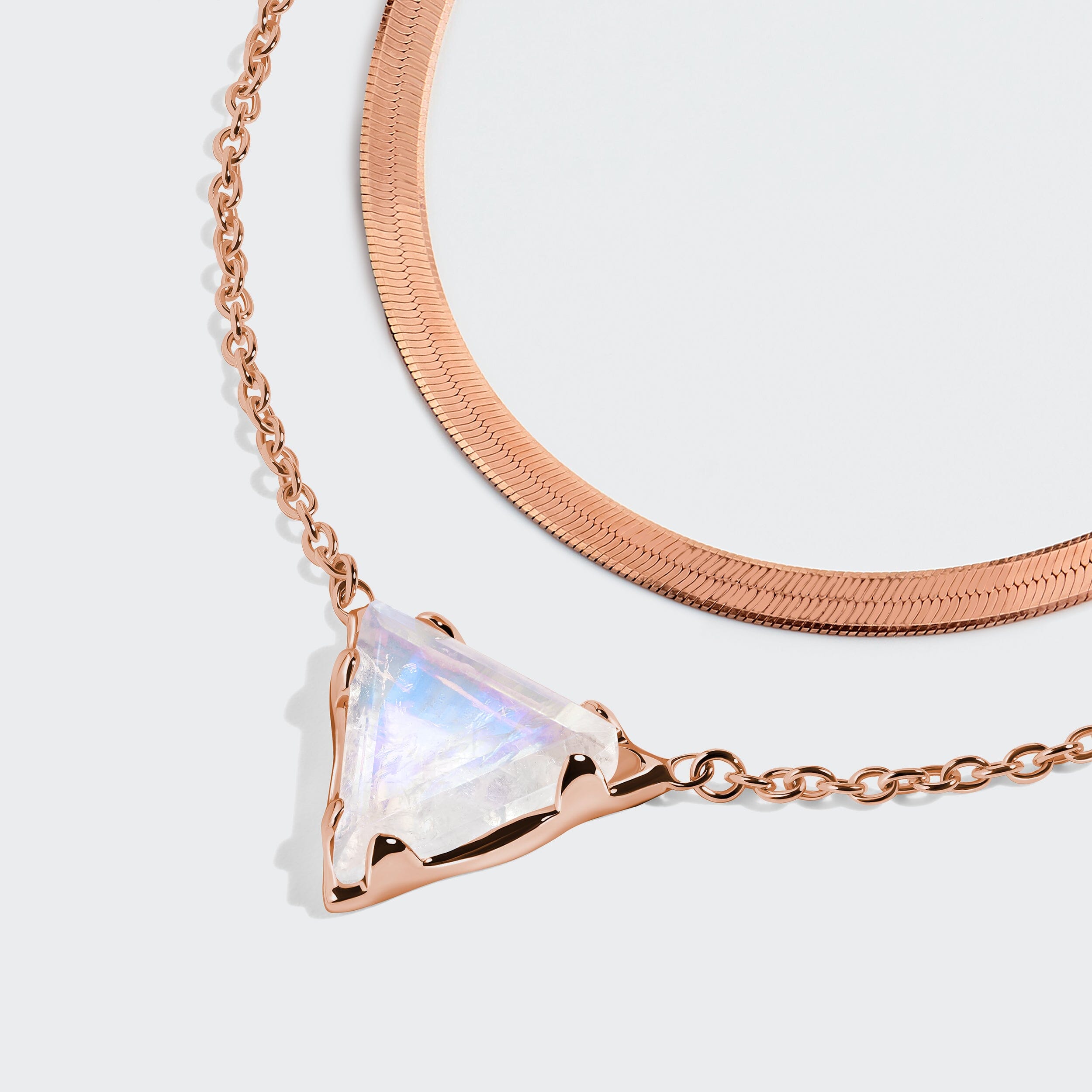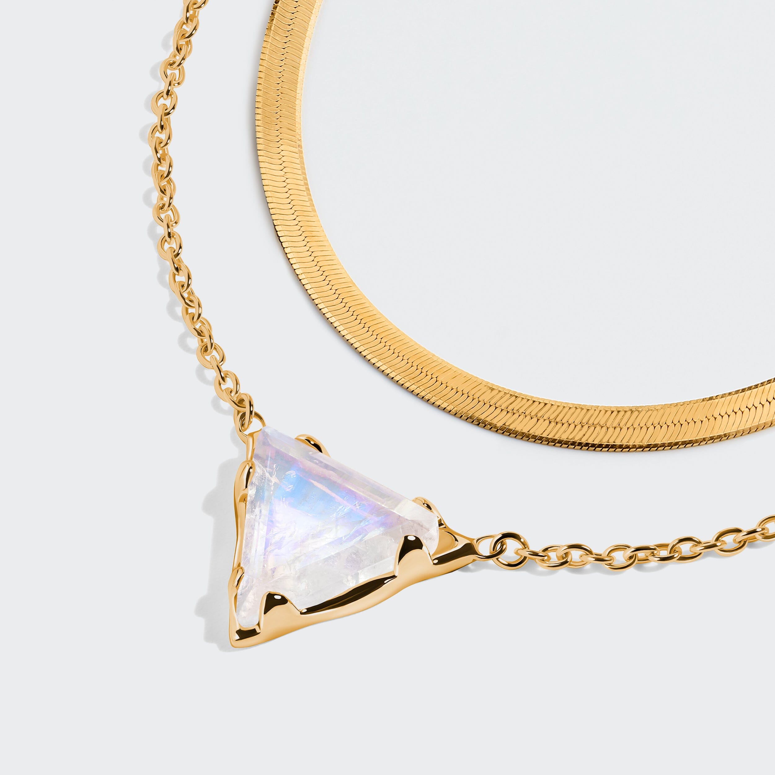 This collection is a beautiful introduction to necklace layering. First lay our sleek Herringbone against your skin, then add our Soul Mirror Moonstone Necklace. Known as the Stone of Intuition, Moonstone has gentle, protective properties that will help you feel calmer and more peaceful, and support your journey towards emotional healing. The perfect piece to wear close to your skin daily.