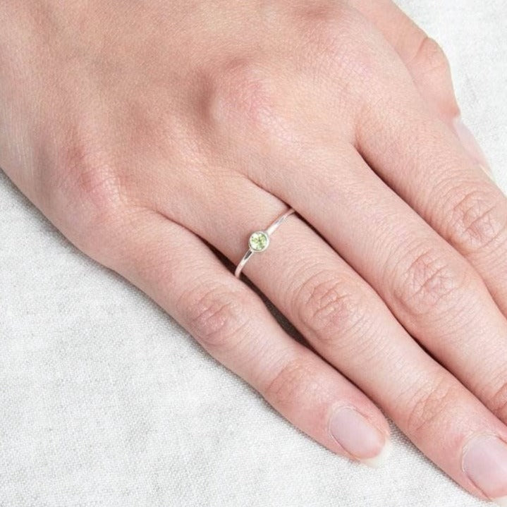 Sparkle in the finery of summer magic all year round with the sterling silver Peridot Ring. This glimmering yellow-green gemstone is ripe with natural energy. Shot with shades reminiscent of sunlight through the trees, this ring is all about joy, rest, and finding rejuvenation in the small things. The shimmer of sterling silver also brings its own light to the party – promising illumination and an intricate sense of inner knowledge so you can feel at home in your body, mind, and soul.