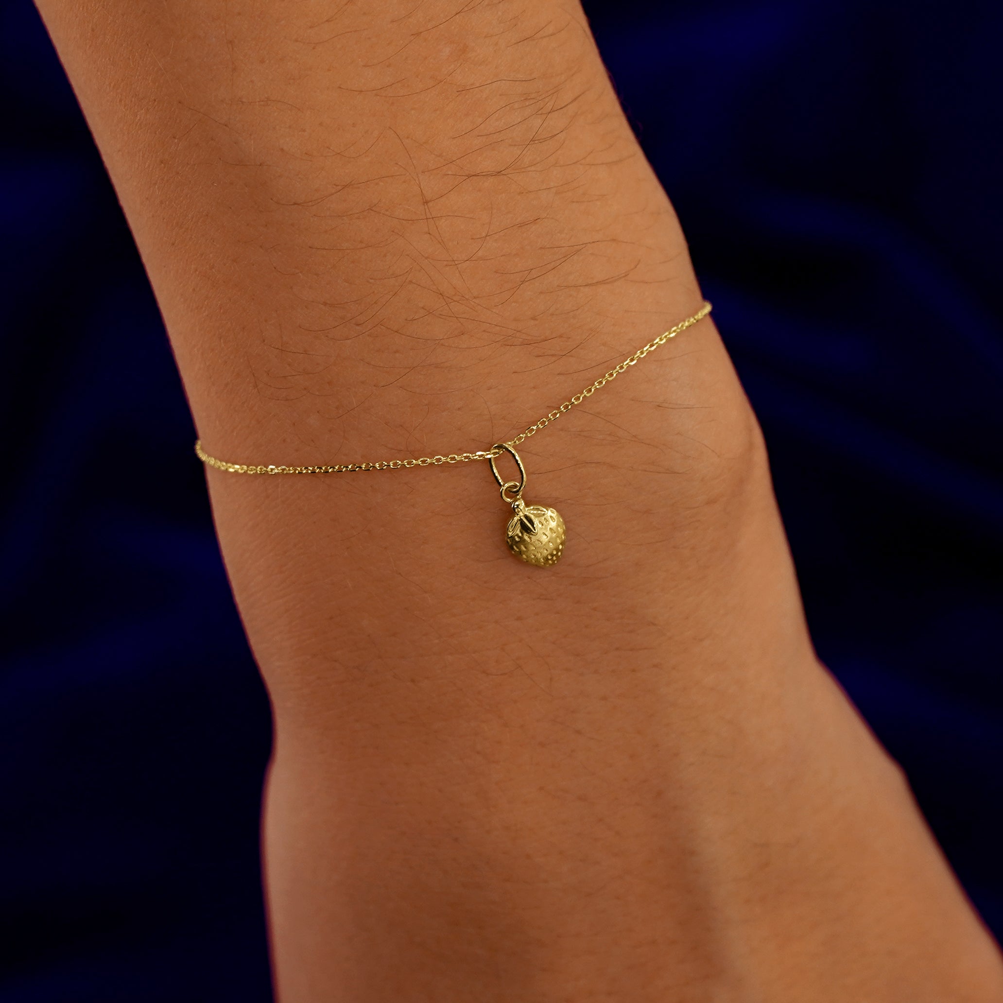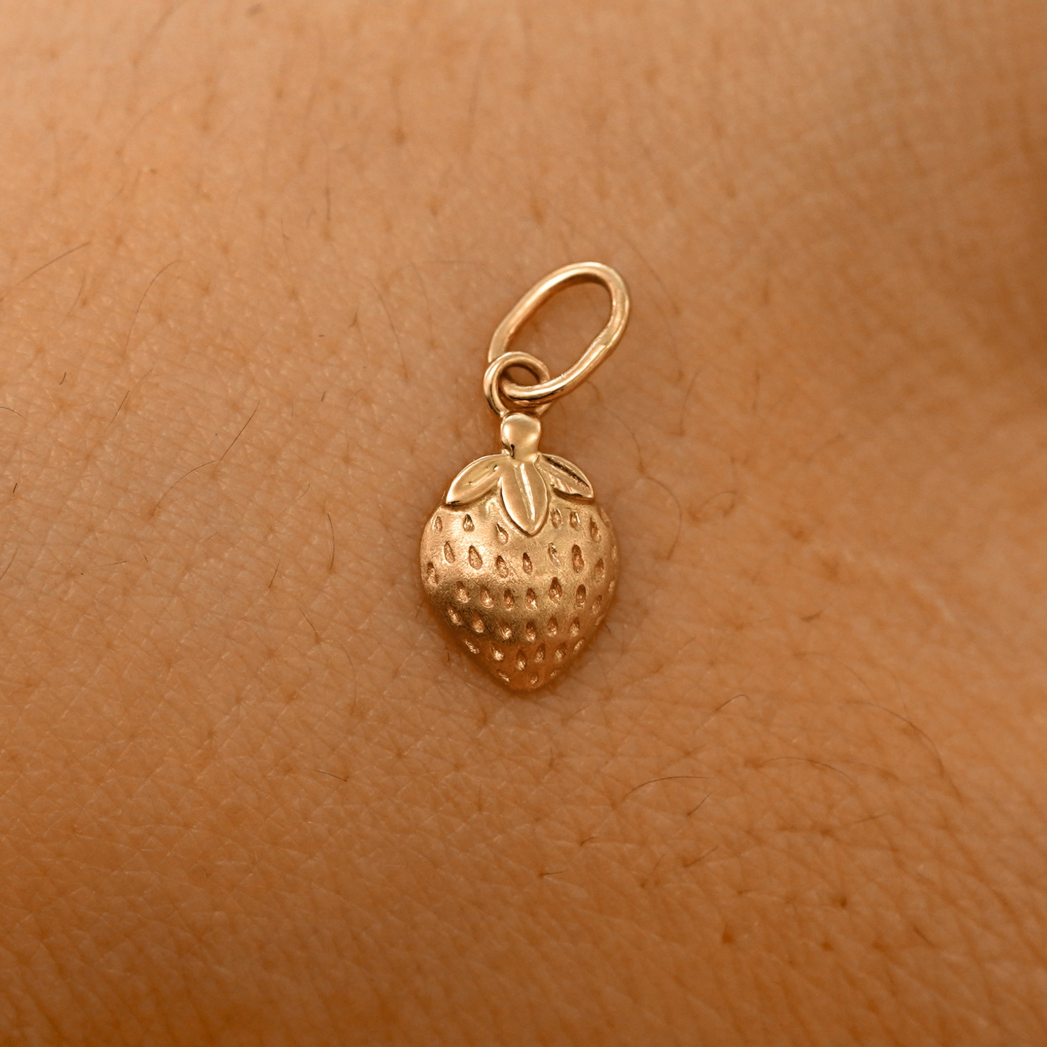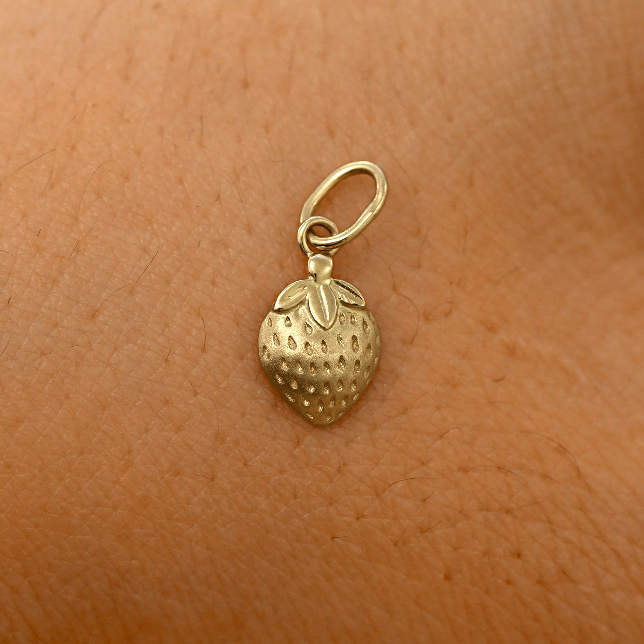Adorable and luxurious, this delicious looking strawberry charm is hand-crafted in solid 14k gold. This stunning fruit charm has incredibly detailed seeds and leaves and a rounded design so it’s comfortable to wear every day.