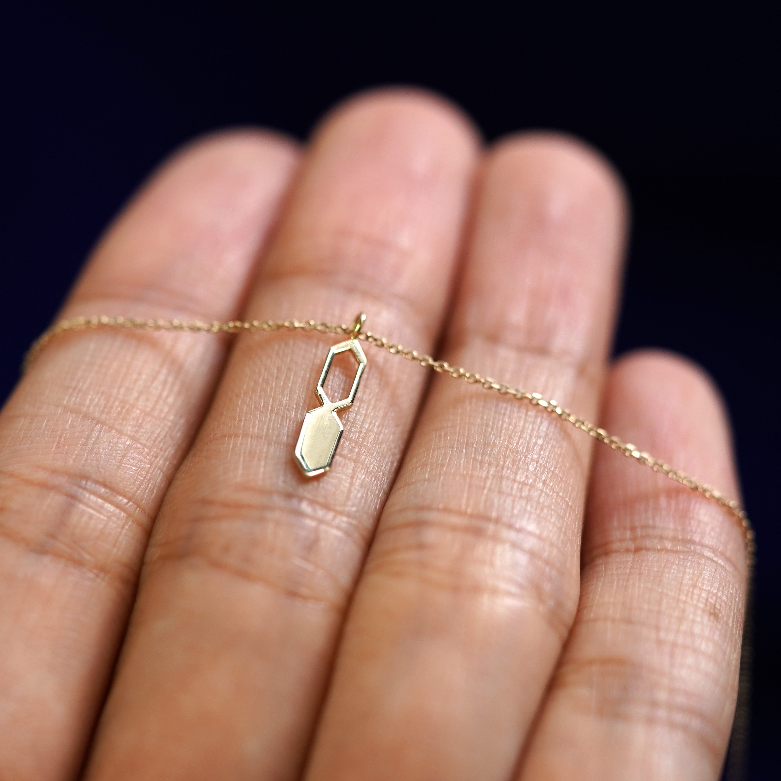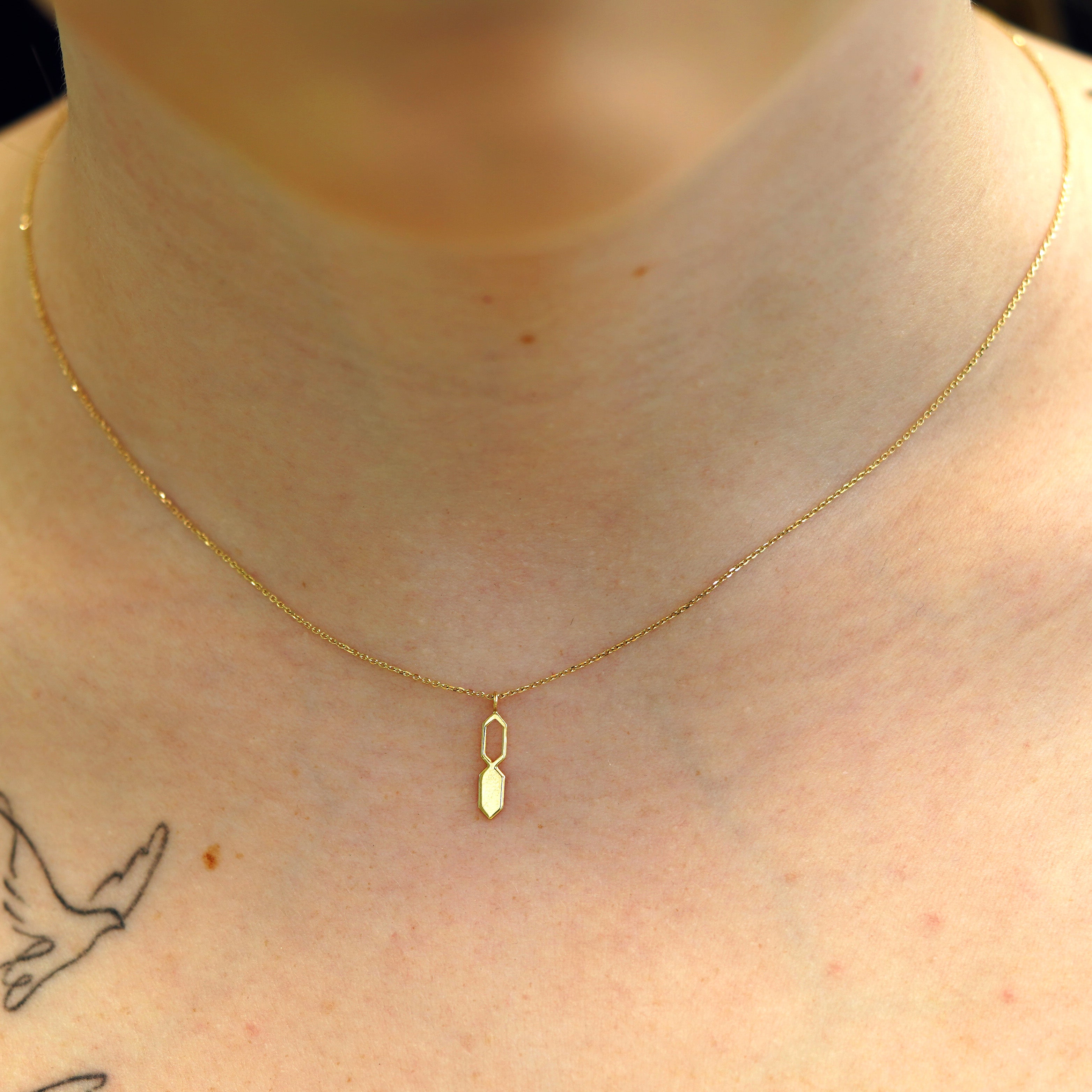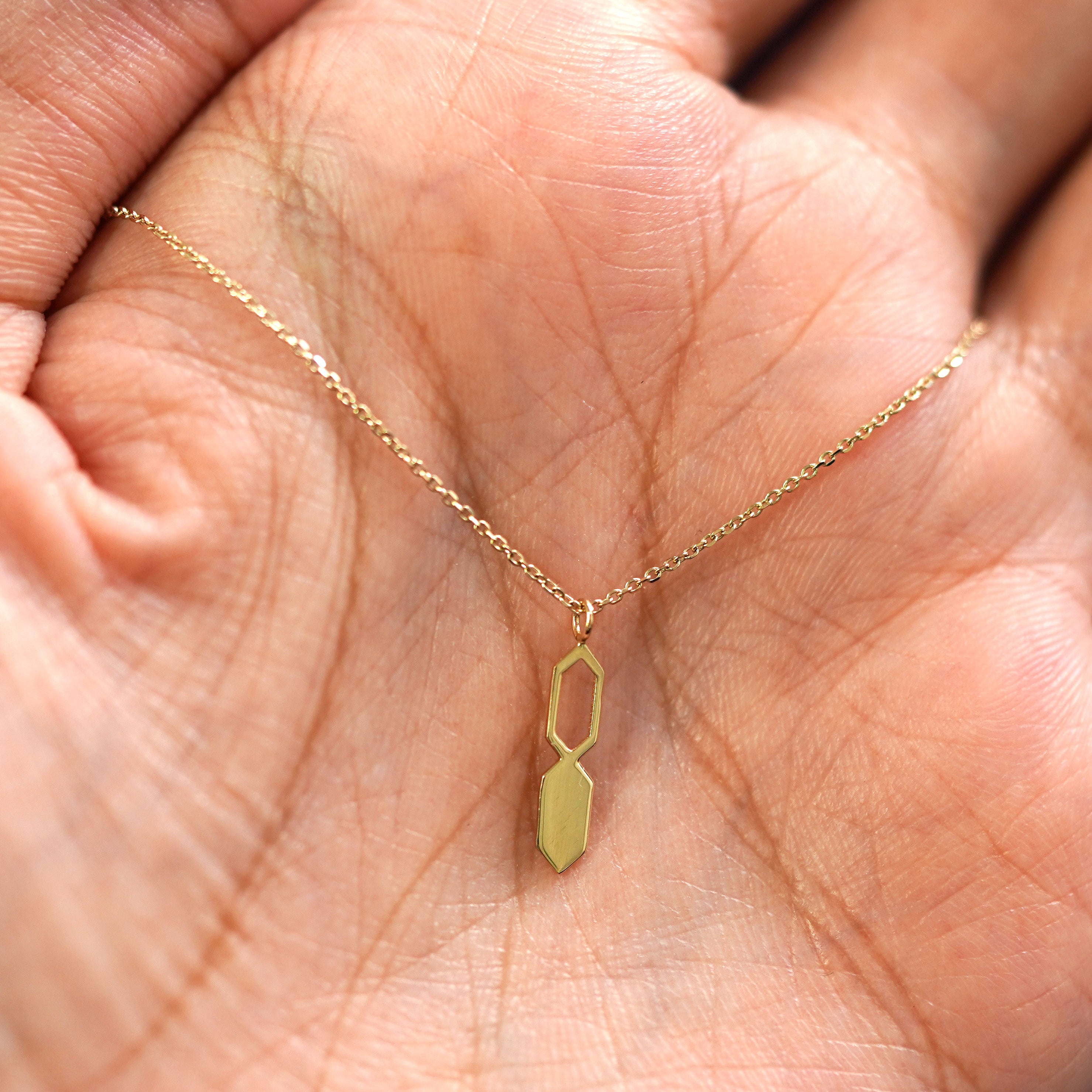This delicate pendant necklace is a minimalist jewelry piece you’ll never want to be without. Made with 14k solid gold, this geometric necklace can be worn when ever, wherever! The Cable Chain secures with a lobster lock and easy-to-grip Automic Gold AU plate.