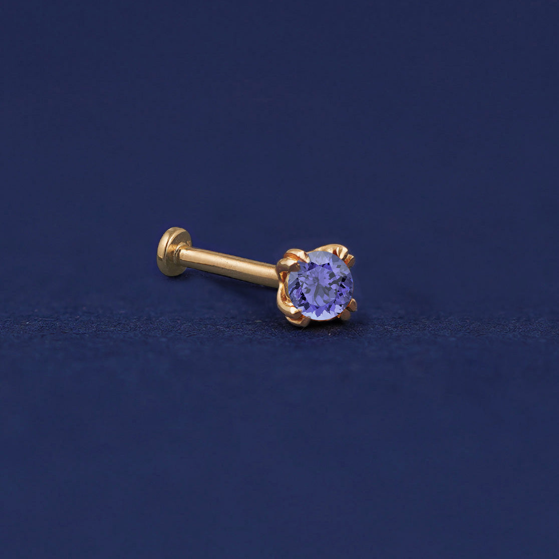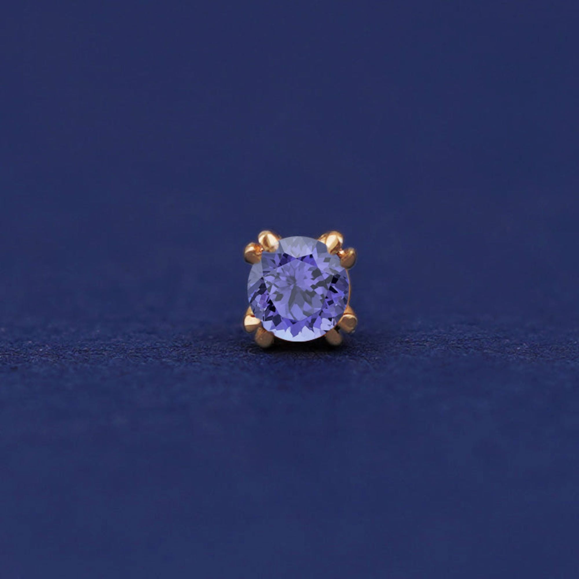 Flaunt your style with this fabulous gemstone flatback piercing. This lovely natural tanzanite push in stud is made with solid gold for a style that is as comfortable as it is beautiful. Our flat backs are crafted only in 14k yellow gold to avoid sensitivity.