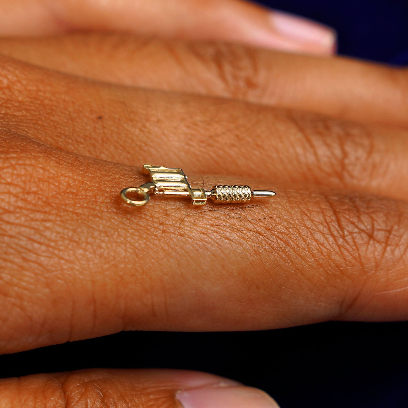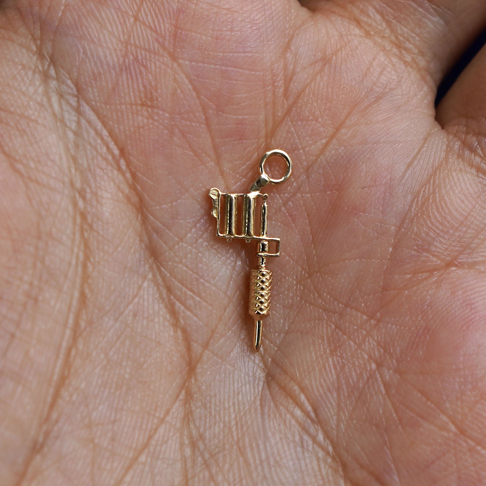 Whether you're a tattoo artist or just a lover of ink, our delicate 14k solid gold Tattoo Machine Charm is for you. This meticulously detailed Tattoo machine charm comes in yellow, white or rose gold, and in options for chain or for earring, making this customizable jewelry piece as unique as you.