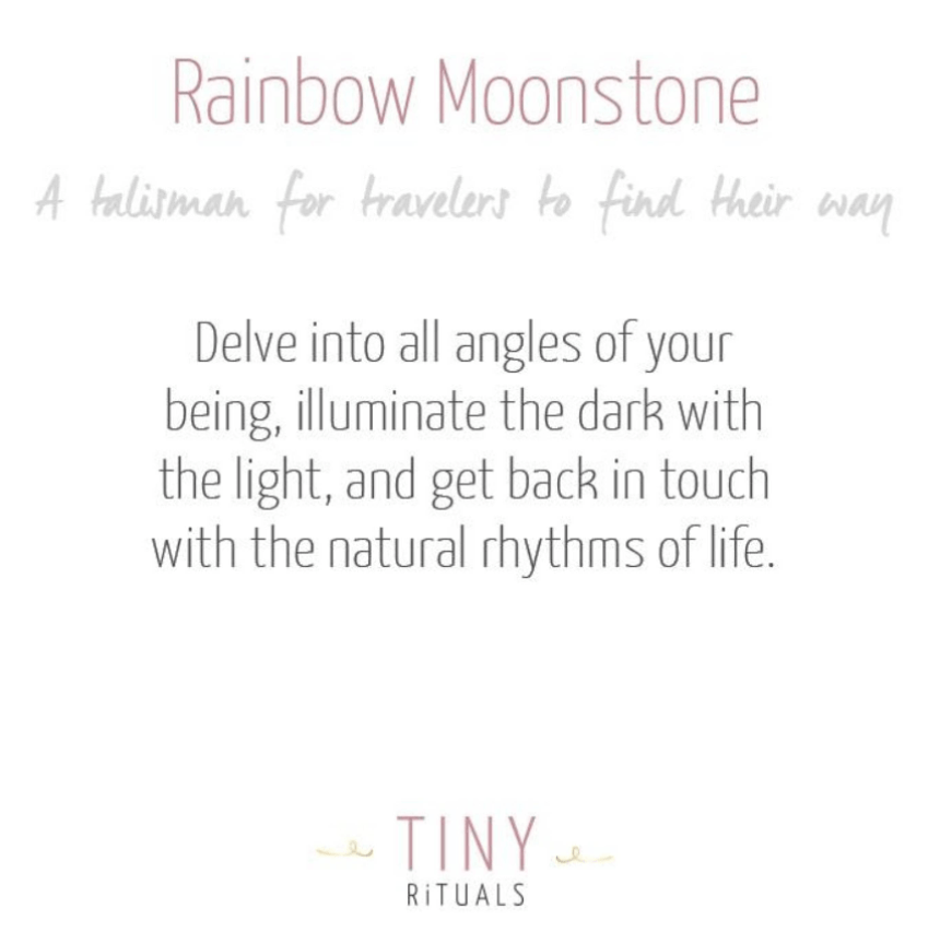 - Faceted Genuine 4mm Rainbow Moonstone Gemstone Beads with silvery beads & Tiny Rituals Tag