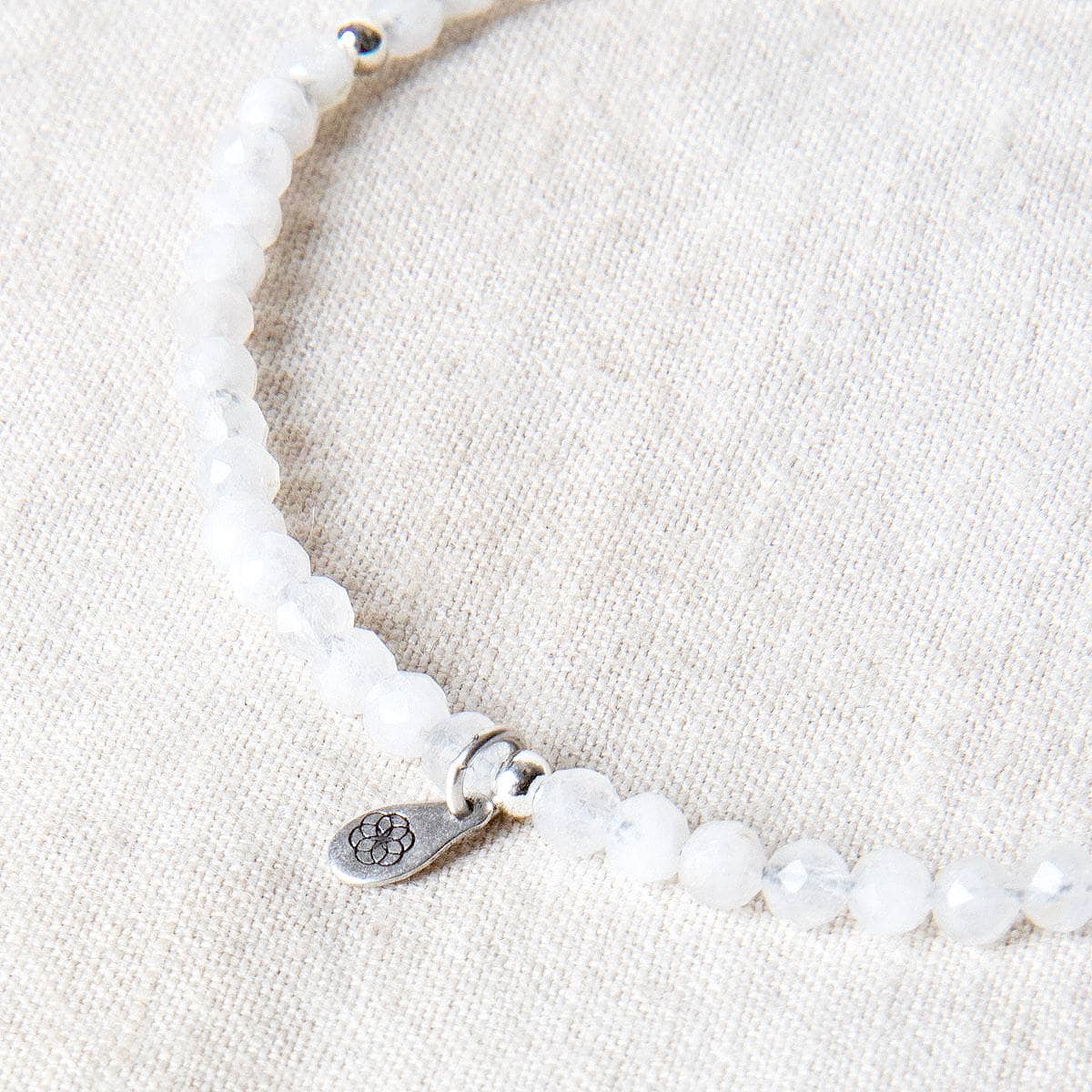 Ripe with full moon energy, you cannot help but feel compelled by the Rainbow Moonstone. Slip this anklet on and let psychic protection and an aura of spiritual guidance flow and glow around you. The Rainbow Moonstone is a mood, connected to the goddess spirit, this pearly perfect talisman is all hope and promise and offers comfort in times of change. The moon is a symbol of cyclical energy and this nurturing gemstone helps us to shift accordingly and stay strong even when change is at hand.