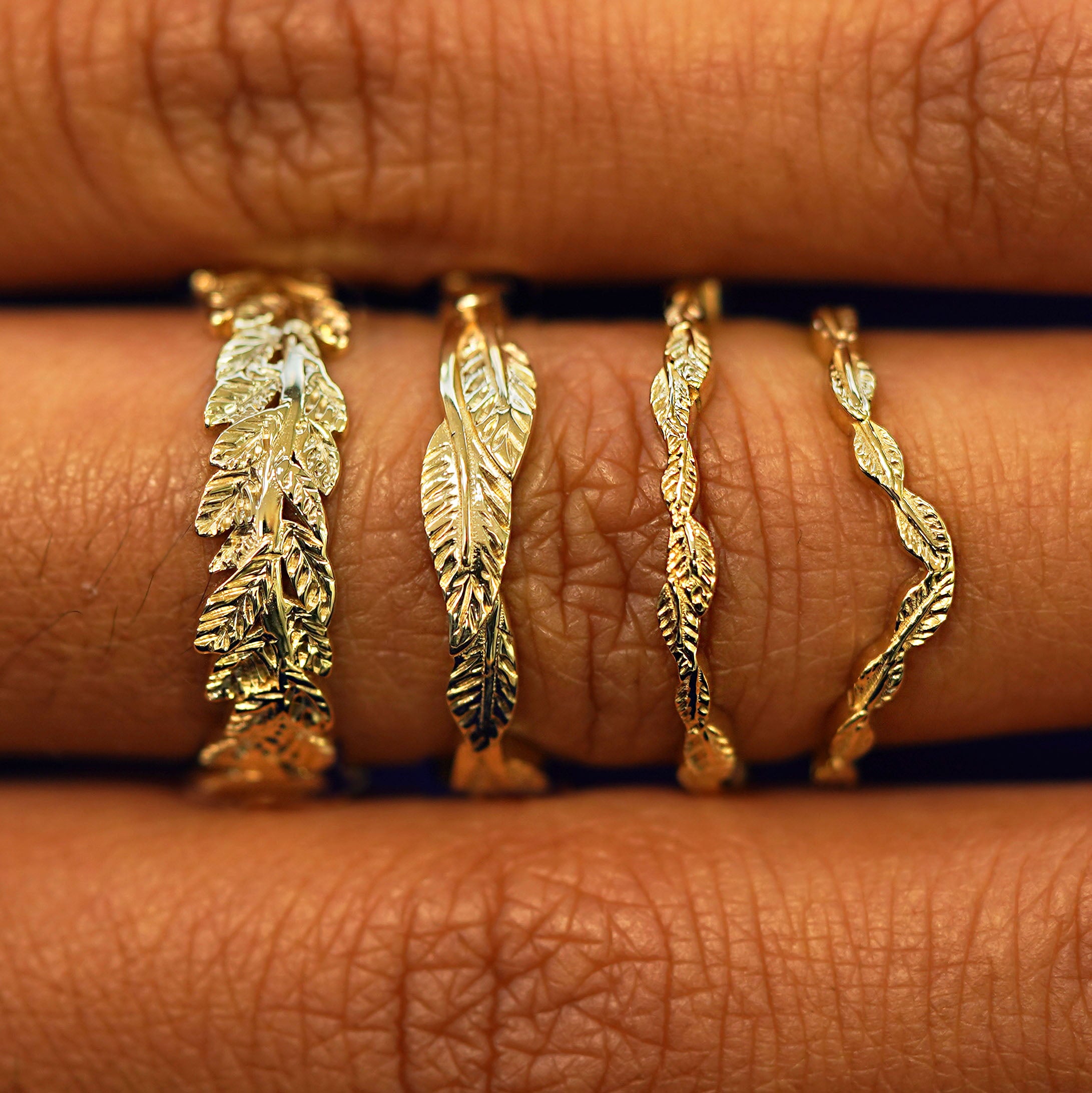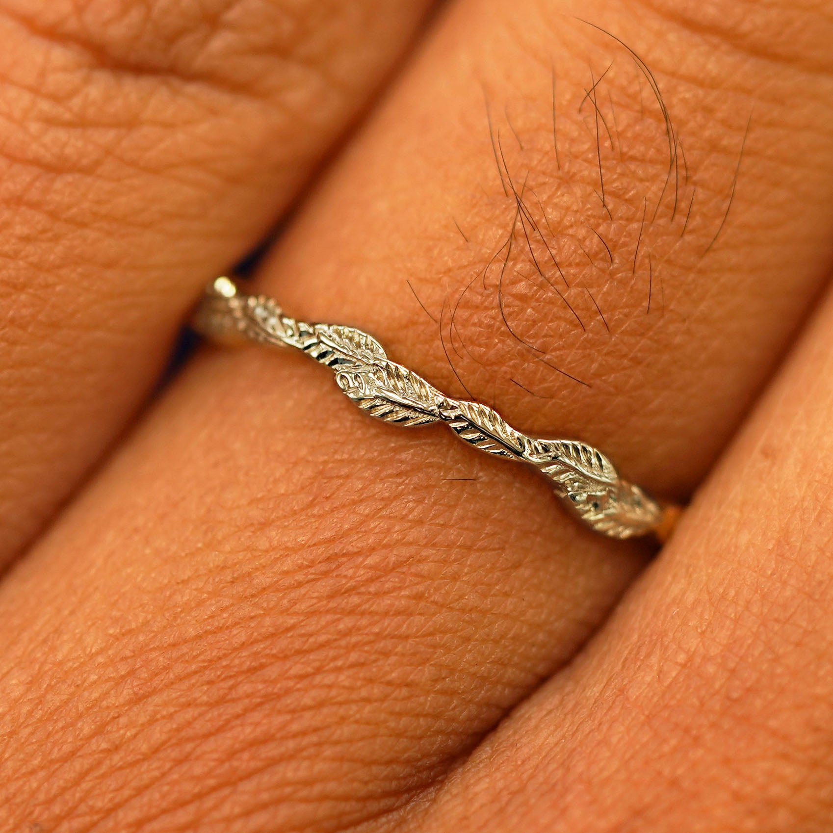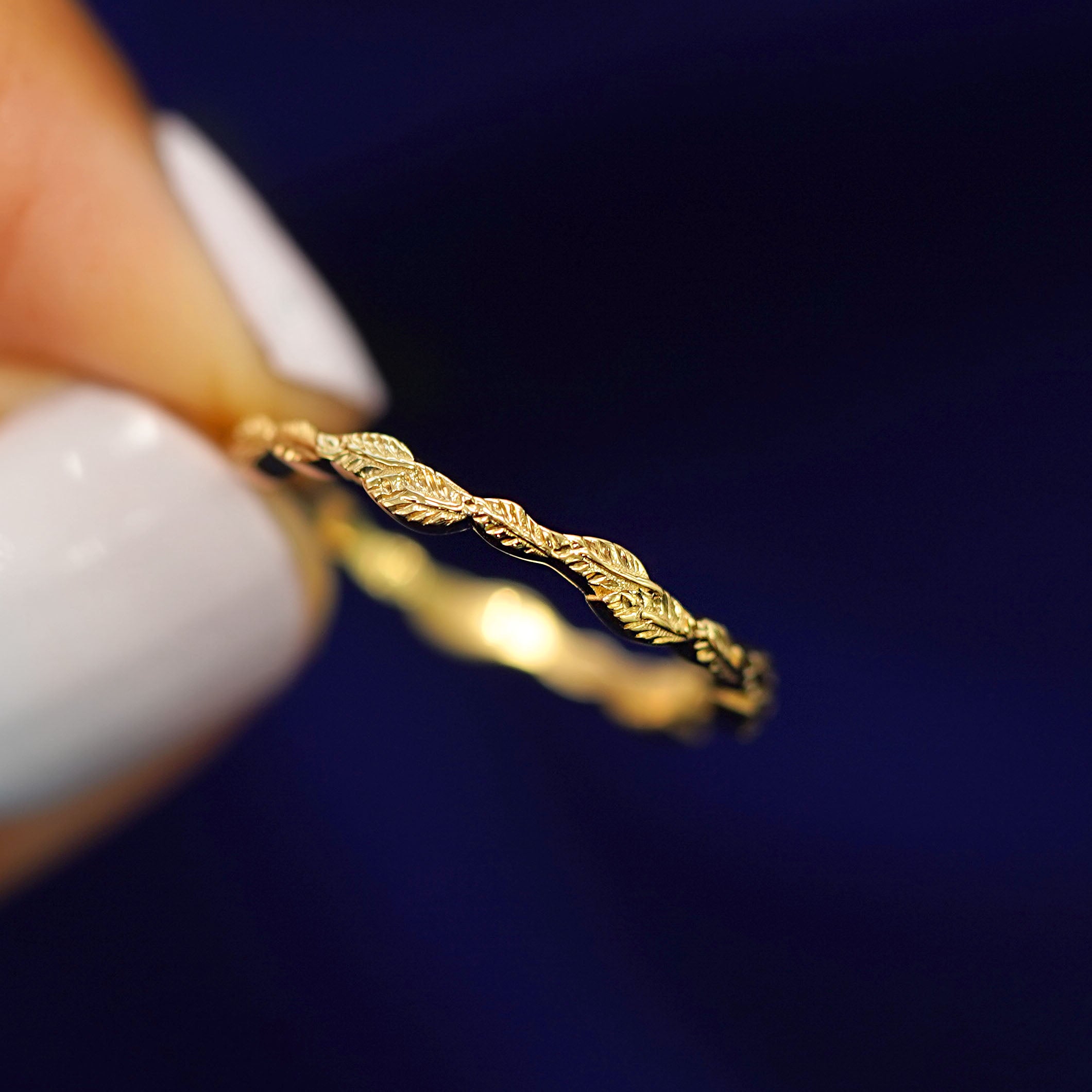 We cannot beleave how stunning this little band is. This beautiful band is made up of intricately detailed overlapping 14k solid gold or 950 platinum leaves. Gorgeous enough to be worn as an everyday ring or stack it with your engagement ring. This nature-inspired piece is also the perfect companion to our Thick Leaves Band, wear the two rings together or use them as unique wedding bands with your partner.
