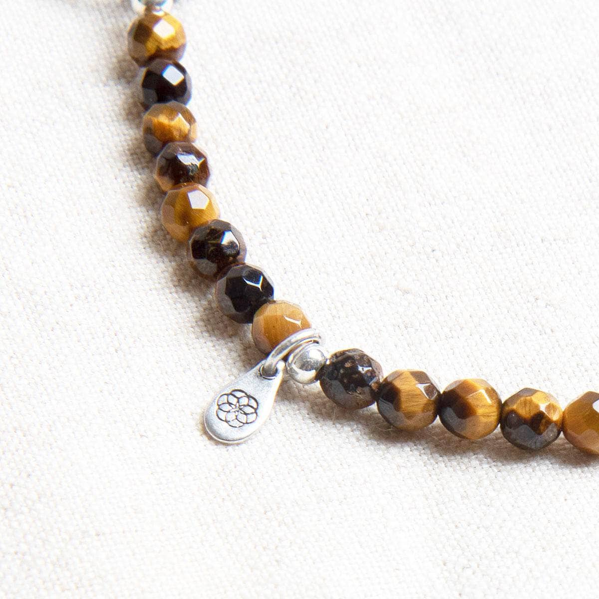 - Faceted Genuine 4mm Tiger Eye Gemstone Beads with silvery beads & Tiny Rituals Tag