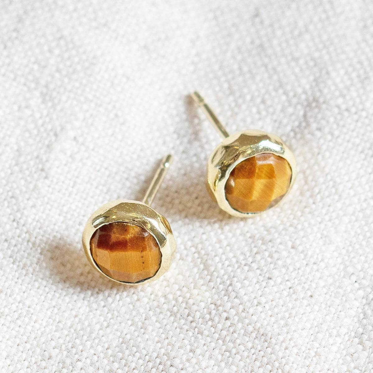 One of the most grounding and glorious warrior stones, these natural Tiger Eye stud earrings enchant in every way. The genuine Tiger Eye stone is all about strength and nurturing inner power. It helps you to process and leap over emotional blocks, empowers you to move past fear, and gives you that delightful dose of courage you need to step out into the world and take more risks. For those who are looking to enhance their leadership skills, a genuine Tiger Eye stone will light up your life.
