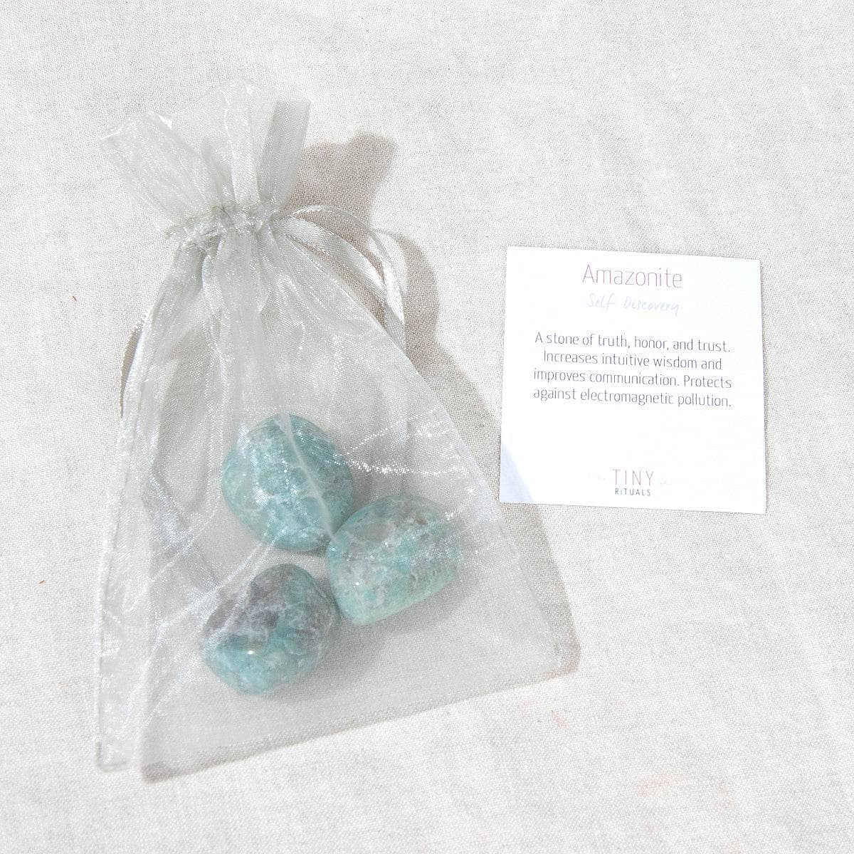 Aegean waters meet ancient rivers in the Amazonite Stone Set. Comprised of carefully picked tumbled Amazonite stones, this set soothes the soul and brings beautiful balance to your whole nervous system. Amazonite is called the stone of courage and the speaker of truth. It connects the heart and throat chakras and heals all shades of emotional trauma too.