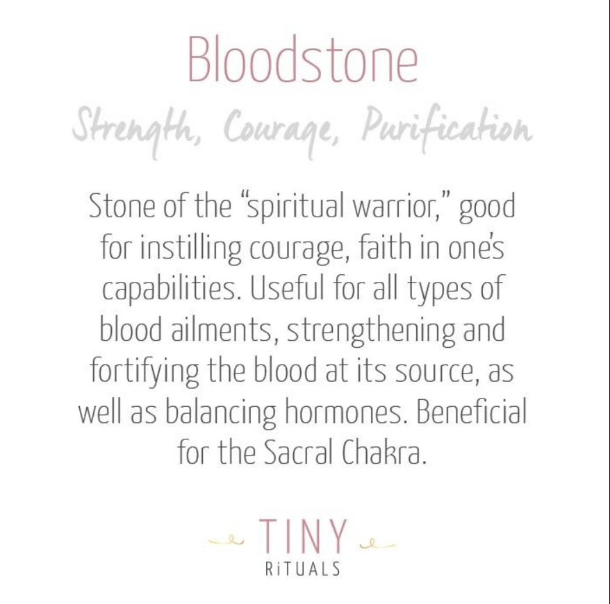 Rich in iron and resplendent with protective healing properties, the Bloodstone Set is the perfect antidote. Known for being a supercharger when it comes to strength, courage, resilience, and healing, Bloodstone is here to lift your self-worth and stabilize your moods.